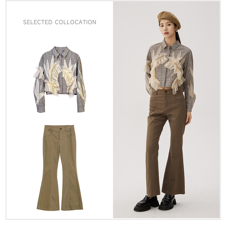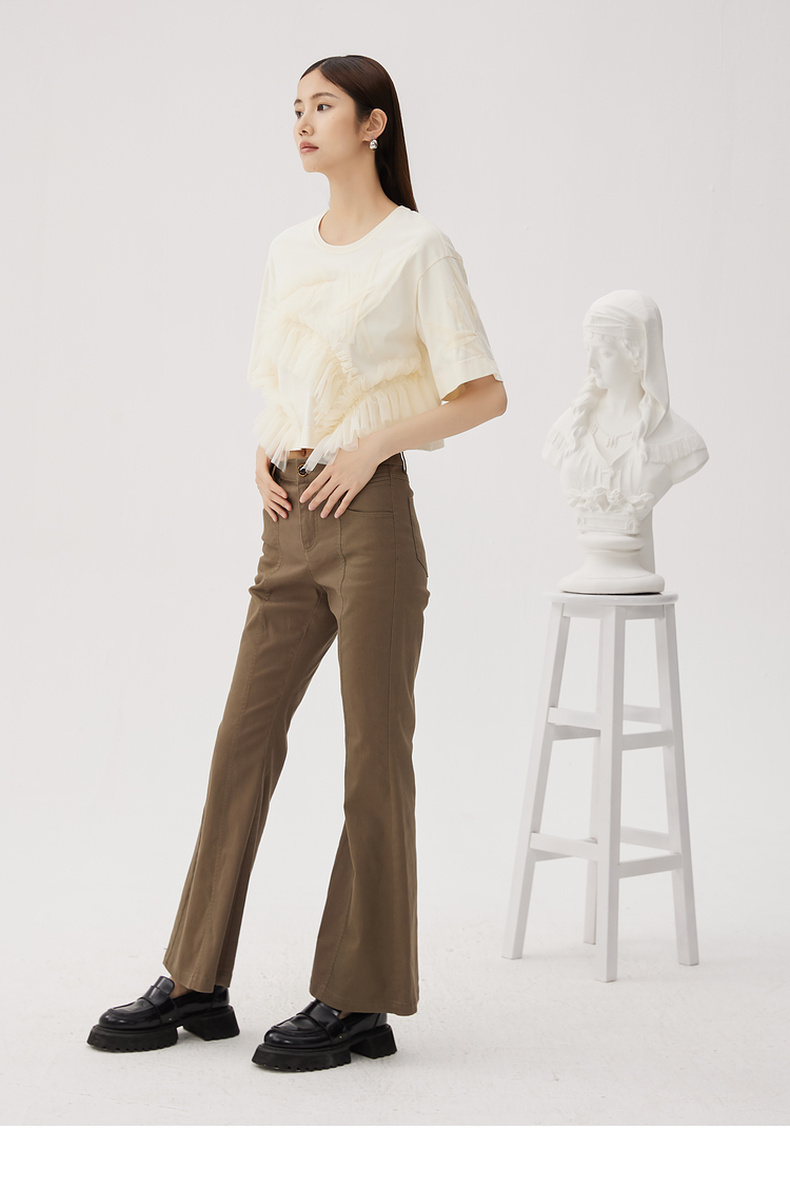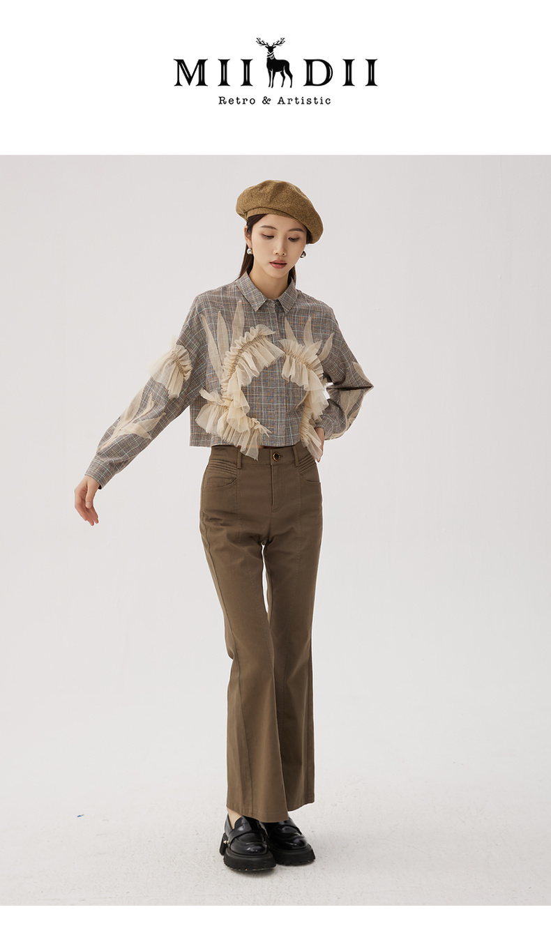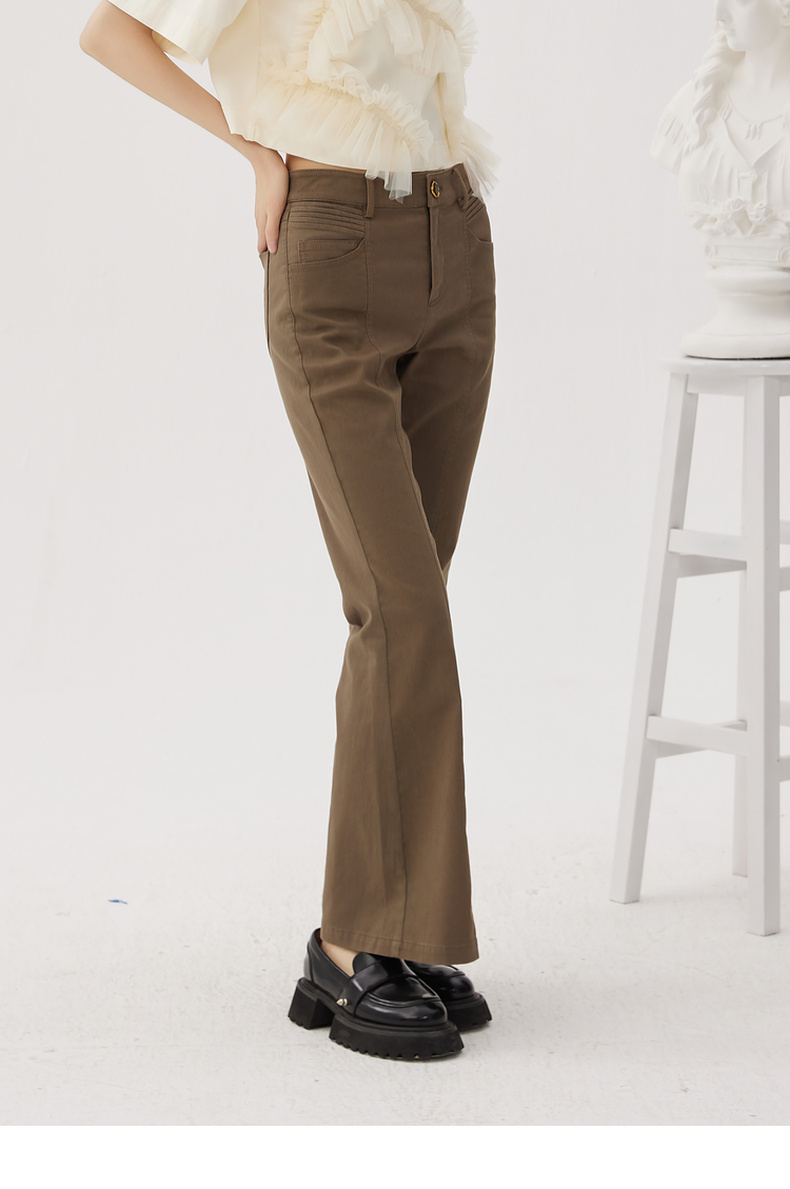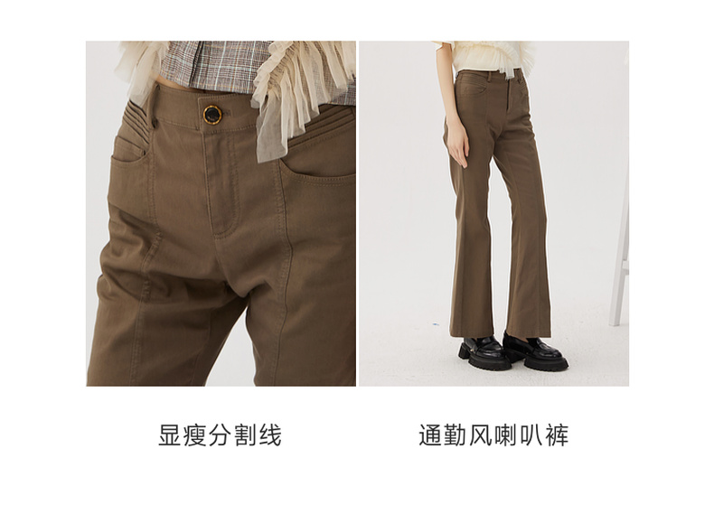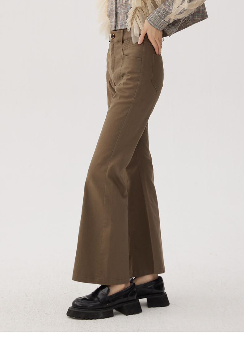 谜底喇叭裤女士2024秋新品复古风高腰百搭特色修身长裤243MK1106
