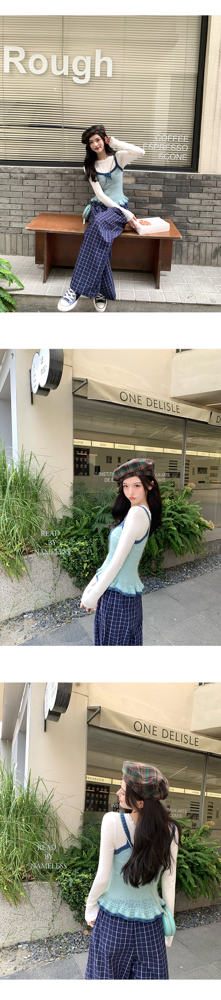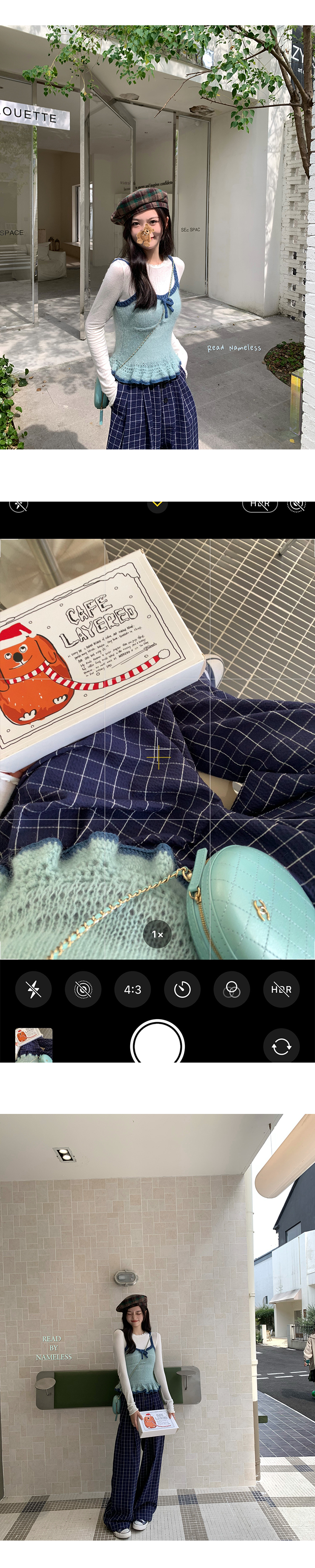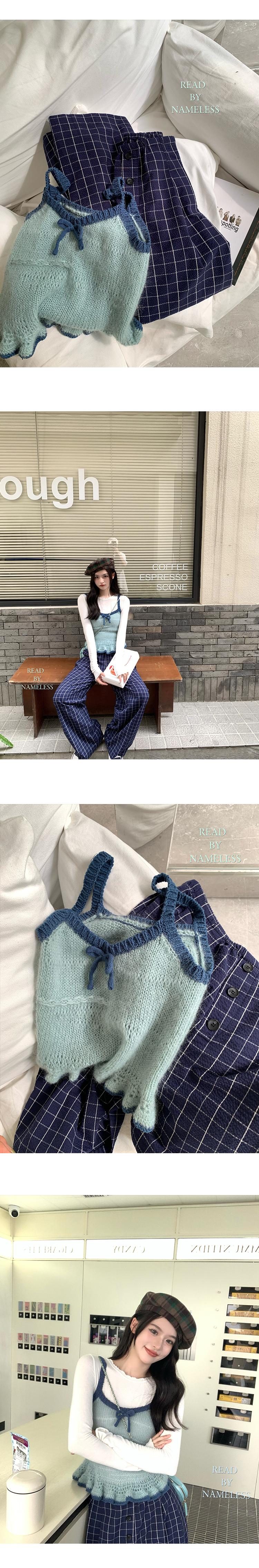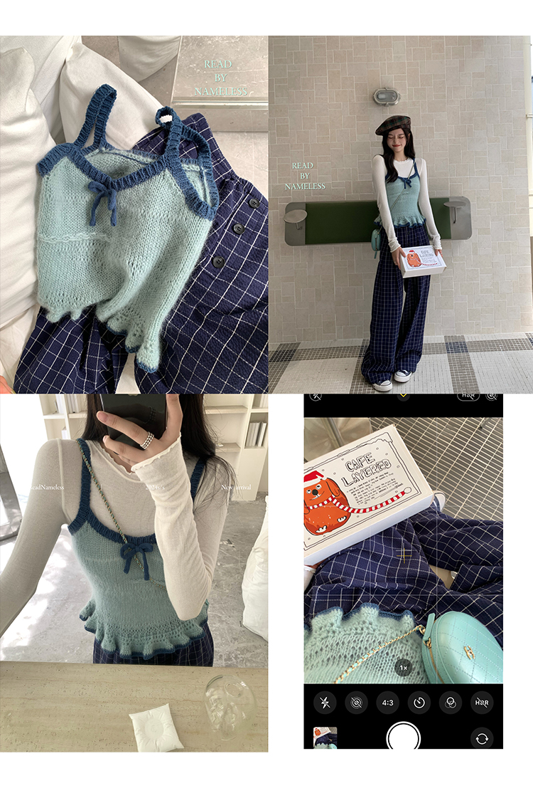 Read Nameless /马海毛蓝拼独家吊带+最近很火的蓝色慵懒格子裤