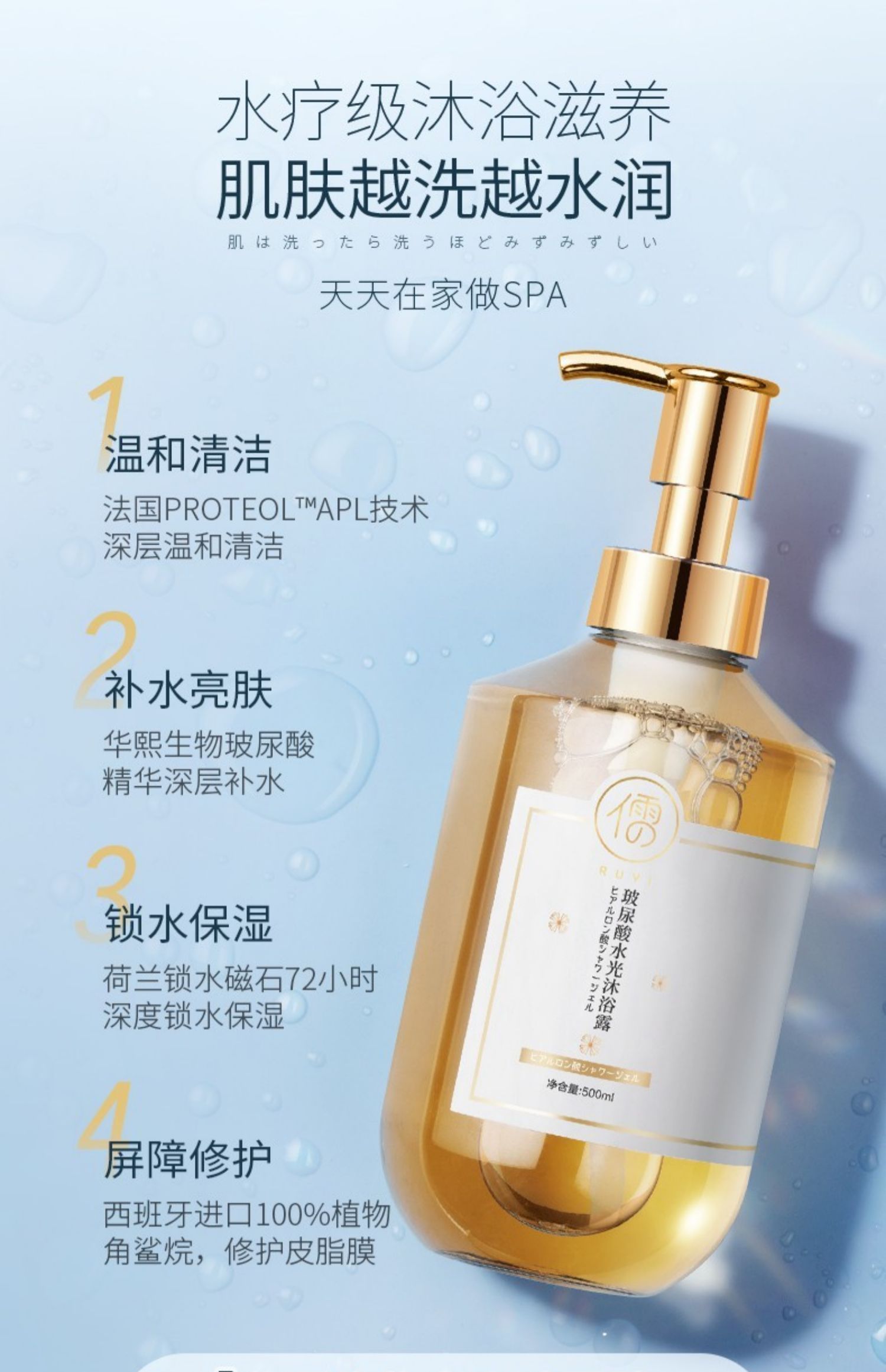 【巨补水 肌肤越洗越水润】儒意玻尿酸水光沐浴露 华熙生物合作品牌 补水保湿 针对干燥 粗糙 毛孔粗大 泛红 瘙痒 脱皮掉屑肌肤 500ml/瓶