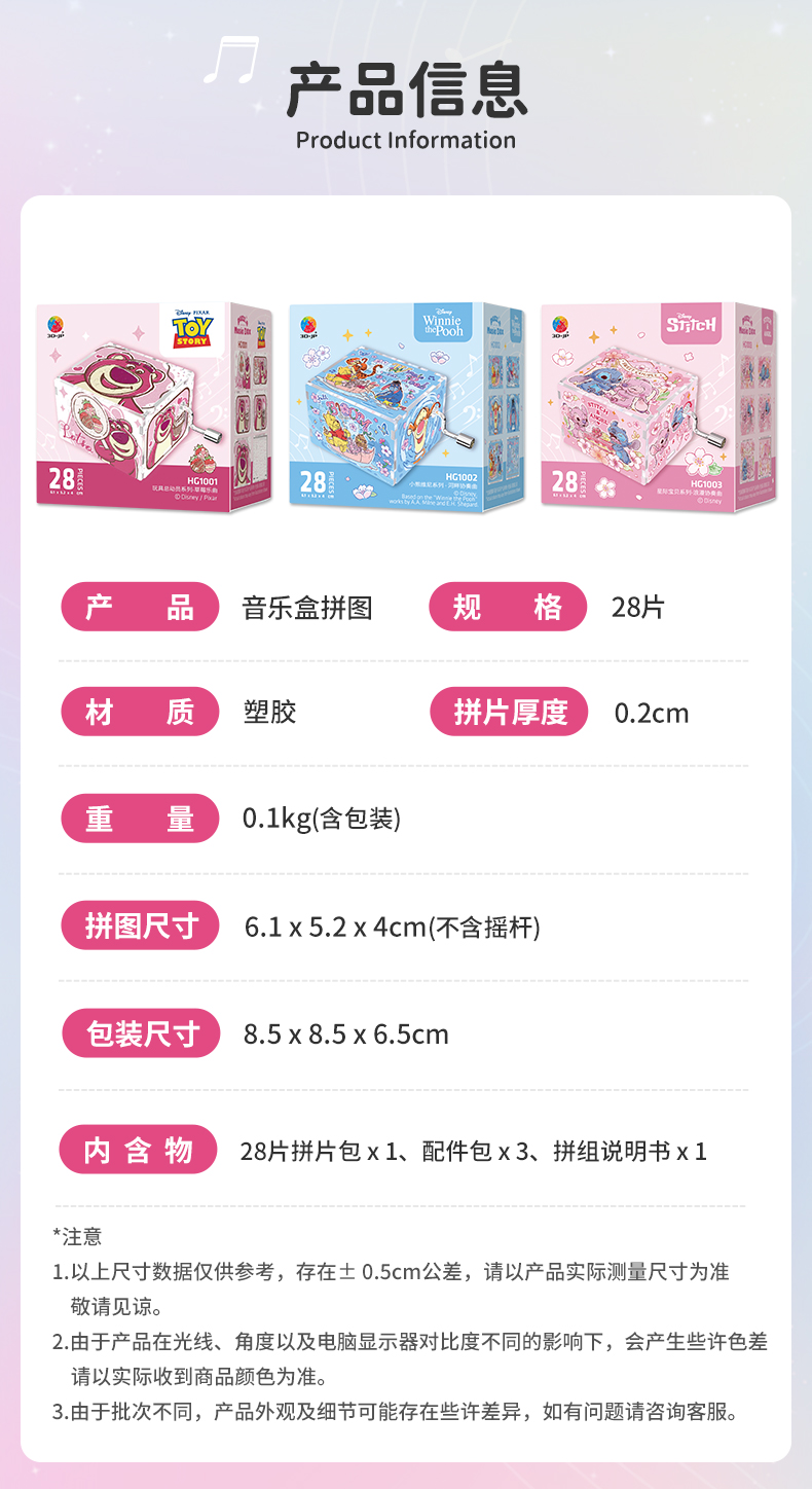 28片 音乐盒拼图 迪士尼系列 HG1001/HG1002/HG1003