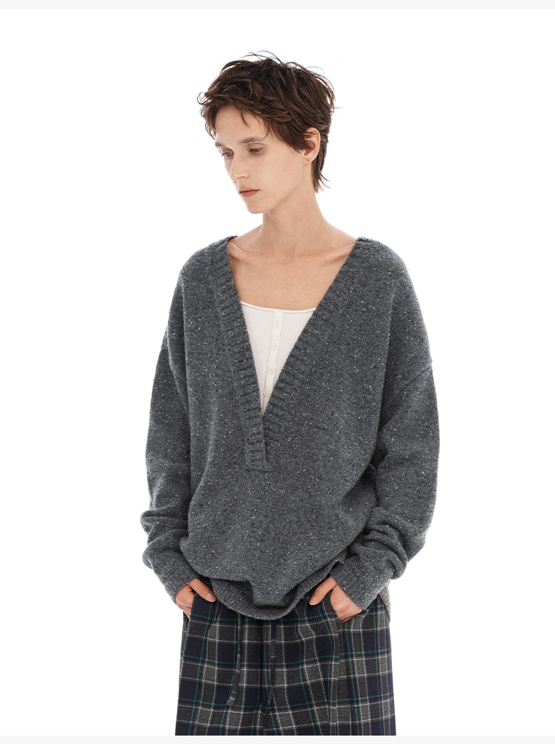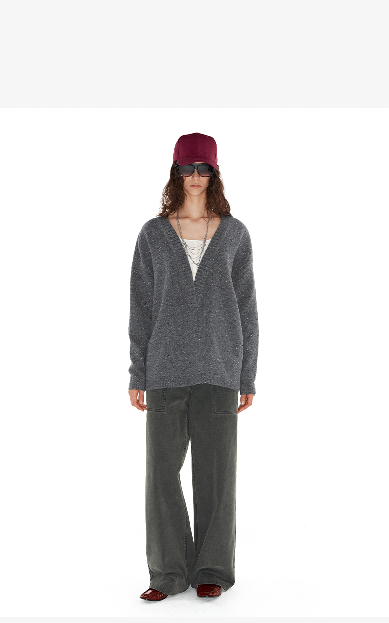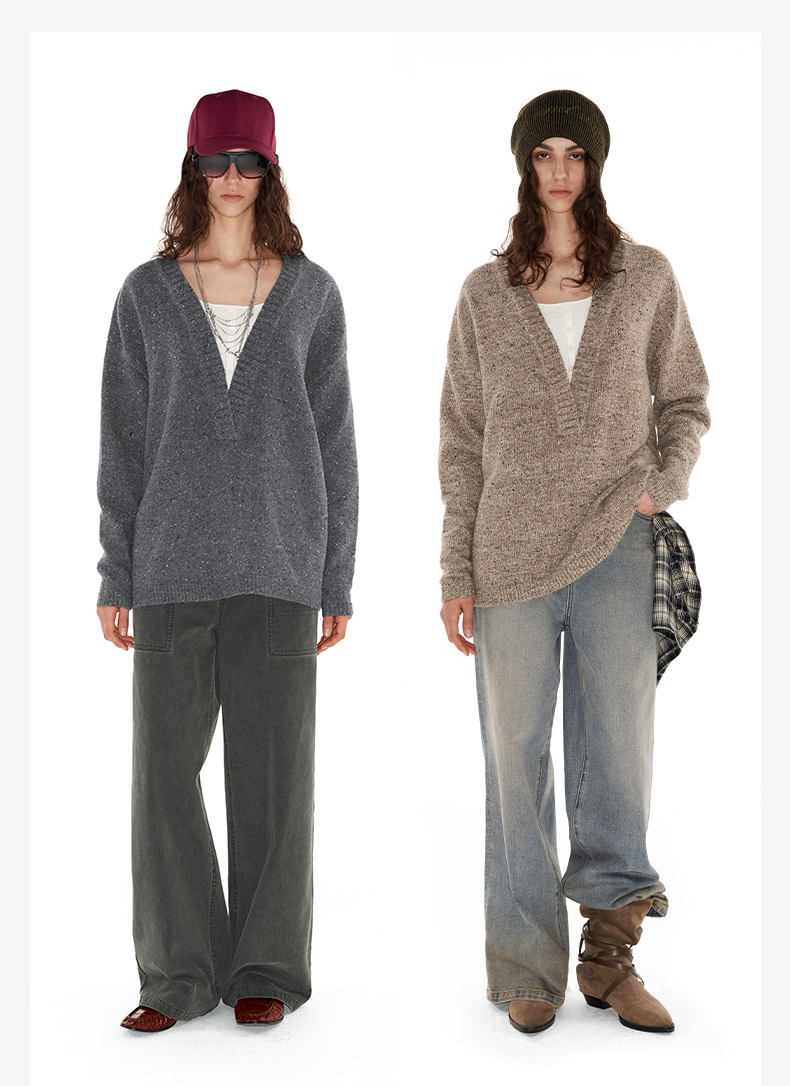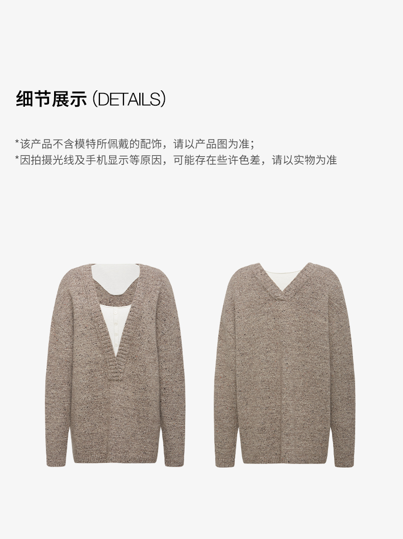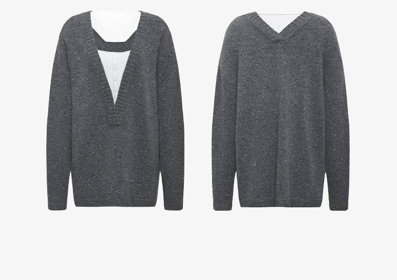 NUTH 深V领两穿宽松毛衣拼接假两件设计套头慵懒针织毛衣女