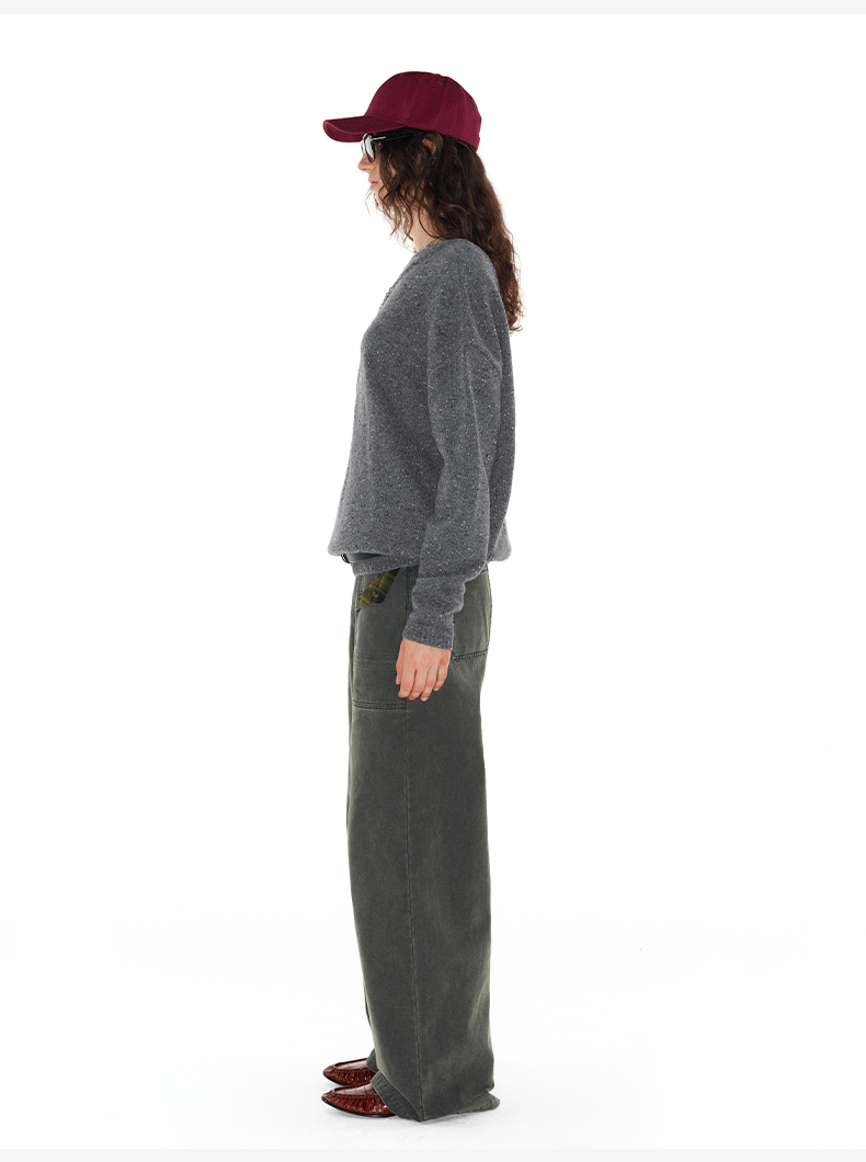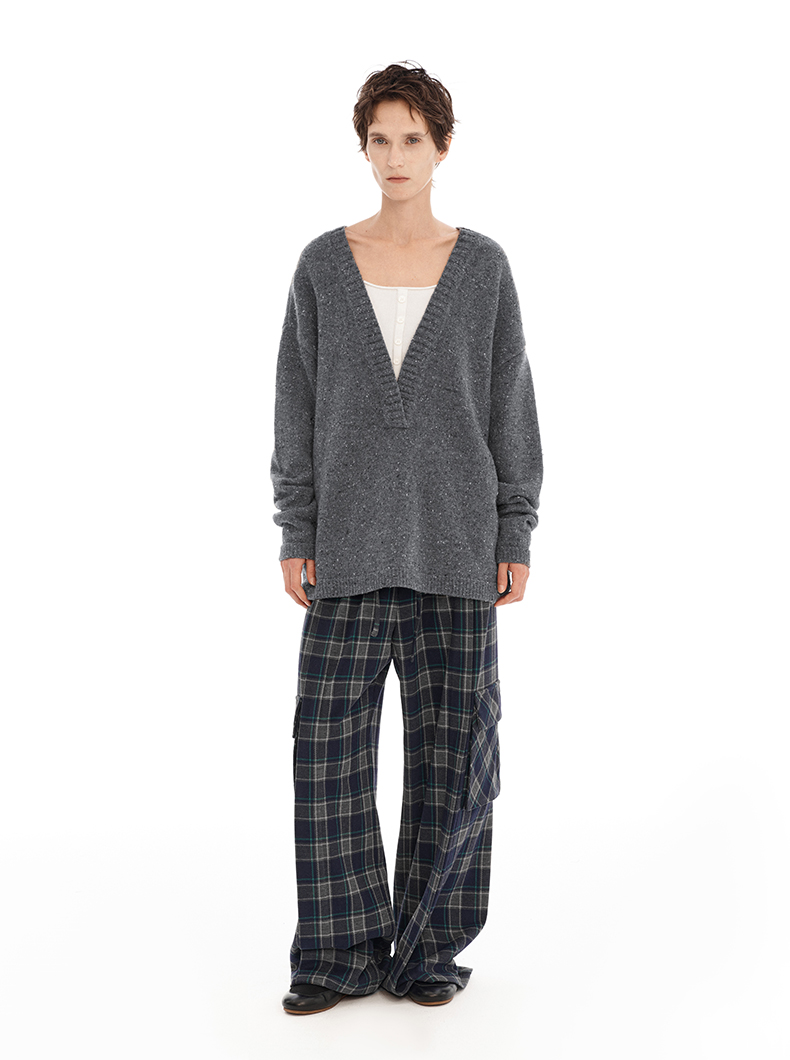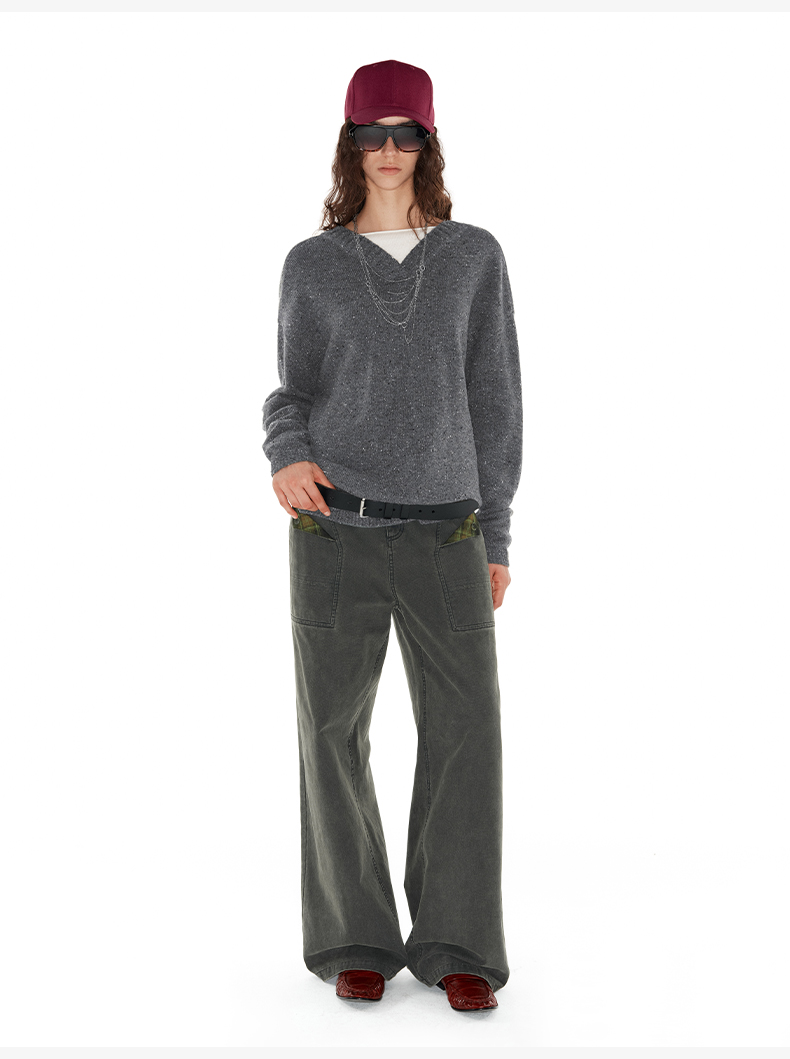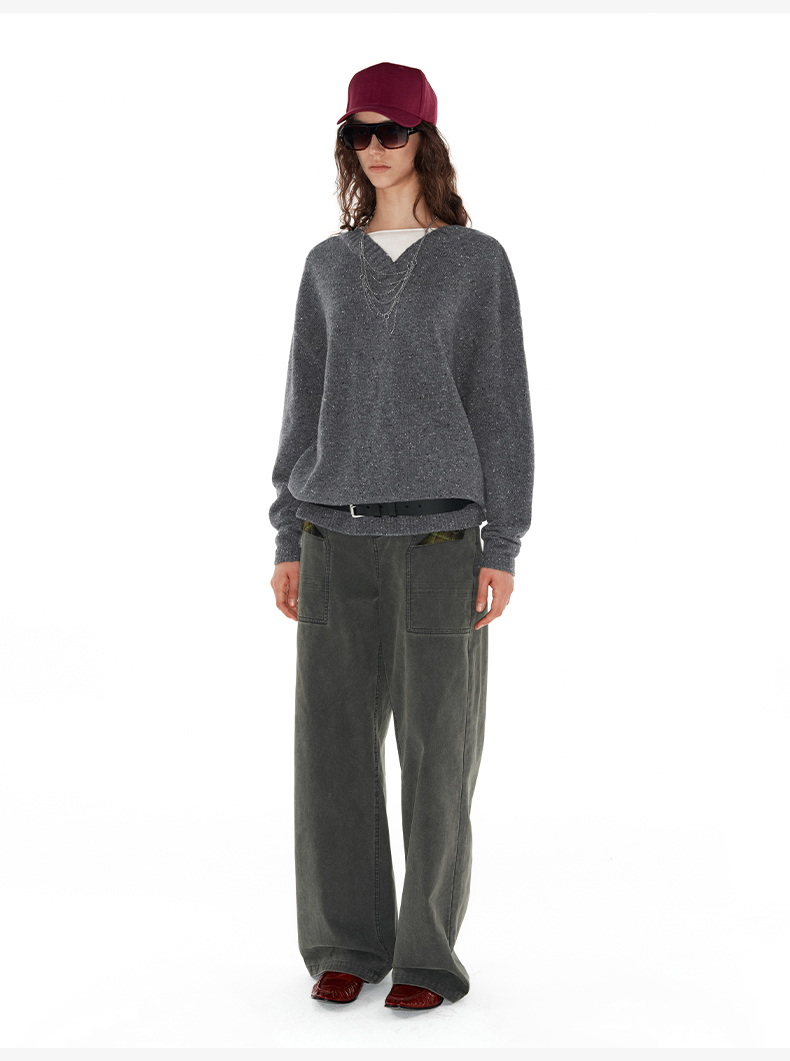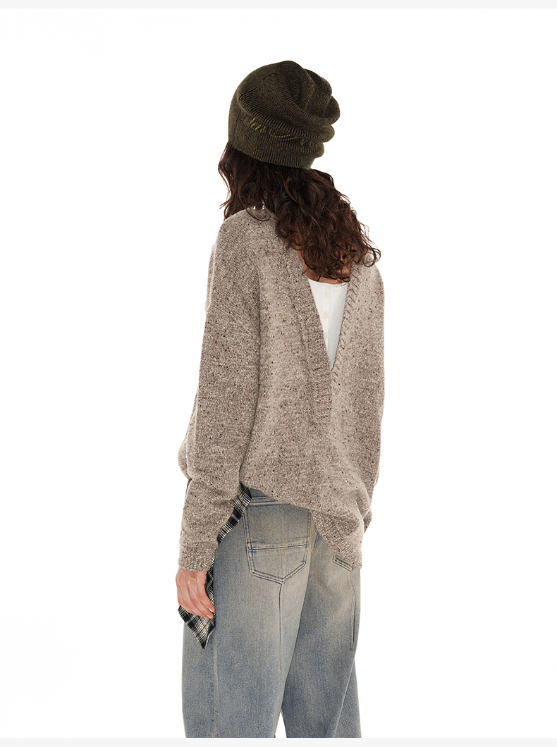 NUTH 深V领两穿宽松毛衣拼接假两件设计套头慵懒针织毛衣女