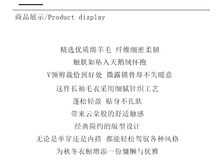 S·Y·C【轨迹】羊绒 羊毛V领气质舒适休闲百搭套头上衣女