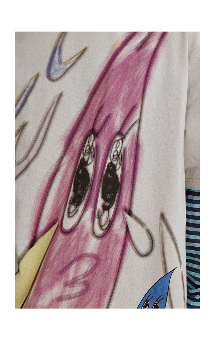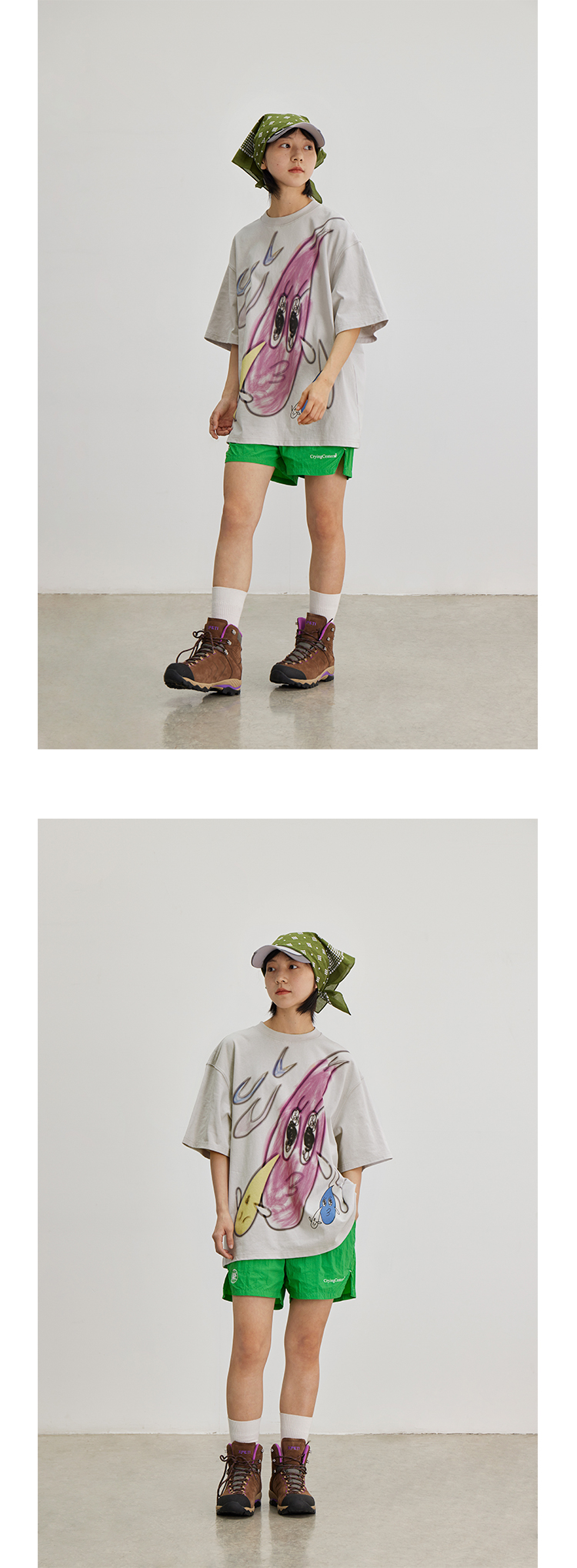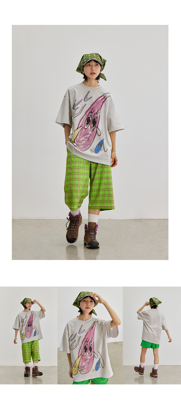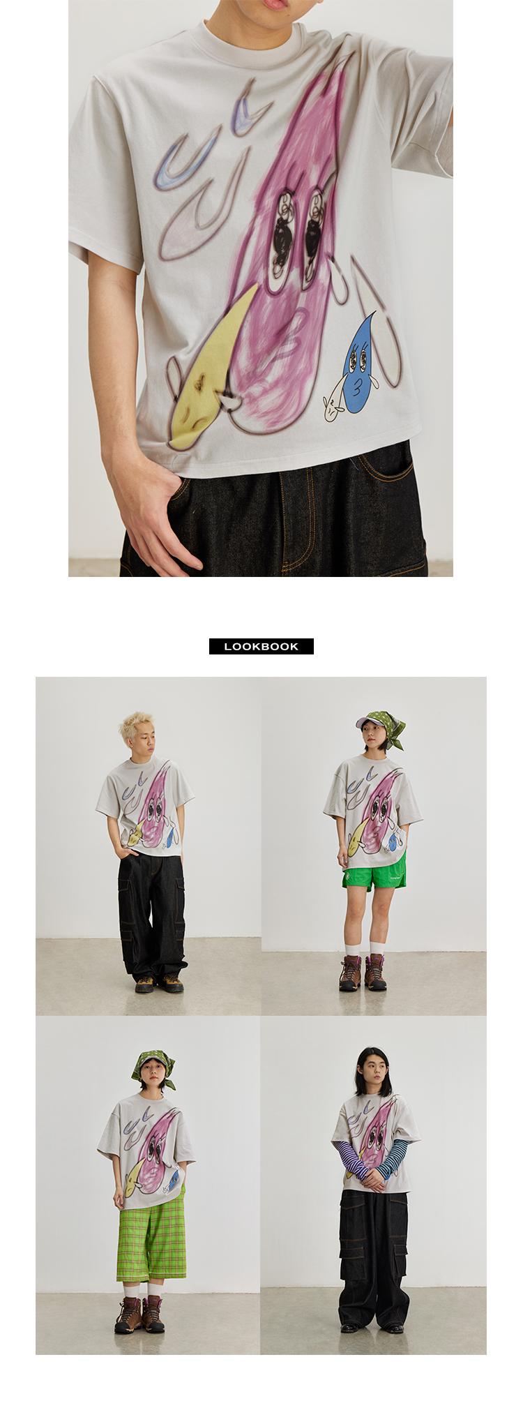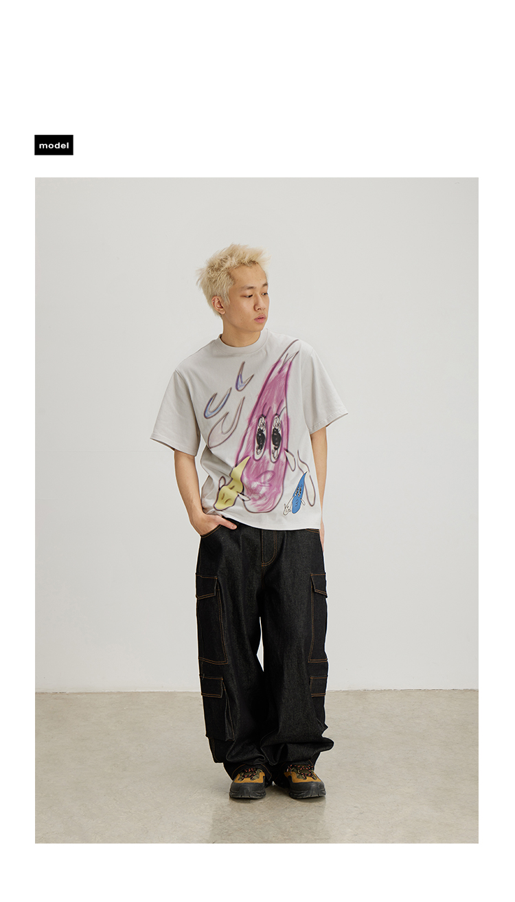 CryingCenter手绘大眼泪卡通街头TEE宽松纯棉浅灰嘻哈风情侣短袖