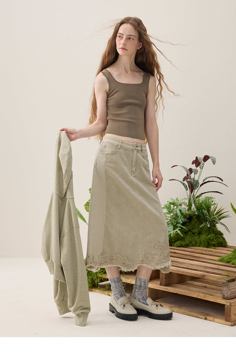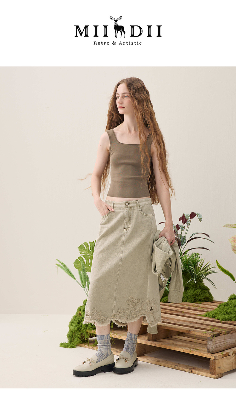 谜底复古红格半裙2026夏季新品不规则飘逸灵动中长裙女262MB0602