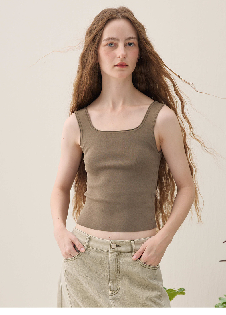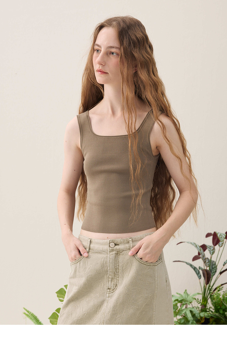 谜底针织衫背心2026年春季新品方领短款立体舒适内搭女261MZ0329