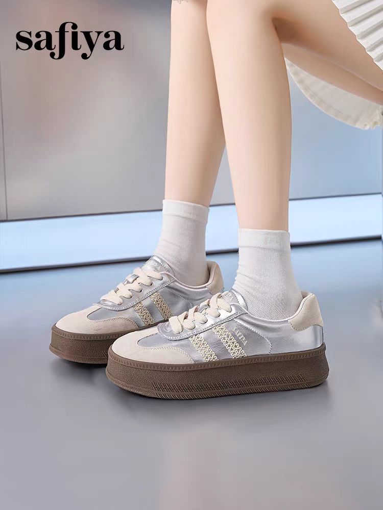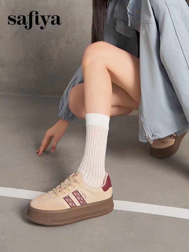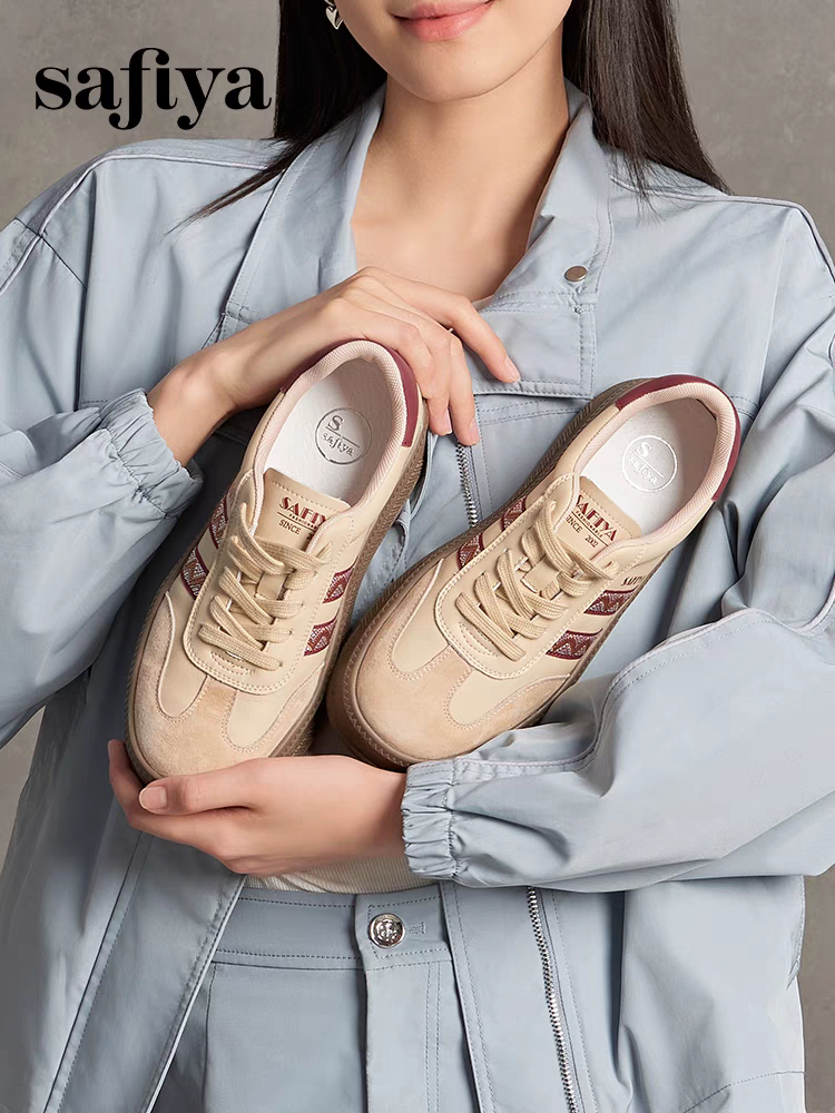索菲娅2024年蕾丝边芭蕾风拼色复古百搭厚底德训女鞋