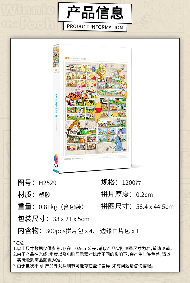 1200片 平面塑料拼图 H2529 小熊维尼系列-维尼漫画