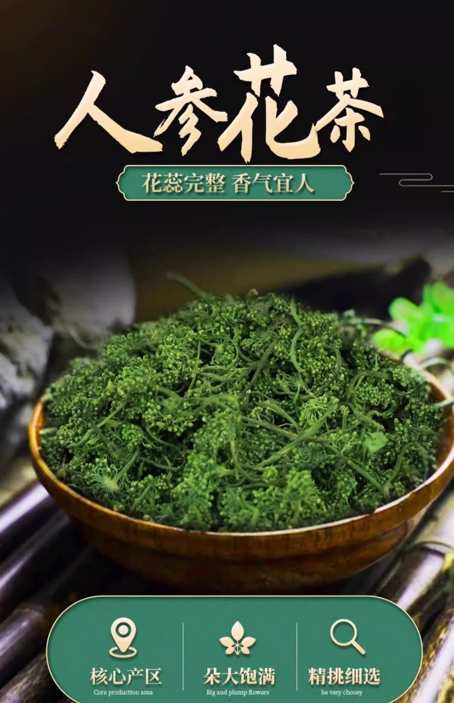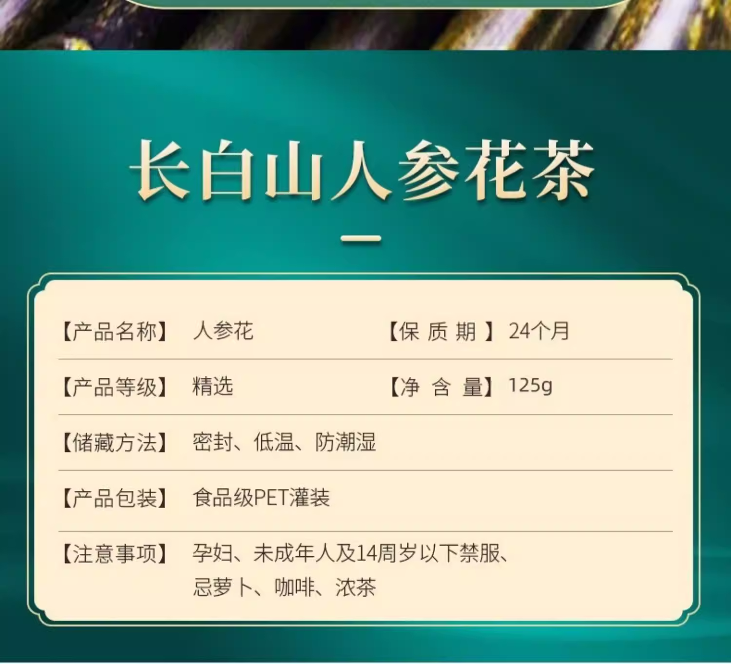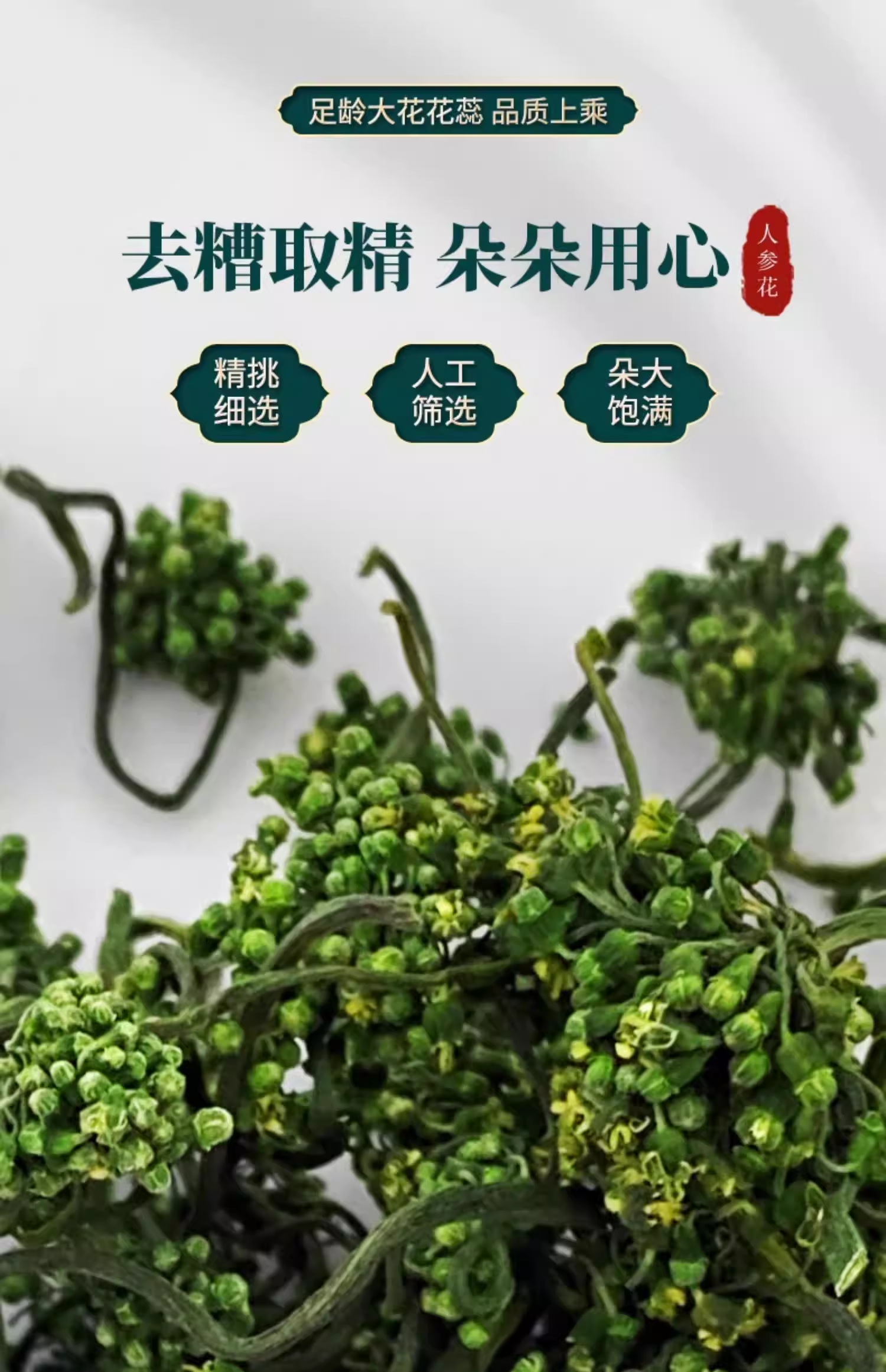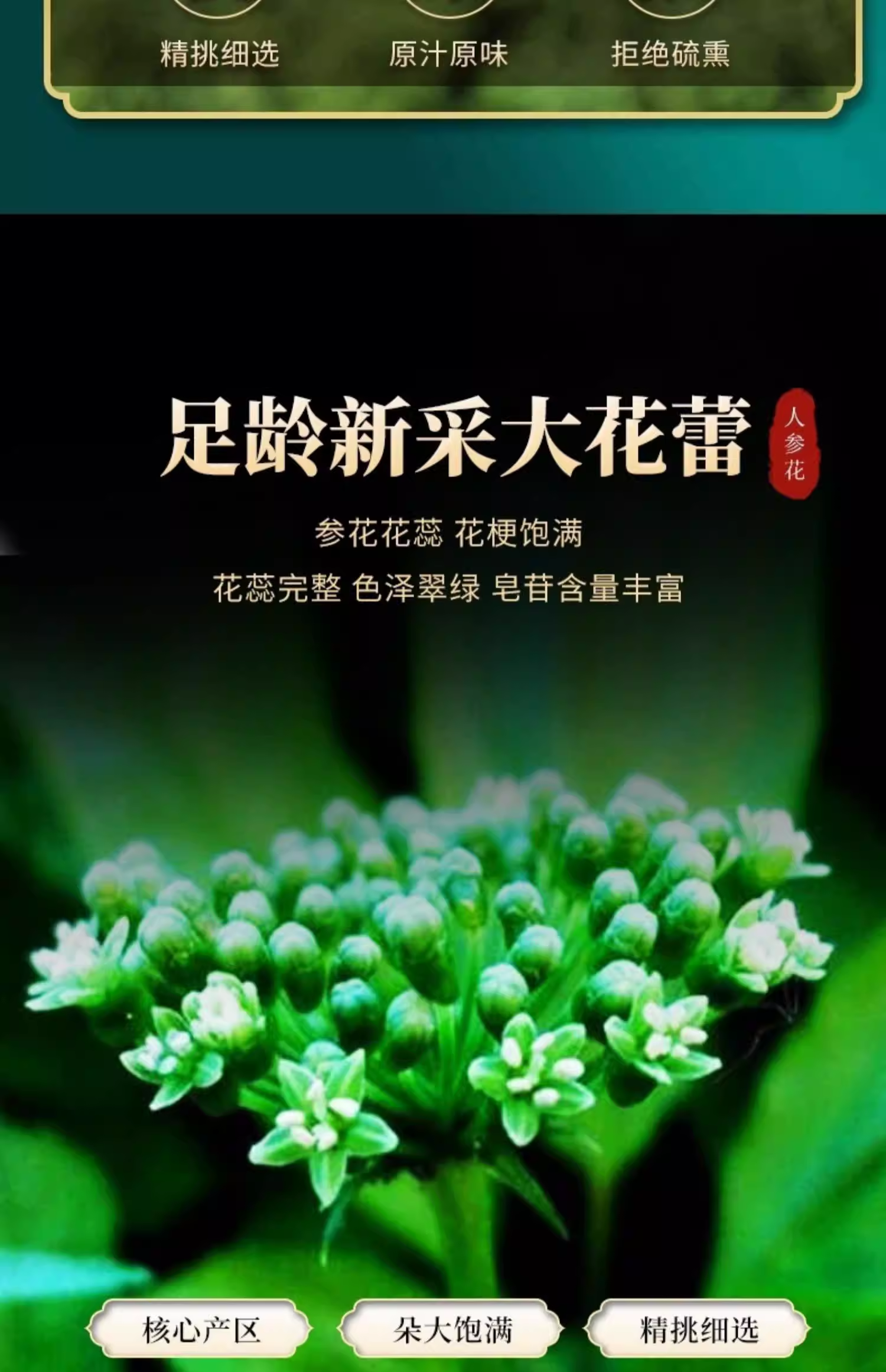 东北特产长白山人参花茶50g 新鲜晒干8年足龄大花蕾