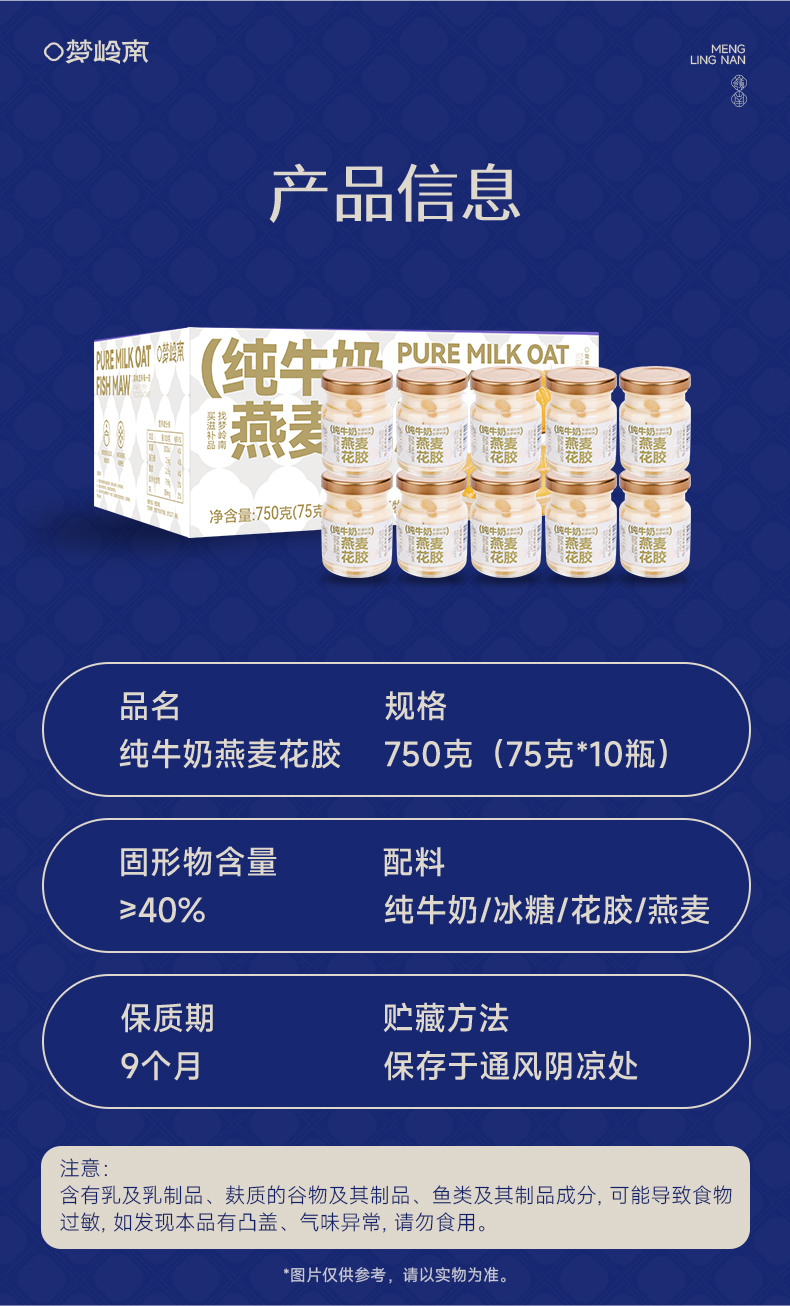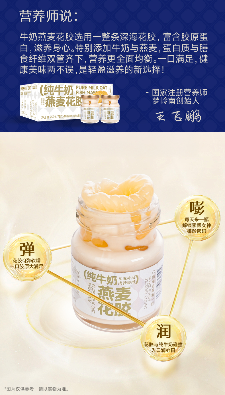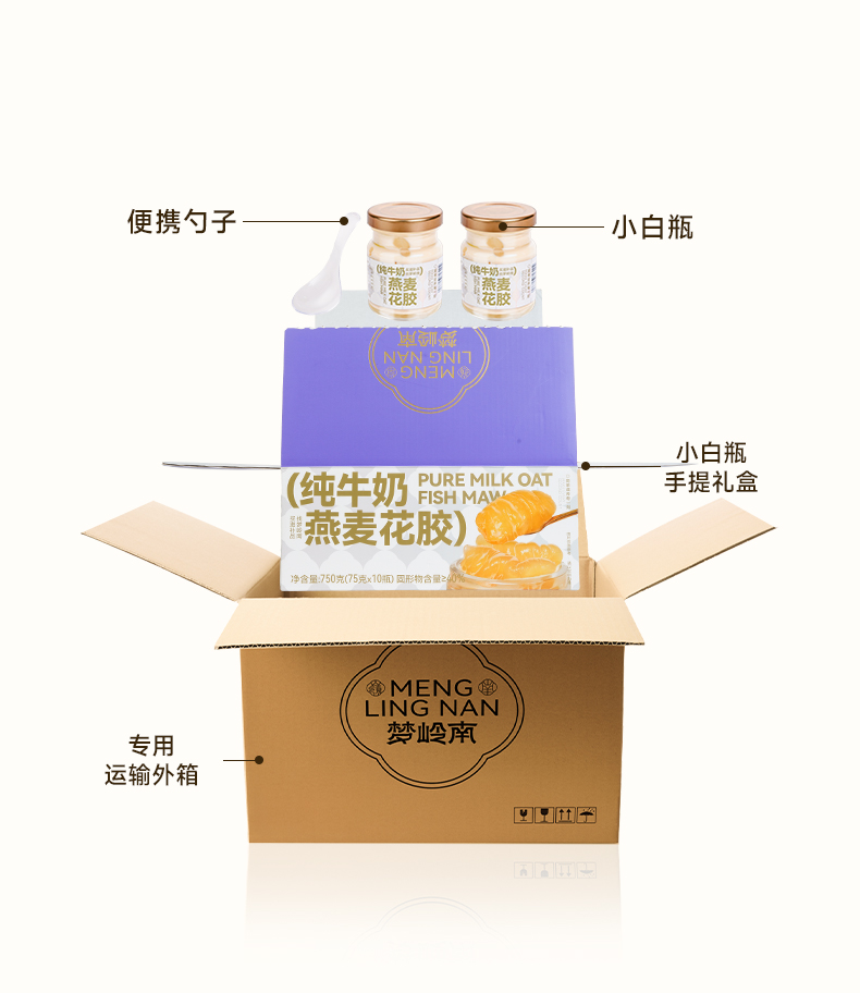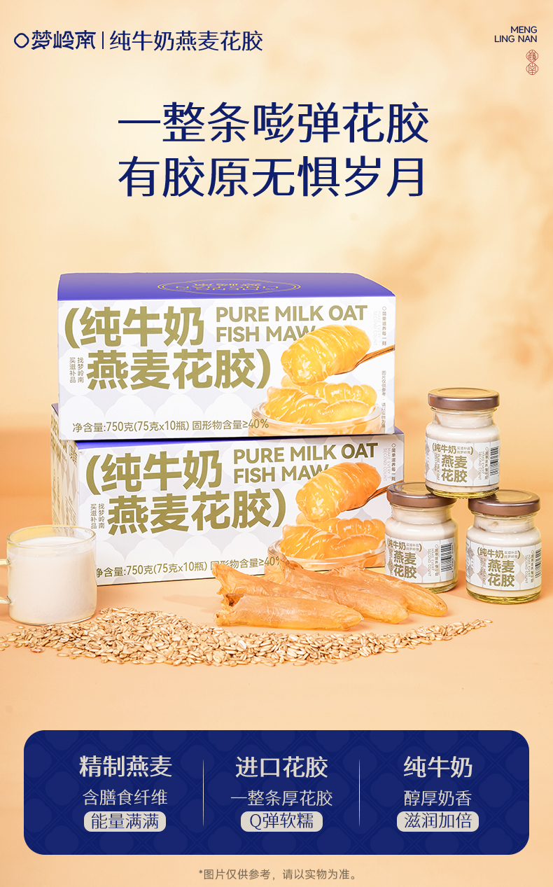 【胶养卵巢 年轻肌秘】梦岭南纯牛奶燕麦花胶75g/瓶 月套餐30瓶 礼袋装 一整条深海进口花胶 纯牛奶炖煮 无水鲜炖 食养健康