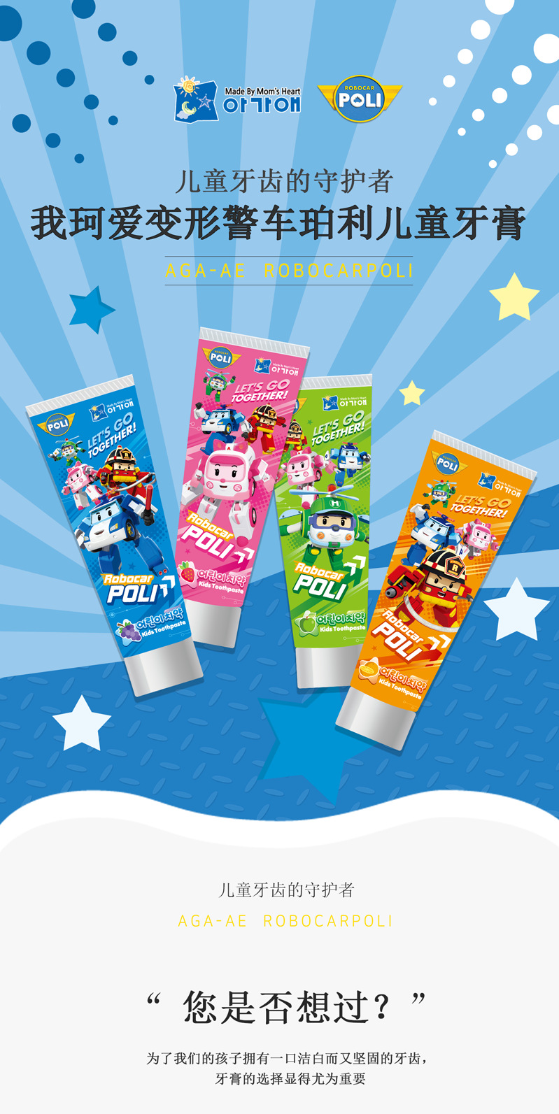 我珂爱 变形警车珀利儿童口腔清洁牙膏 80g/支