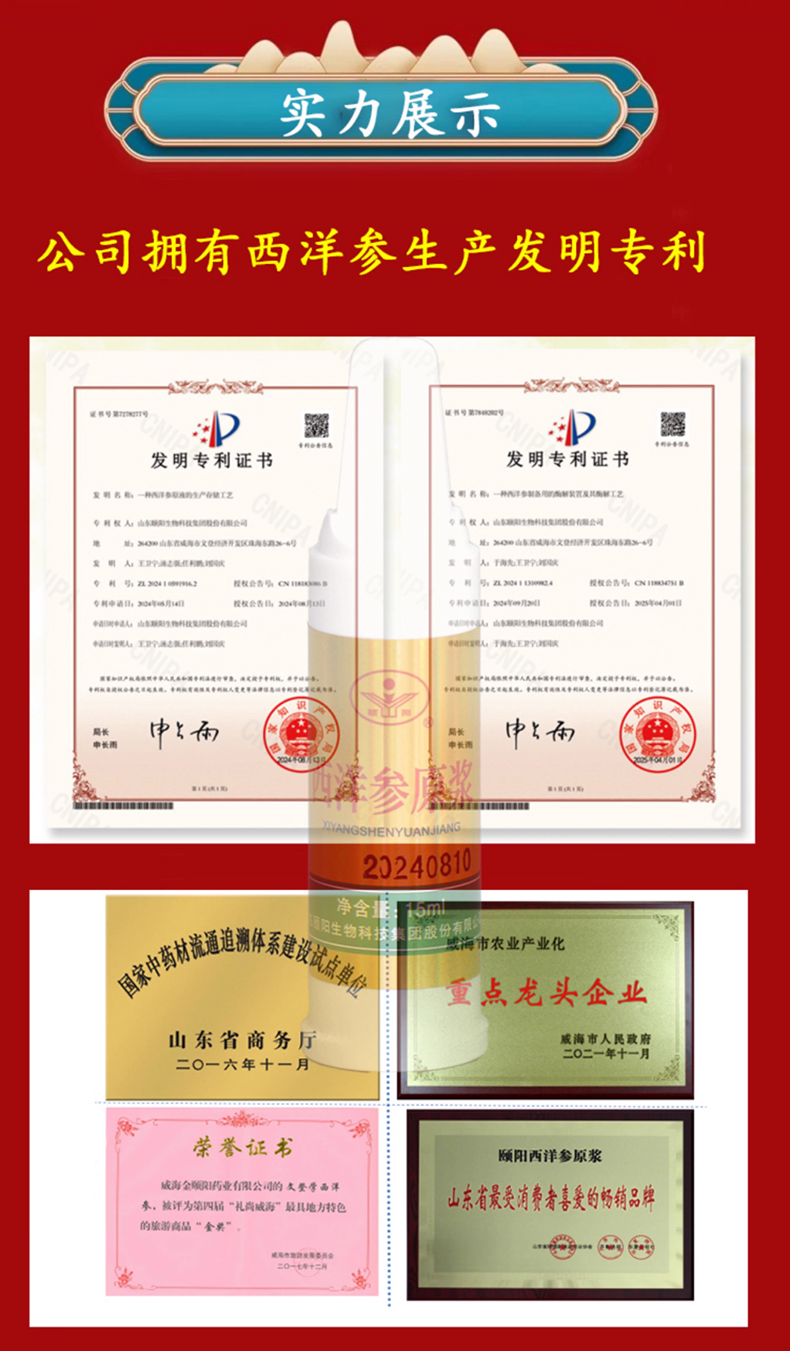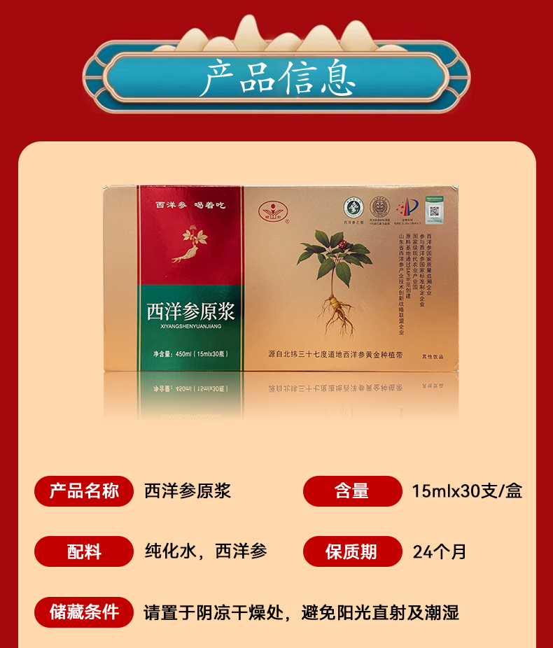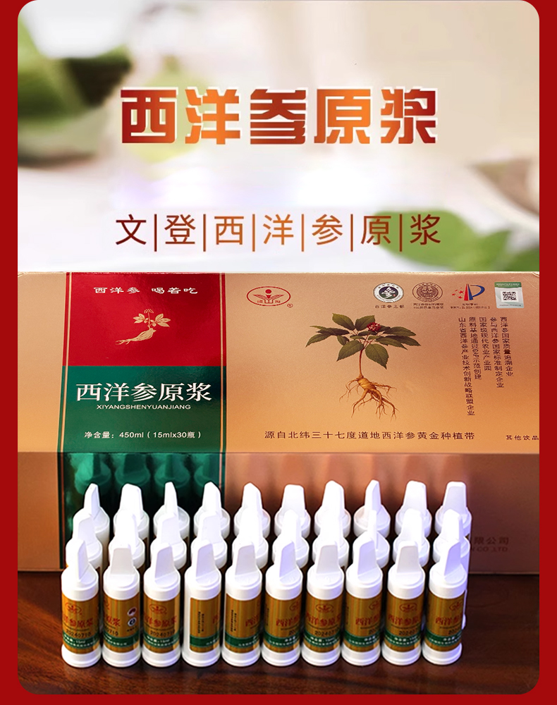 【清新回甘】颐阳 西洋参原浆 15ml*30支/盒 营养易吸收