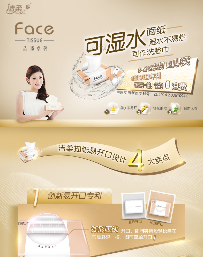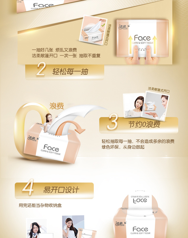 【洁柔抽纸巾】3层120抽3包面巾纸face原生木浆纸居家日用清洁工具一提餐巾纸