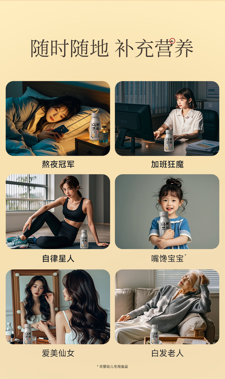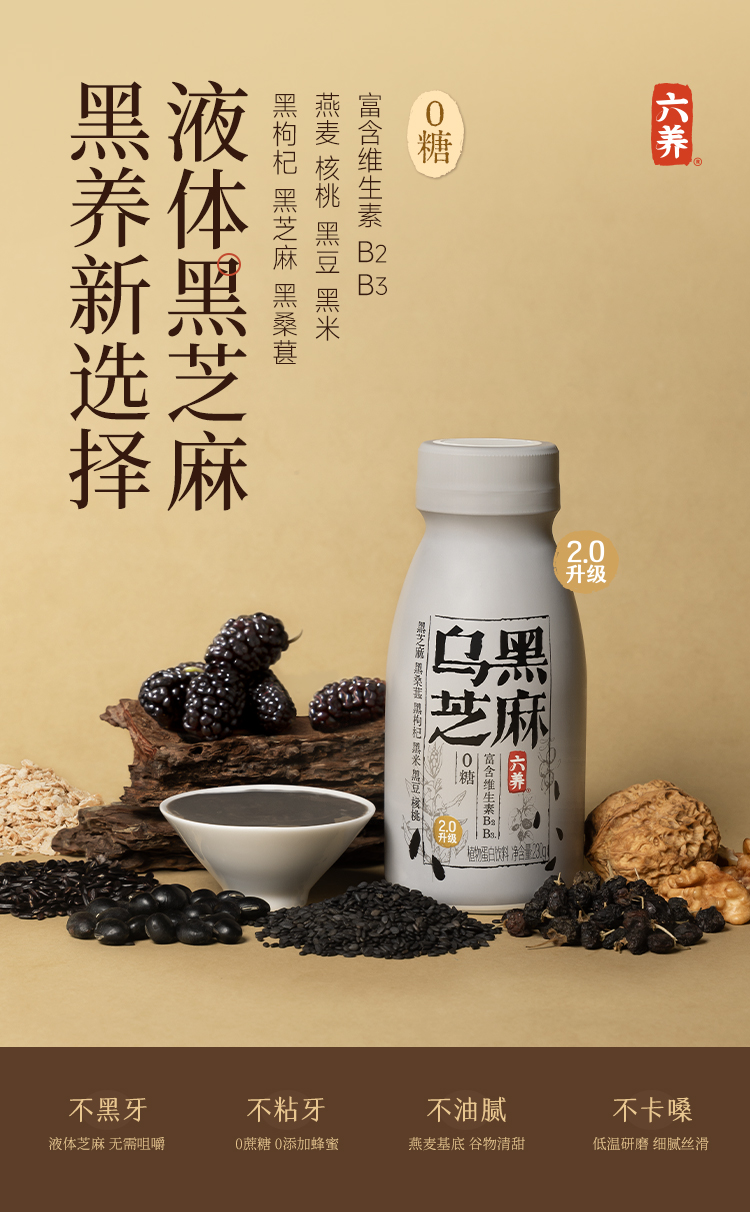 【六养】乌黑芝麻 2.0升级版0糖富含维生素B2B3* 230g*8
