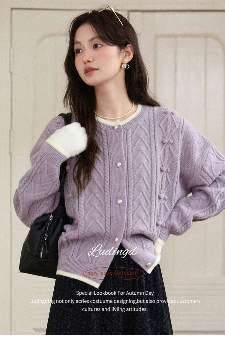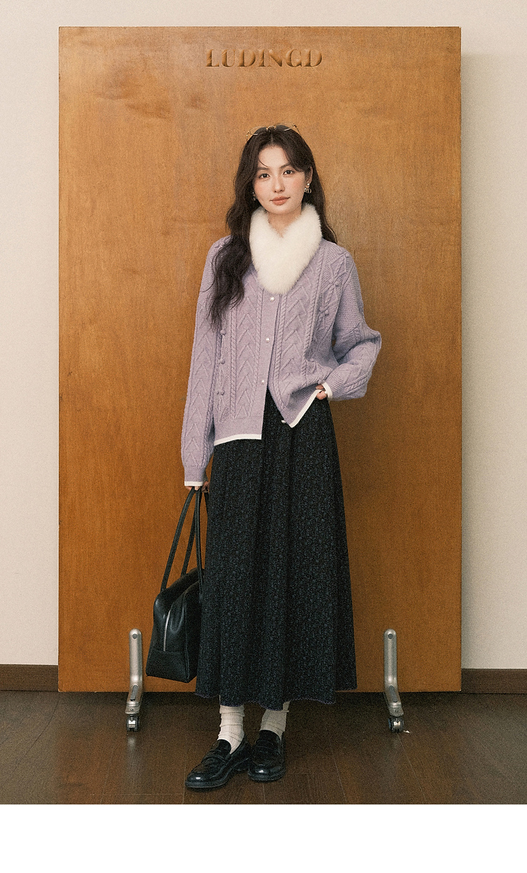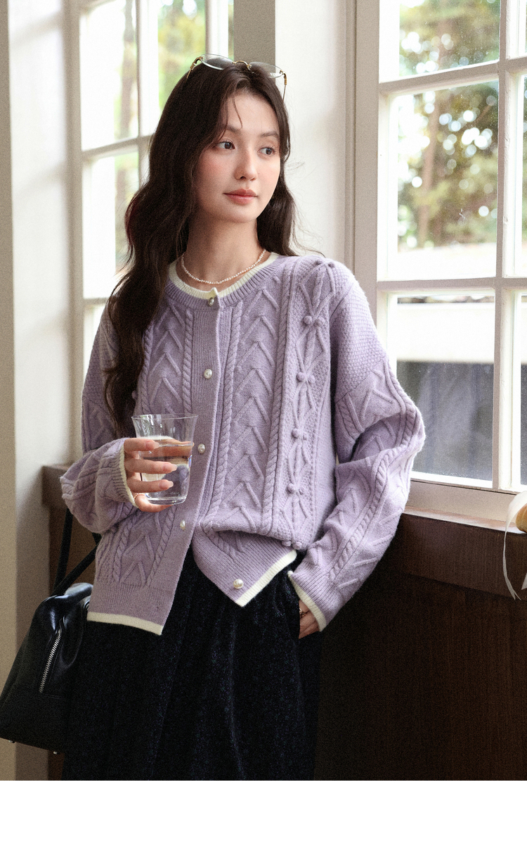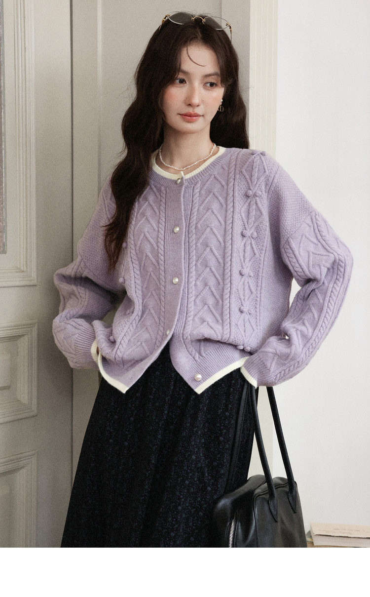 鹿向南「冬日恋曲」法式灰紫色毛衣开衫女秋冬新款慵懒感宽松上衣
