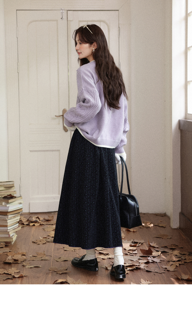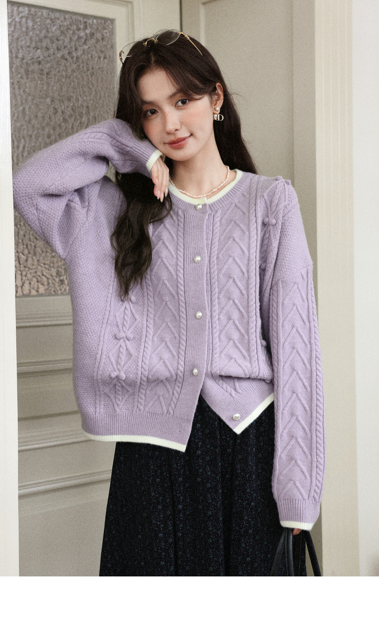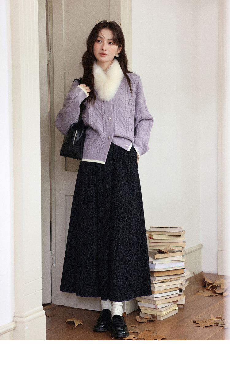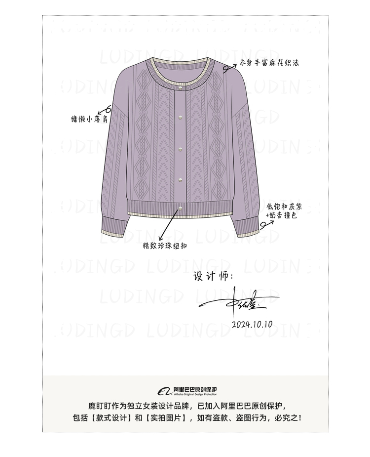 鹿向南「冬日恋曲」法式灰紫色毛衣开衫女秋冬新款慵懒感宽松上衣