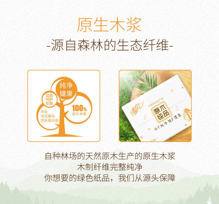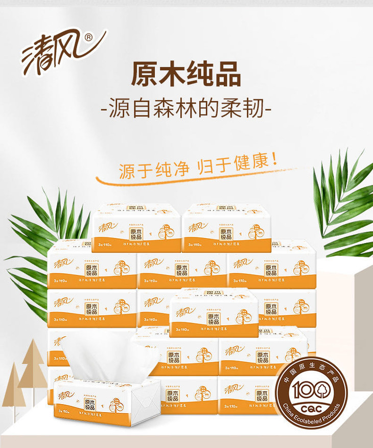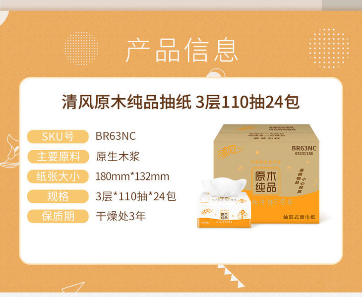 【橙意满满】清风纸巾24包/箱 原木纯净 归于自然 整箱包邮 手纸 手帕纸 纸抽 面巾纸