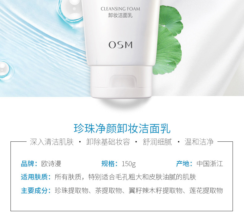 欧诗漫 珍珠净颜卸妆洁面乳150ml深层清洁补水保湿清爽温和不刺激