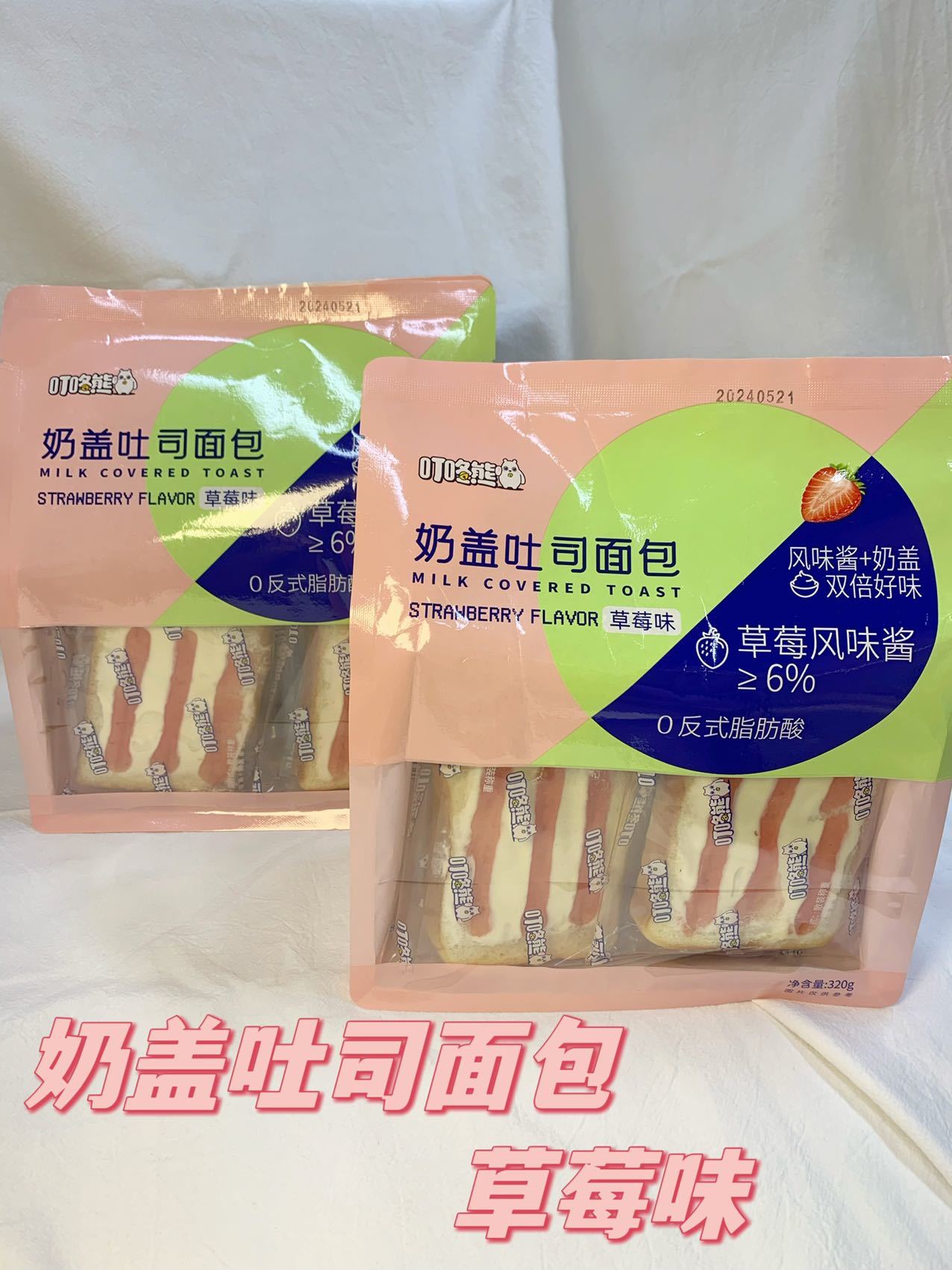 【产品名称】:奶盖吐司面包 【产品类型】:调理面包 【口味】:蓝莓味、草莓味 【产品规格】:320g/袋(约6个) 【加工工艺】:冷加工 【食用方法】:开袋即食 【生产日期】:如包装(/年/月/日) 【保质期】:90天 【贮存方法】:常温条件下,阴凉、干燥处密封,开封后请立即使用。 【致敏信息提示】:本产品含有麸质的谷物及其制品、大豆及其制品、乳及乳制品。 【产地】:福建省漳州市 【发货地区】:福建省 【发货时间】:正常情况下48小时内发货 【发货快递】:中通、韵达随机发货,不接受指定快递 【运费标准】:包邮,新疆、西藏、内蒙古、青海、宁夏、甘肃、港澳台地区不发货 【售后说明】 1、该产品属于食品类,不支持无理由退换货; 2、产品已经发出的情况下,不可更改地址,拒绝任何形式的拒签,收到产品后当场验货; 3、如出现异常情况,请带面单+产品拍照+产品包装照片与我们联系,我们会第一时间处理,如产品有质量问题可在收货24小时之内,联系客服进行售后或者补发 ; 4、留错地址、电话等信息导致货物不能正常送达均不在售后范围内; 5、发货和上传运单有24-48小时时差,没有运单/单号无物流可以稍等,如时间较长可联系售后查询; 6、因快递暴力导致产品品相不好,不影响食用,不在售后范围内不作赔付!