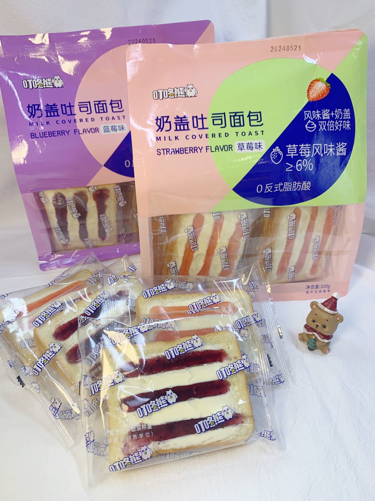 【叮咚熊新品奶盖吐司面包】可以吃的奶盖 真蓝莓/草莓果酱🥭添加✨终于,面包居然也有奶盖系列了