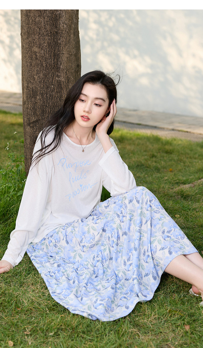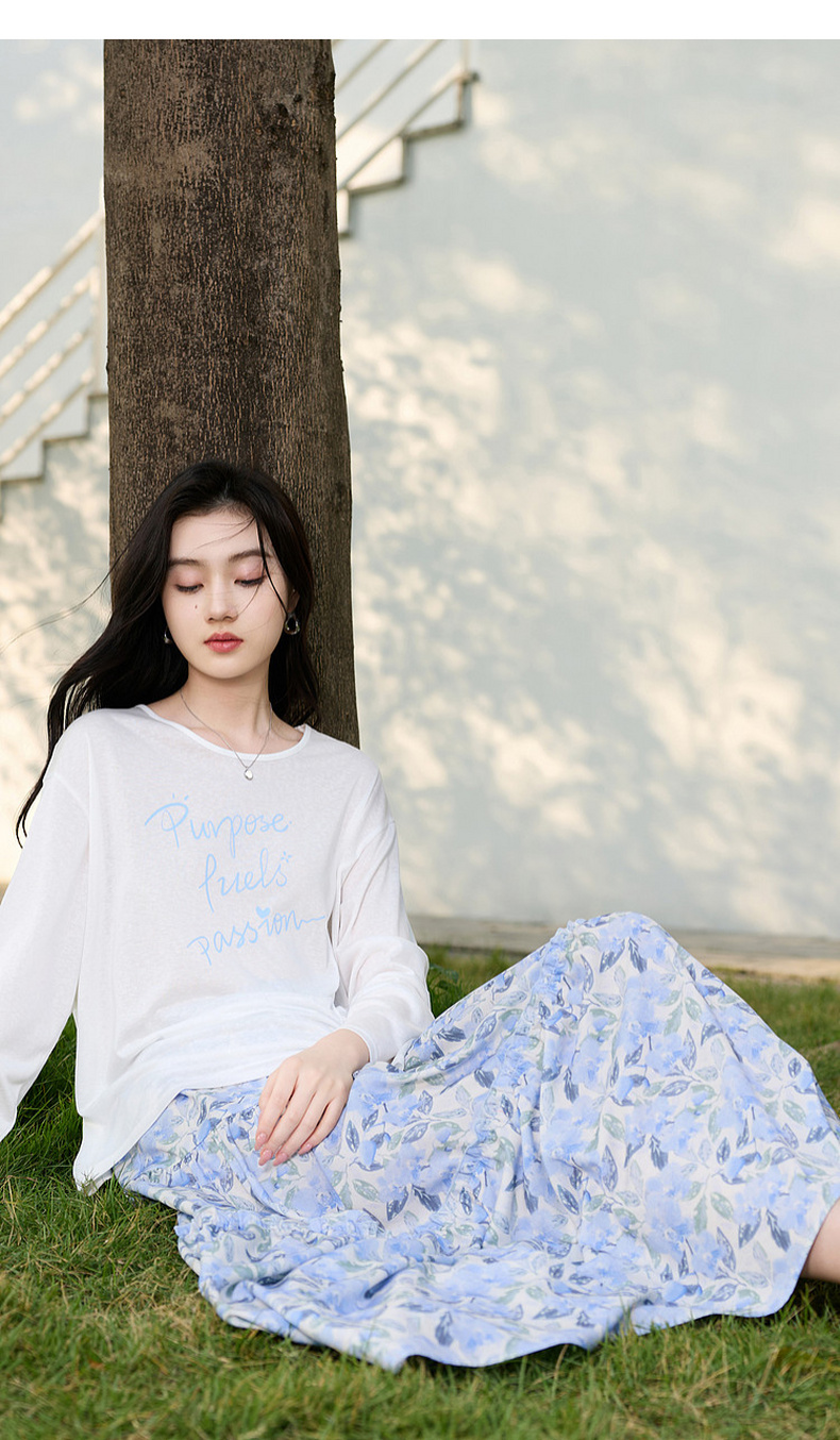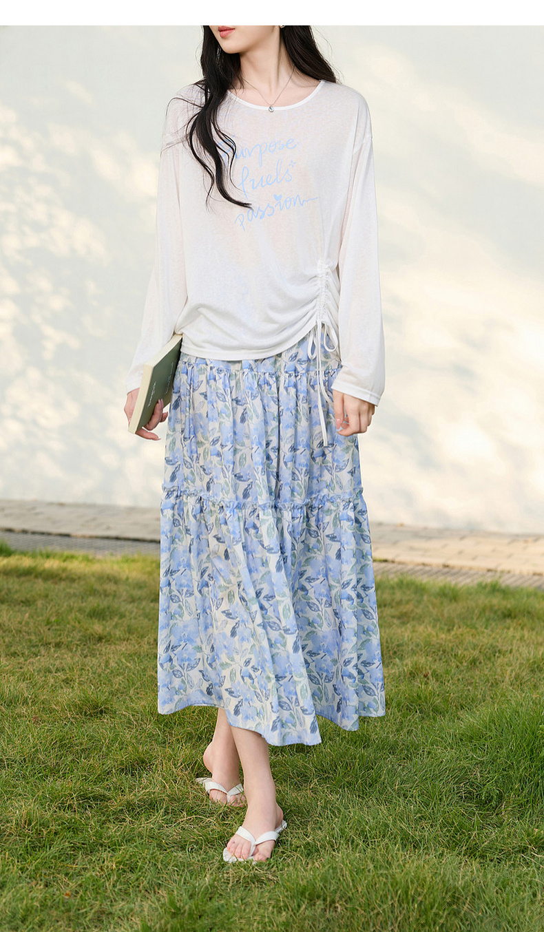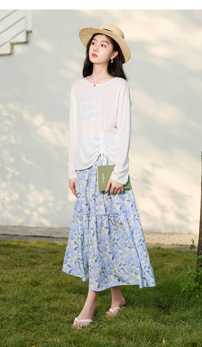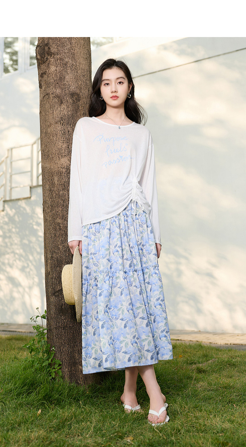 三彩2026春季新款高腰半身裙碎花A字裙长裙大摆宽松垂感S