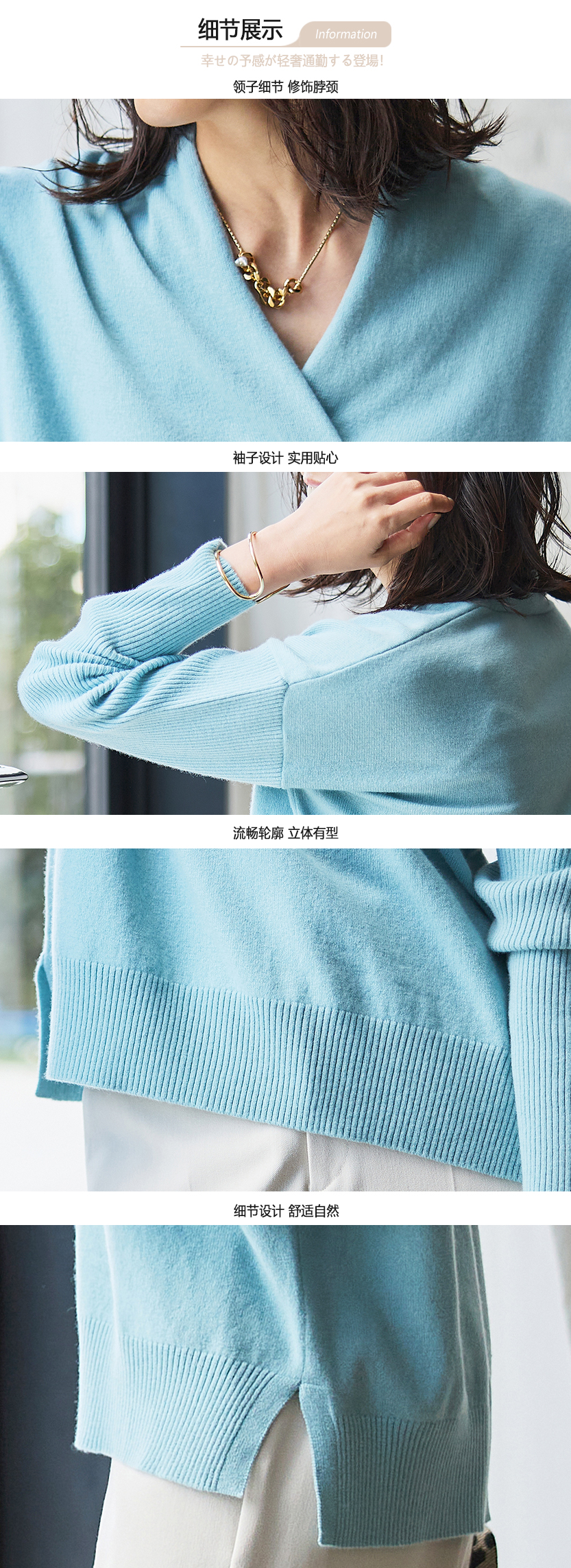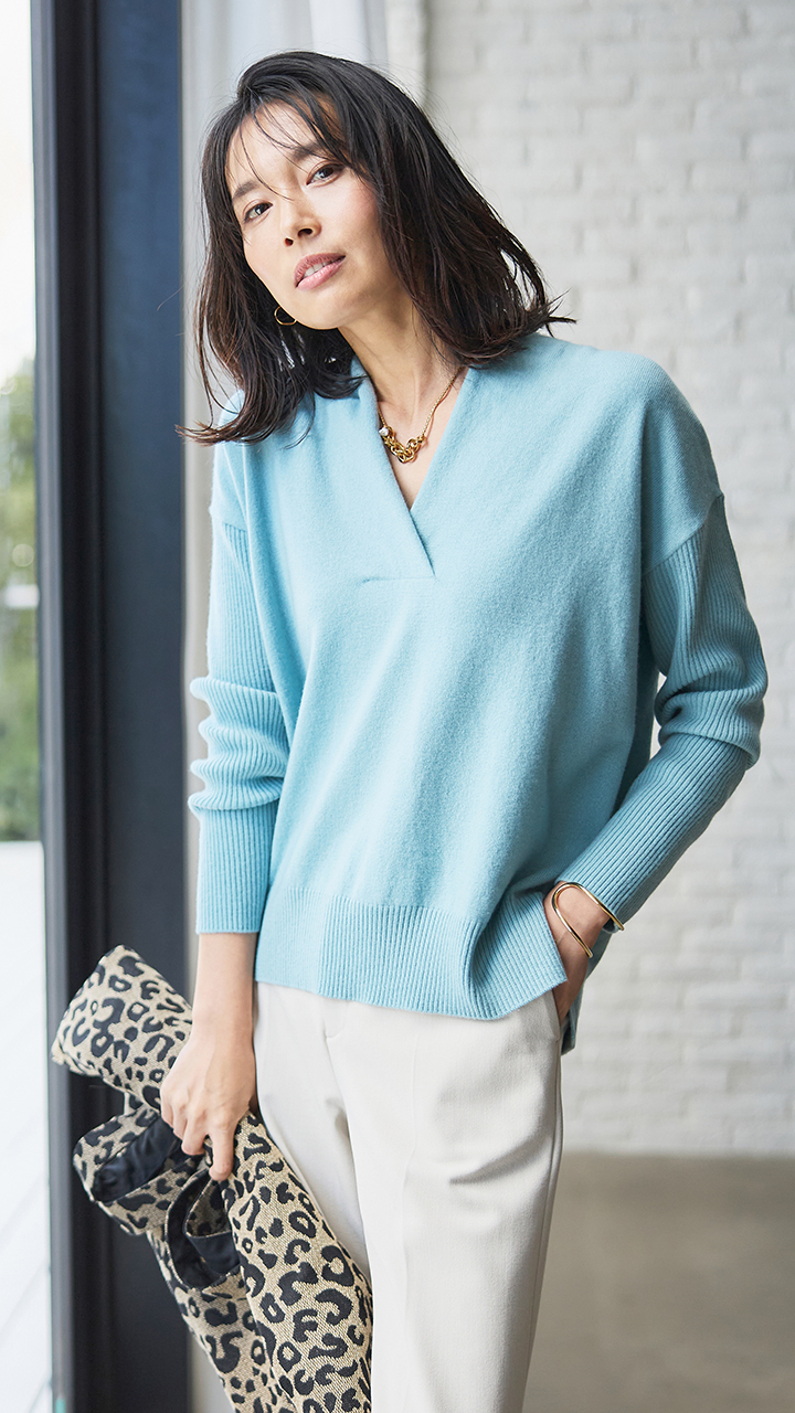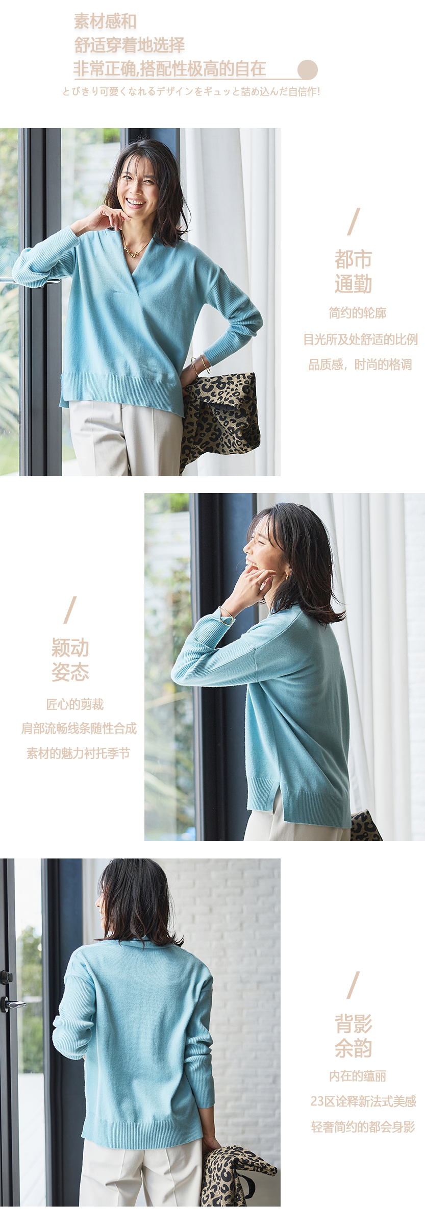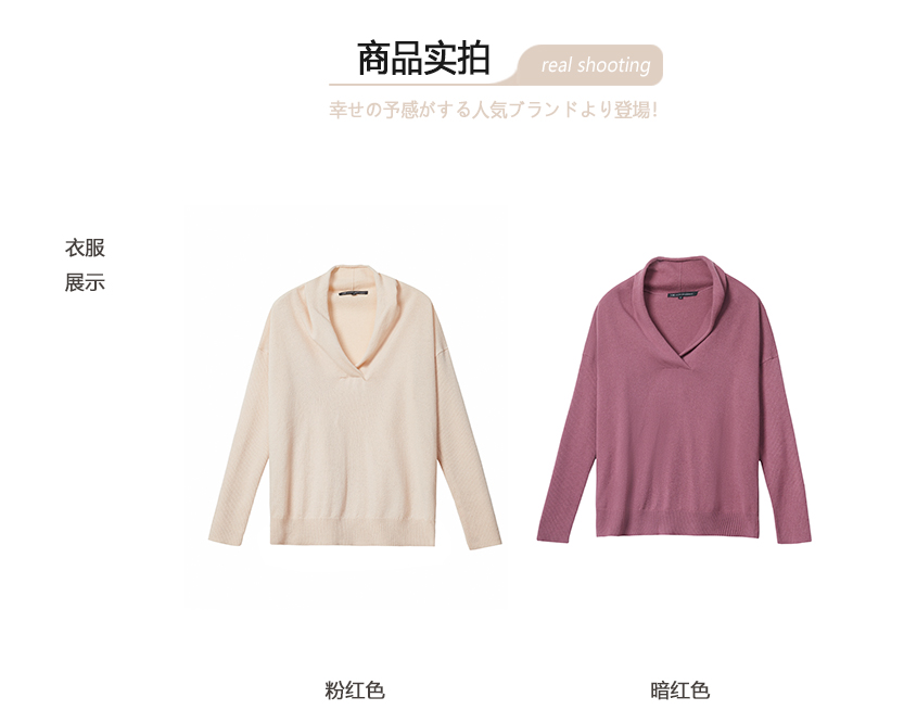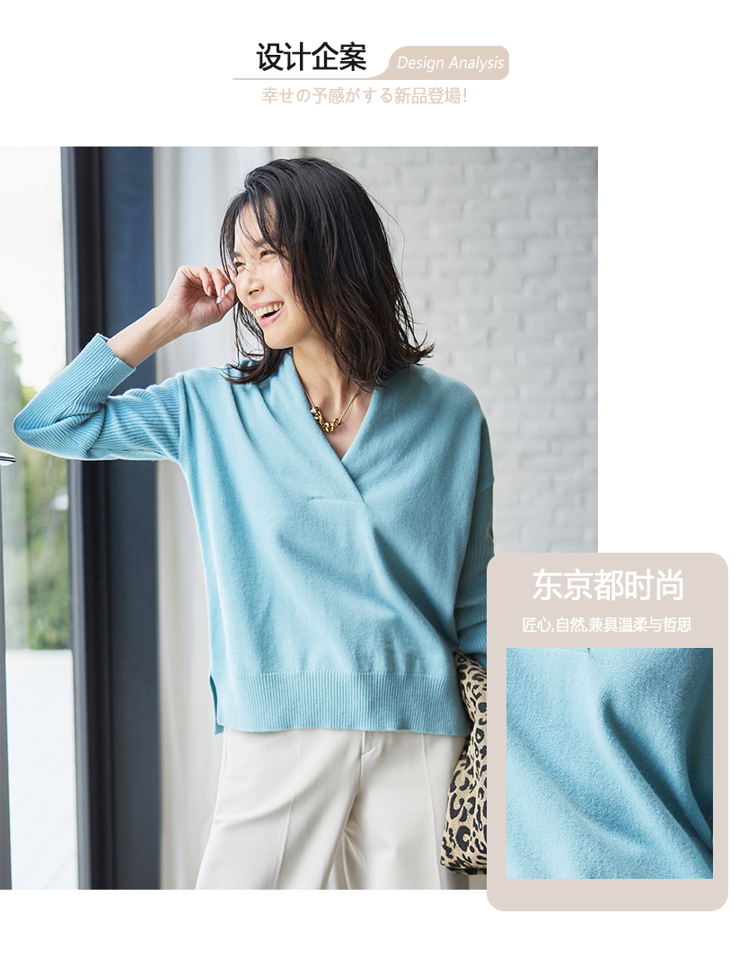 23区日系秋季通勤宽松版纯羊毛V领套头毛衣针织毛衫内搭商场同款