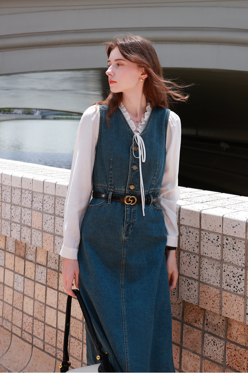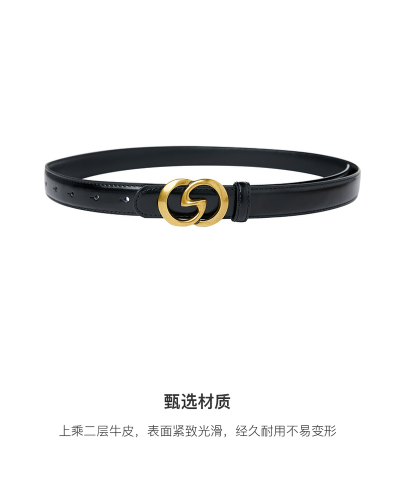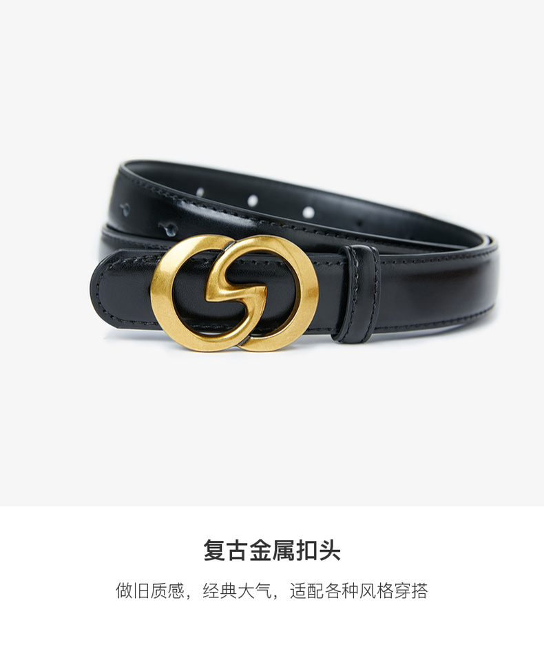 三彩2026新款高级感长款腰带复古金属扣皮带可调节二层牛皮时尚女