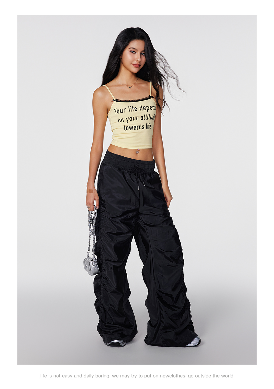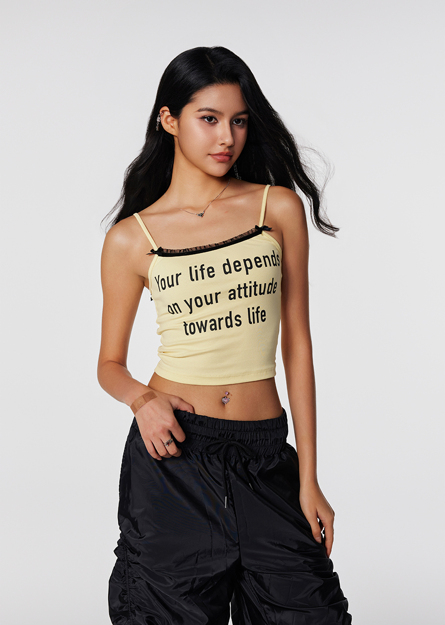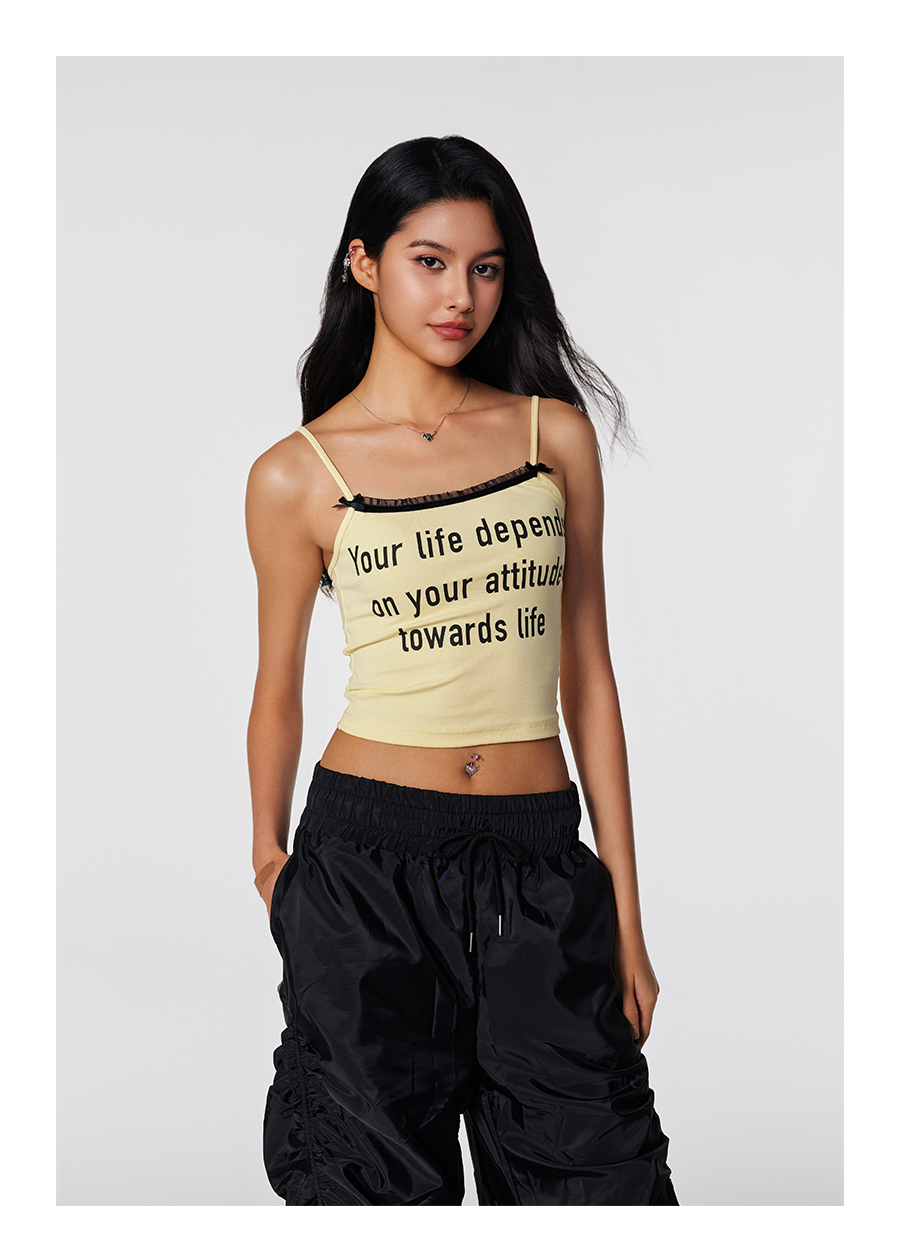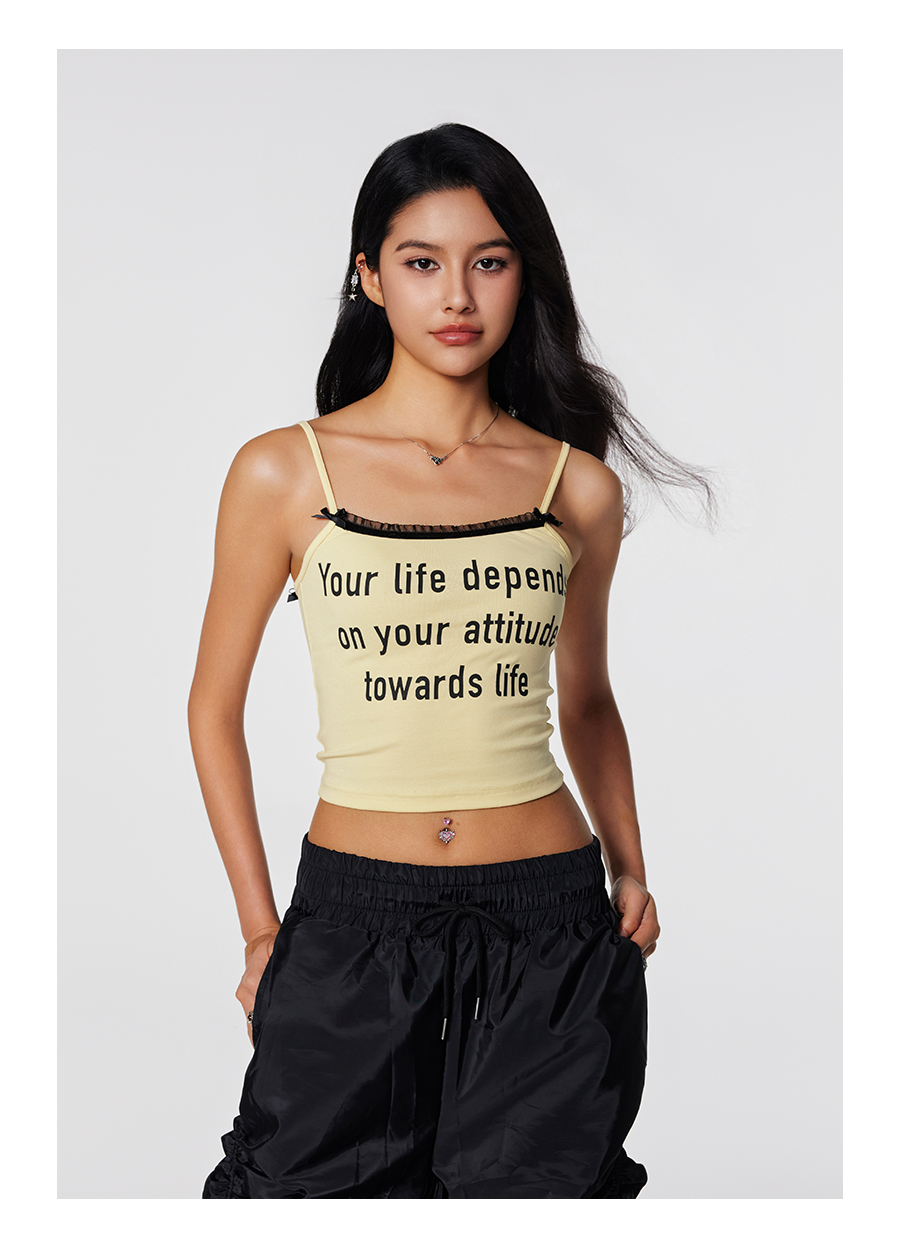 【Achock官方店】潮牌辣妹字母印花蕾丝吊带美式修身显瘦内搭打底