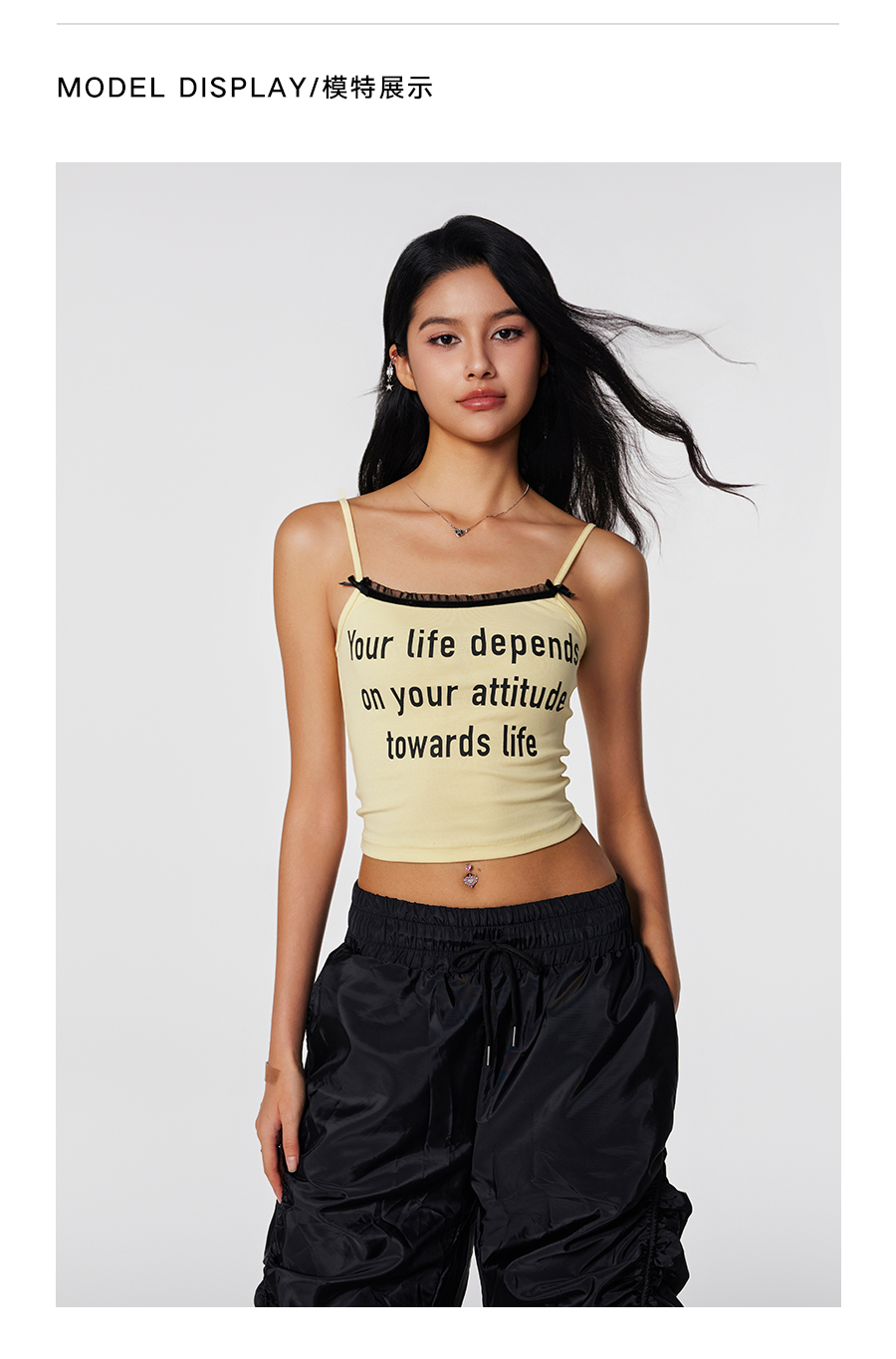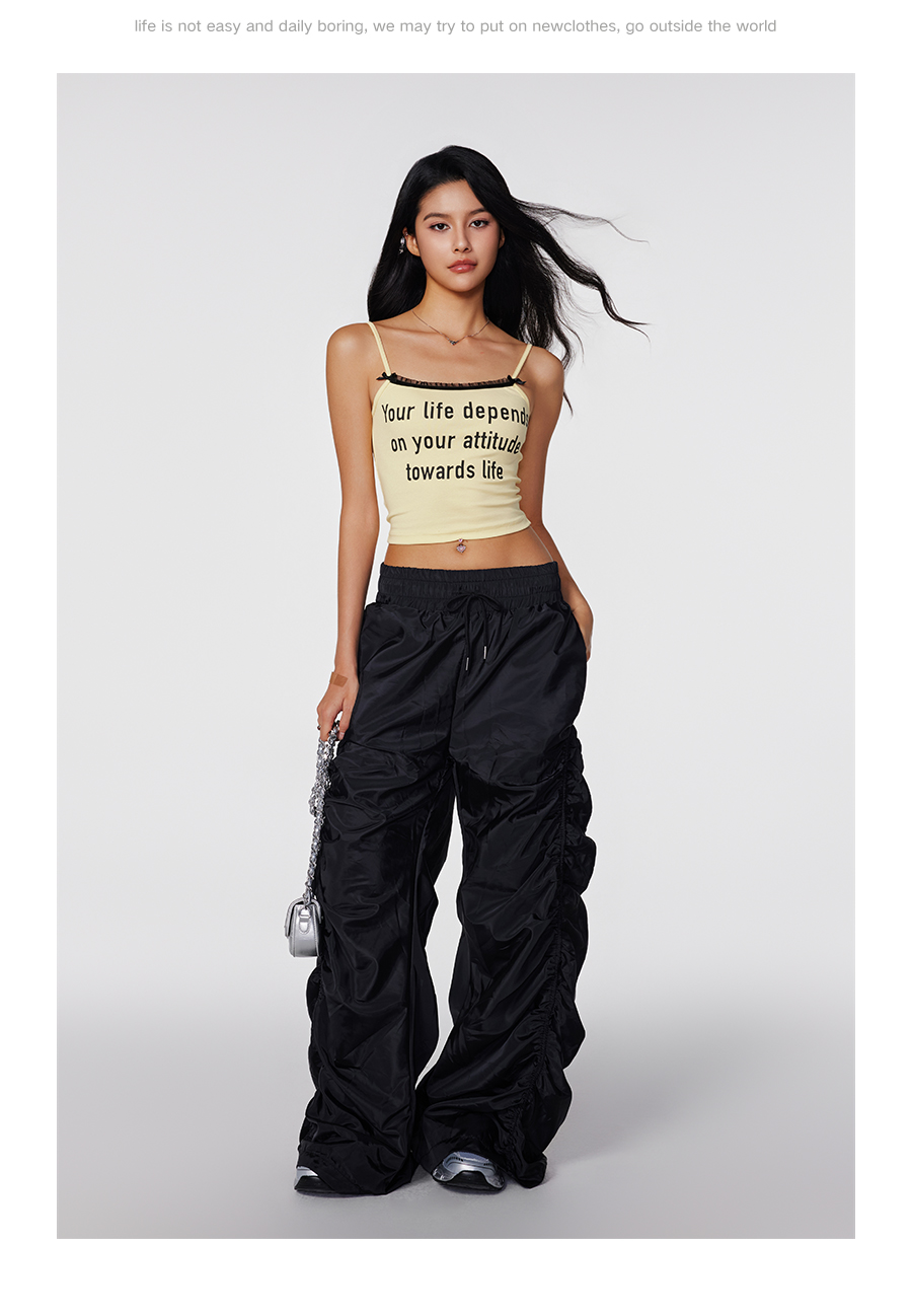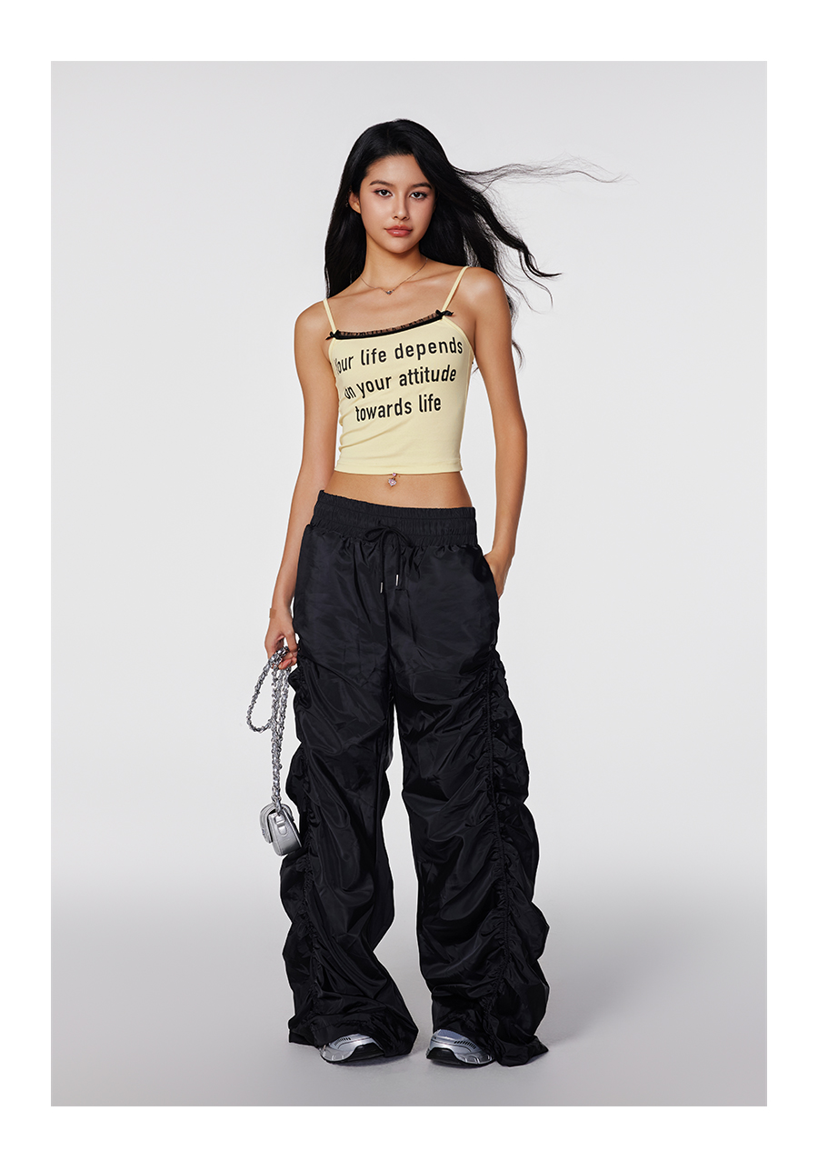 【Achock官方店】潮牌辣妹字母印花蕾丝吊带美式修身显瘦内搭打底