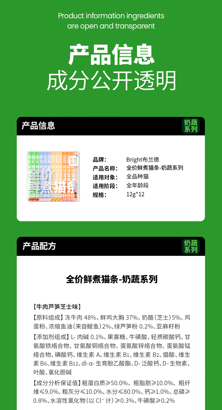 布兰德全价鲜煮猫条奶蔬系列 囤货装160根