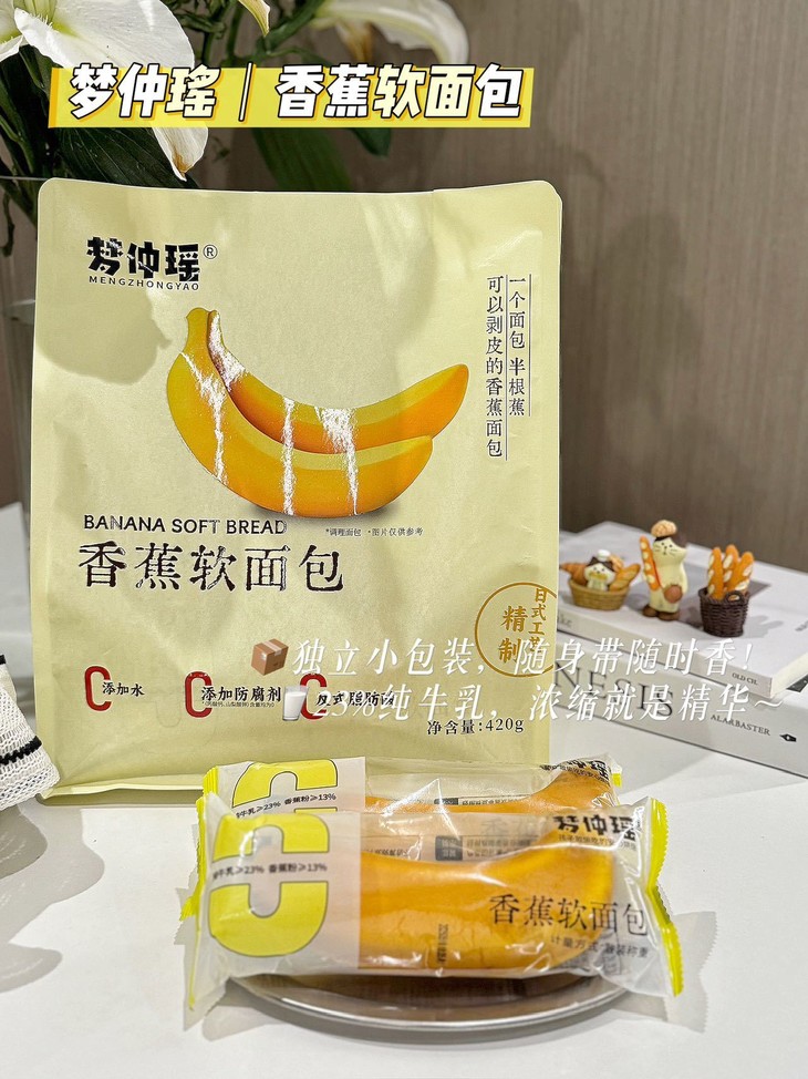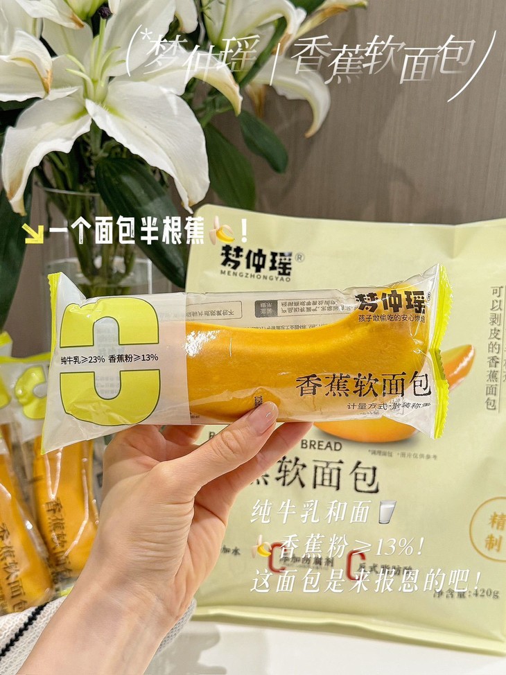 ✅一个面包,半根香蕉,可以剥皮的香蕉面包 ✅生产过程中不添加一滴水,纯牛乳和面,添加纯牛乳≥23% ✅选用新鲜香蕉打磨成粉,添加量≥13% ✅采用天然乳清发酵物,真正的零添加,不含任何工业防腐剂 ✅全新日式风格包装,更大气,更时尚,更符合大家的审美 0添加工业防腐剂,保质期还能保持90天的原因: 1️⃣日式进口千万级设备 引进的日式生产线,在领先于国内生产线工艺的情况下,可以添加至百分之40以上的牛乳含量,大大增加了产品的柔软性和风味; 2️⃣天然生物科 整体制作过程中,由工业化学防腐添加剂改为天然生物发酵物,通过调节产品的酸碱度、降低微生物细菌; 3️⃣出厂前三道灭菌工艺 出厂过程中最后一道工序由臭氧和紫光线灭菌、随后设备添加脱氧剂、抽除内包膜氧含量防止微生物滋生。 卷王卷的不仅仅是价格和品质‼️ 口味也是卷到极致‼️ 只要吃上一口梦仲瑶零添加系列的面包,别的面包就不会再想吃了