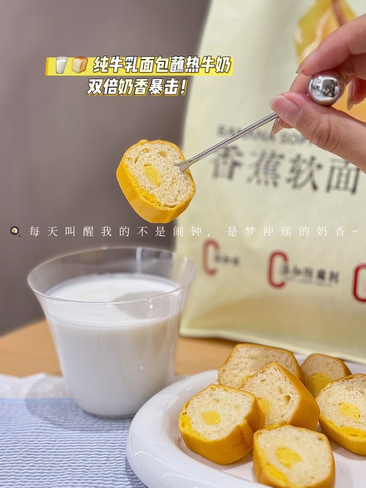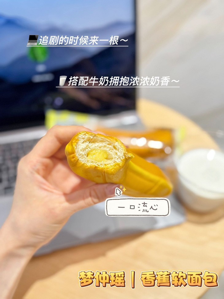 ✨三重暴击口感: 1️⃣第一口:绵软的像云朵(日式工艺的温柔) 2️⃣第二口:香蕉味突然"炸"开🍌(真实果香!) 3️⃣第三口:奶香余韵在舌尖打转🥛(牛奶控狂喜) 👀 隐藏吃法:微波3秒→爆浆流心!冷藏吃→冰淇淋口感!