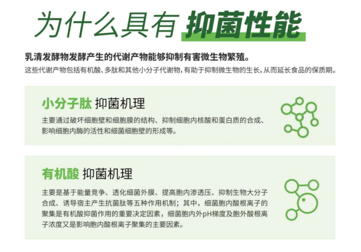 选择天然乳清发酵物的原因: 传统的防腐添加剂都是化学添加剂,对人体不友好,容易造成消化系统堵塞 天然乳清发酵物是天然的生物调节剂,调节产品酸碱度,以酸抑菌 而且含有丰富的蛋白质、脂肪、维生素、矿物质等营养成分 食用可以补充身体所需营养,有利于身体健康