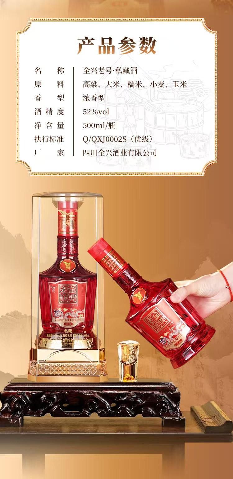 【清仓好价】2024年 全兴老号 私藏 52度 浓香型白酒 500ml*6瓶整箱