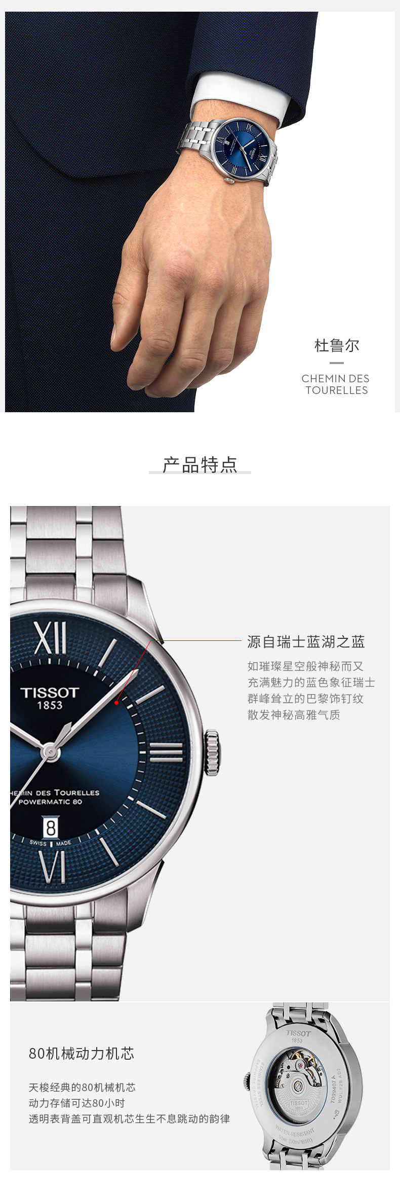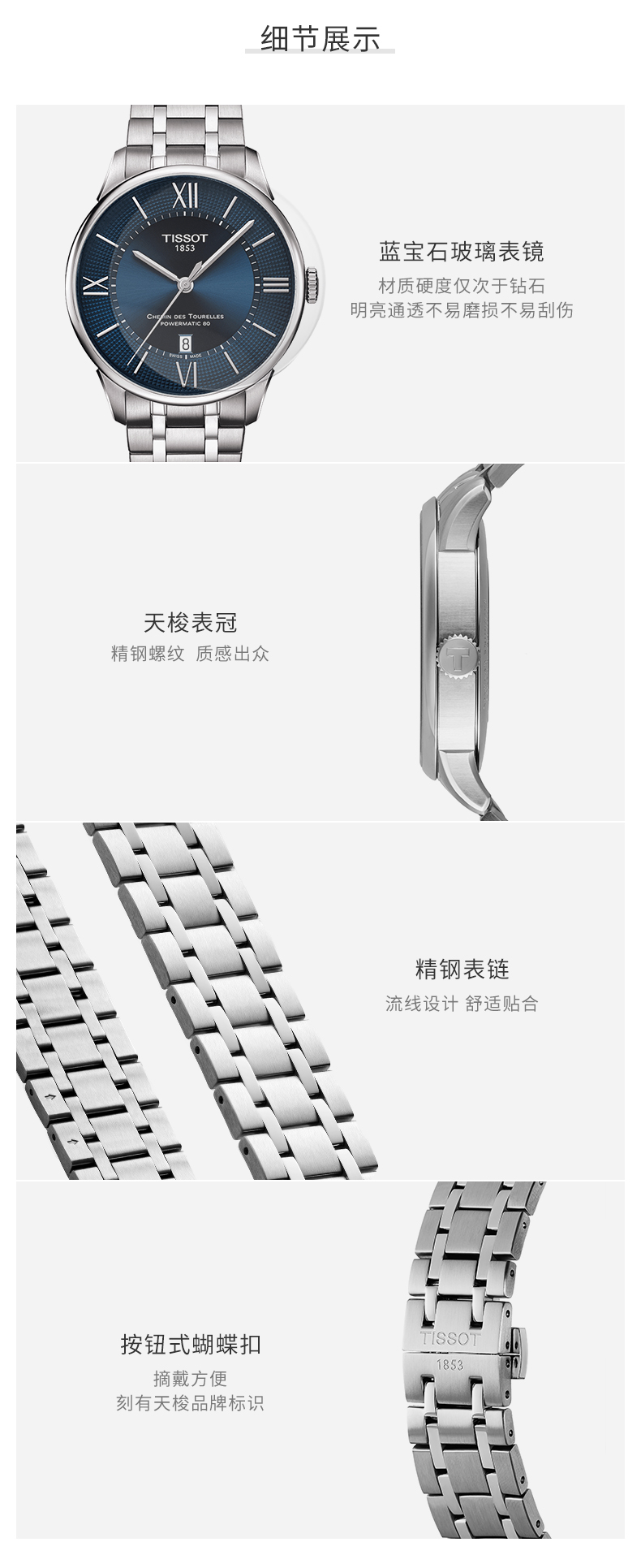 天梭(TISSOT)杜鲁尔系列钢带机械男表T099.407.11.048.00