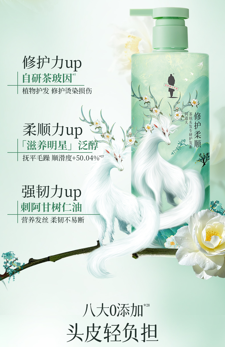 阿道夫茶麸冰护理专研无硅油洗发水(祛油止痒)350ml-山海经
