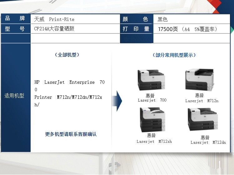 天威 CF214A 硒鼓 适用惠普HP 700 Printer M712n M712dn M712xh M725打印机大容量墨粉