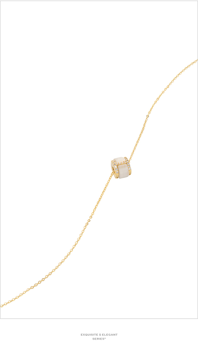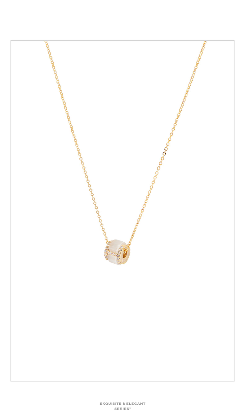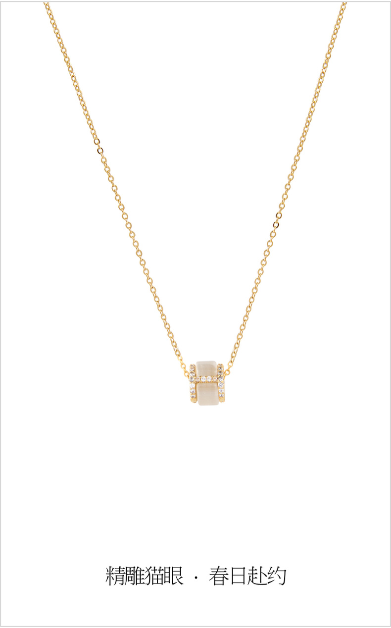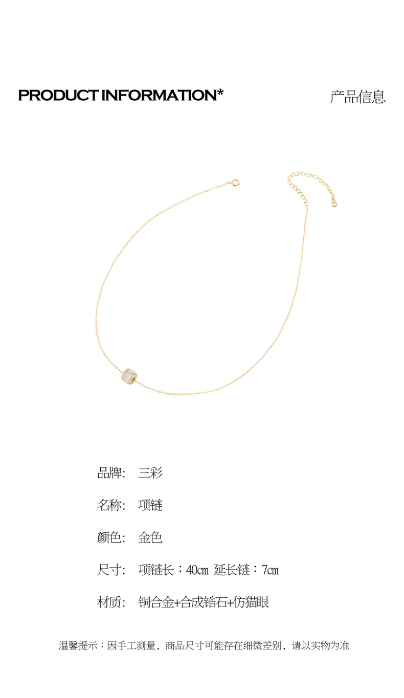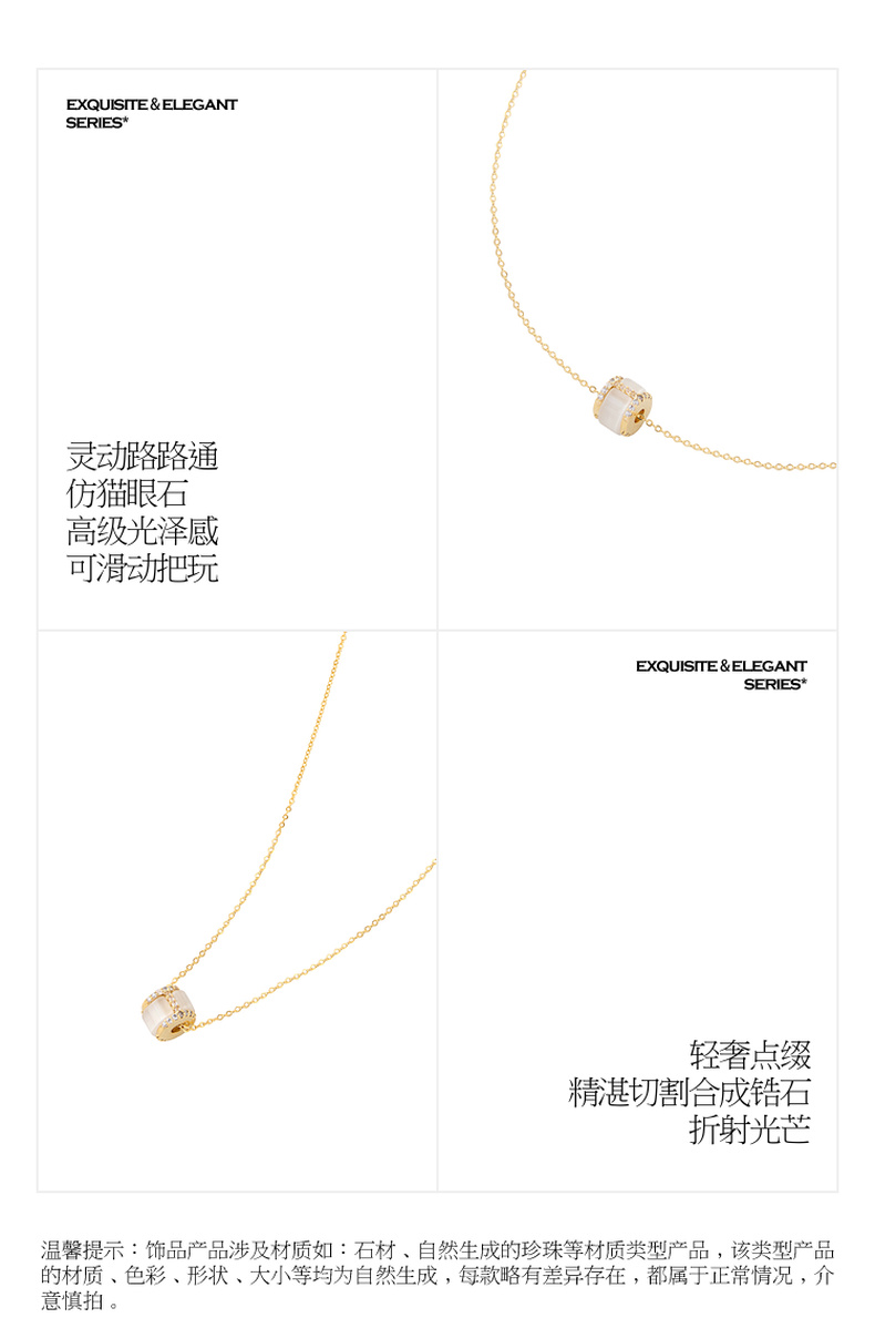 三彩2026新款仿猫眼石路路通吊坠细项链韩系极简通勤可滑动锁骨女