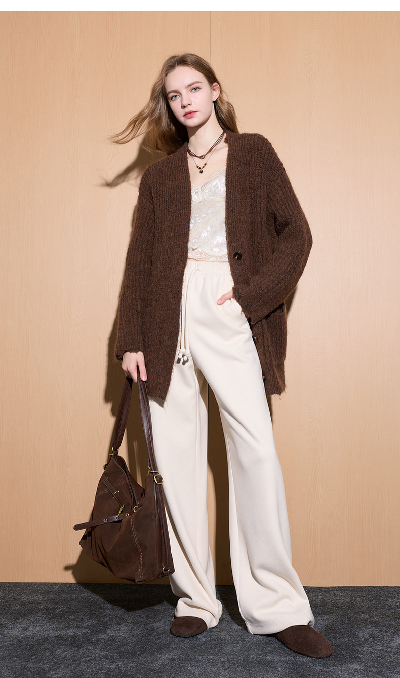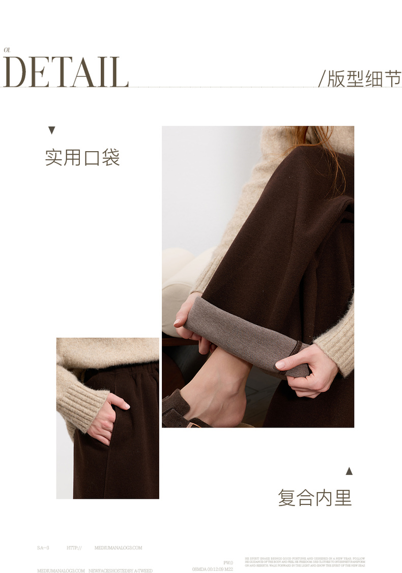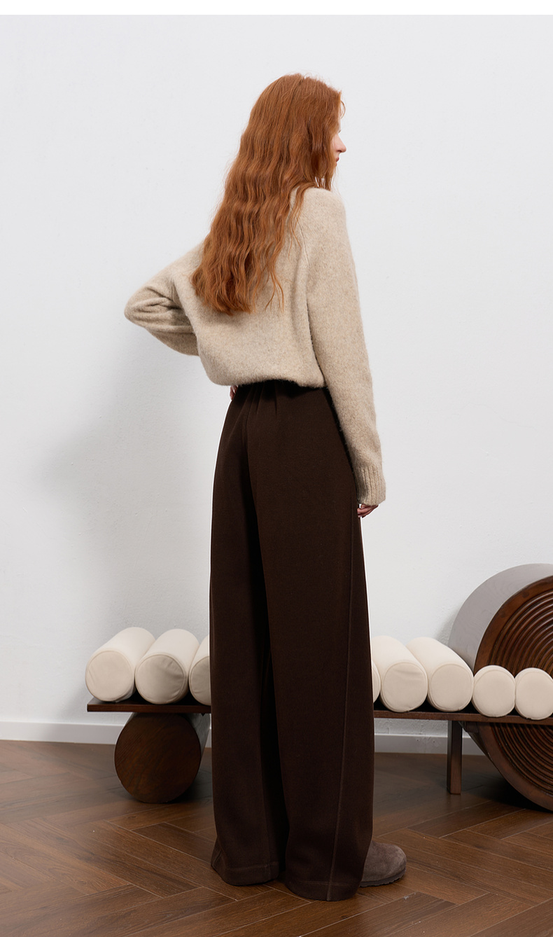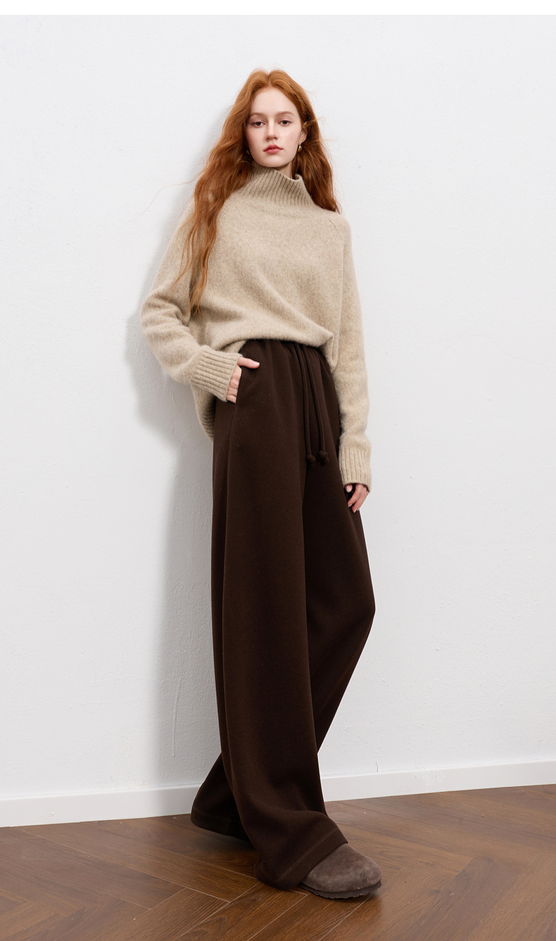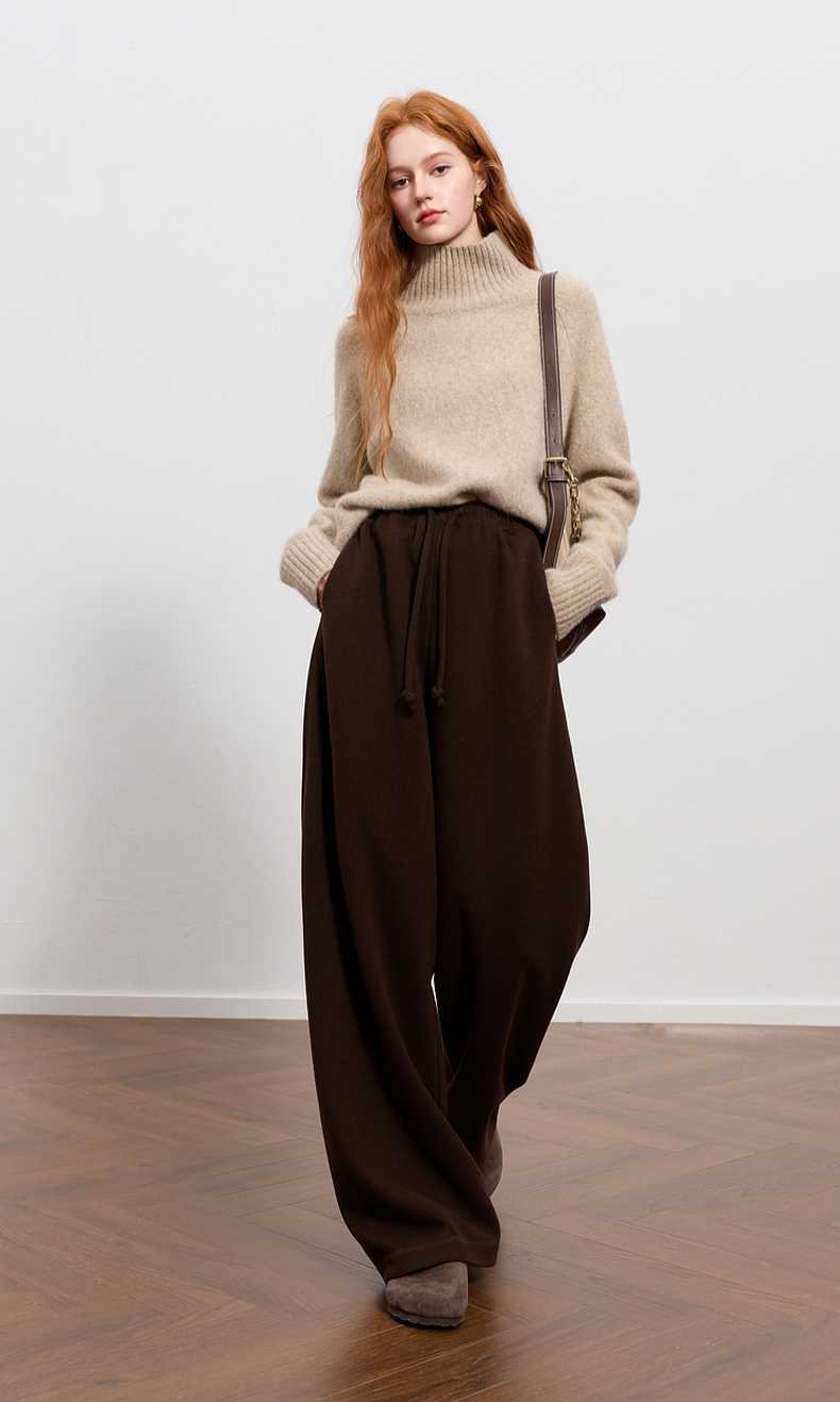三彩2025冬季新款慵懒休闲长裤松紧高腰宽松阔腿裤垂感显瘦M