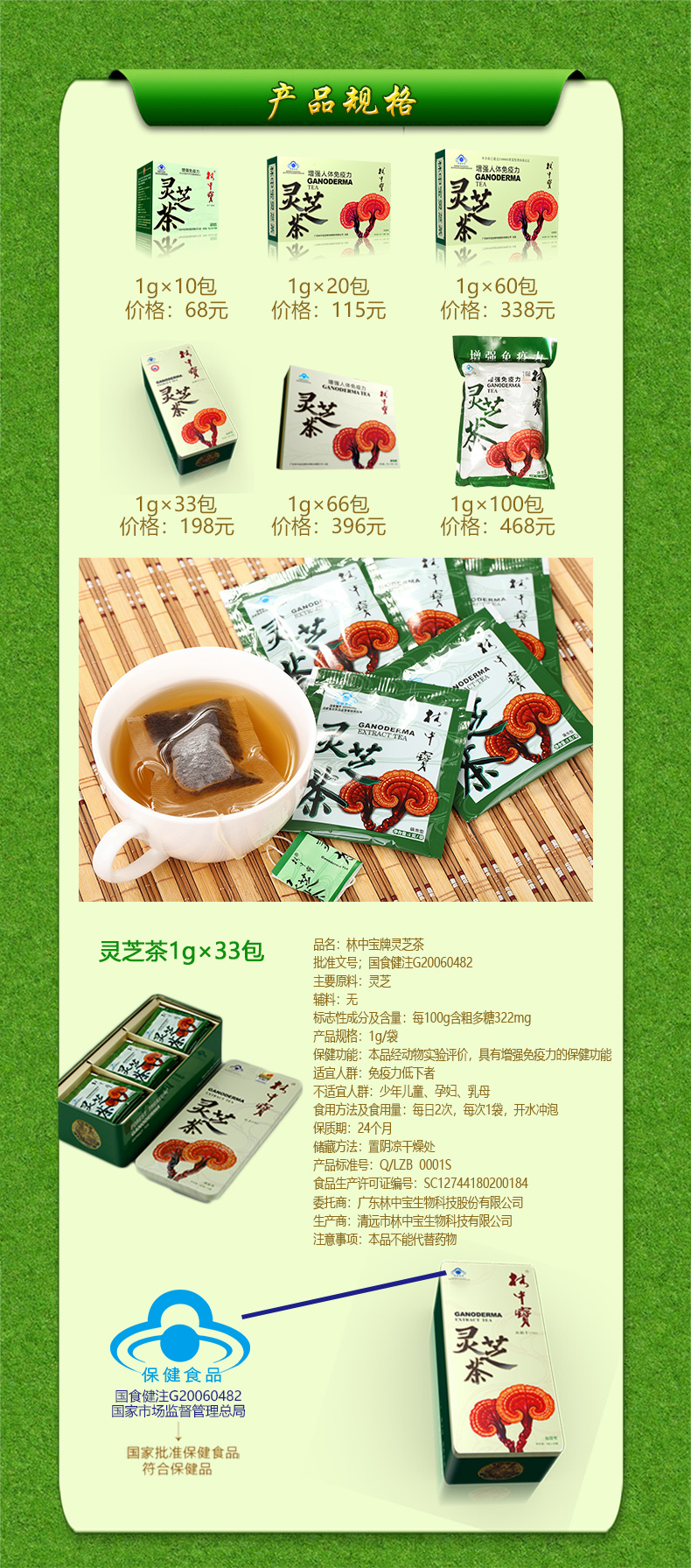 【林中宝】灵芝茶铁盒礼品装1克*36袋*2盒