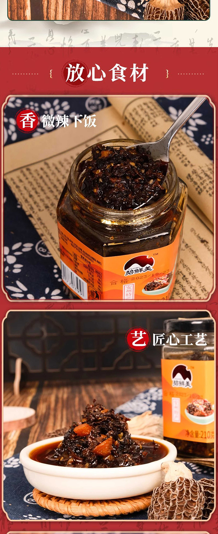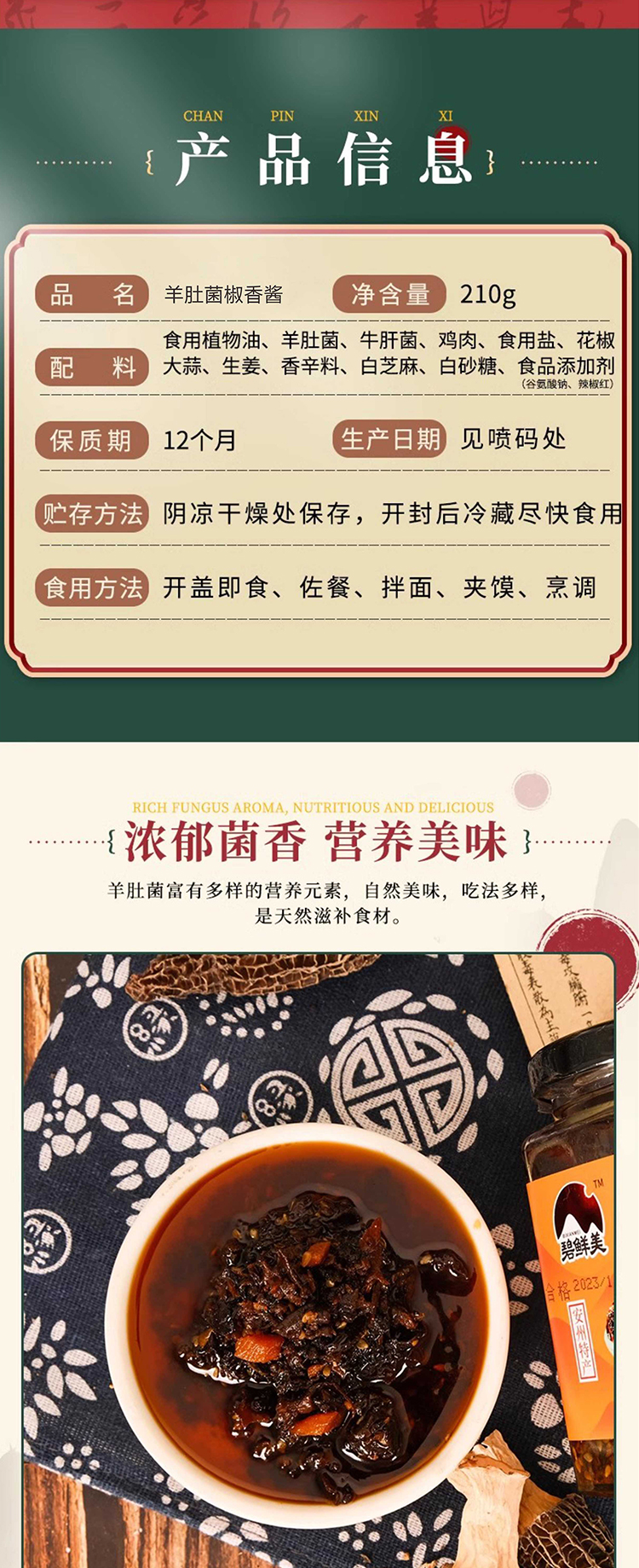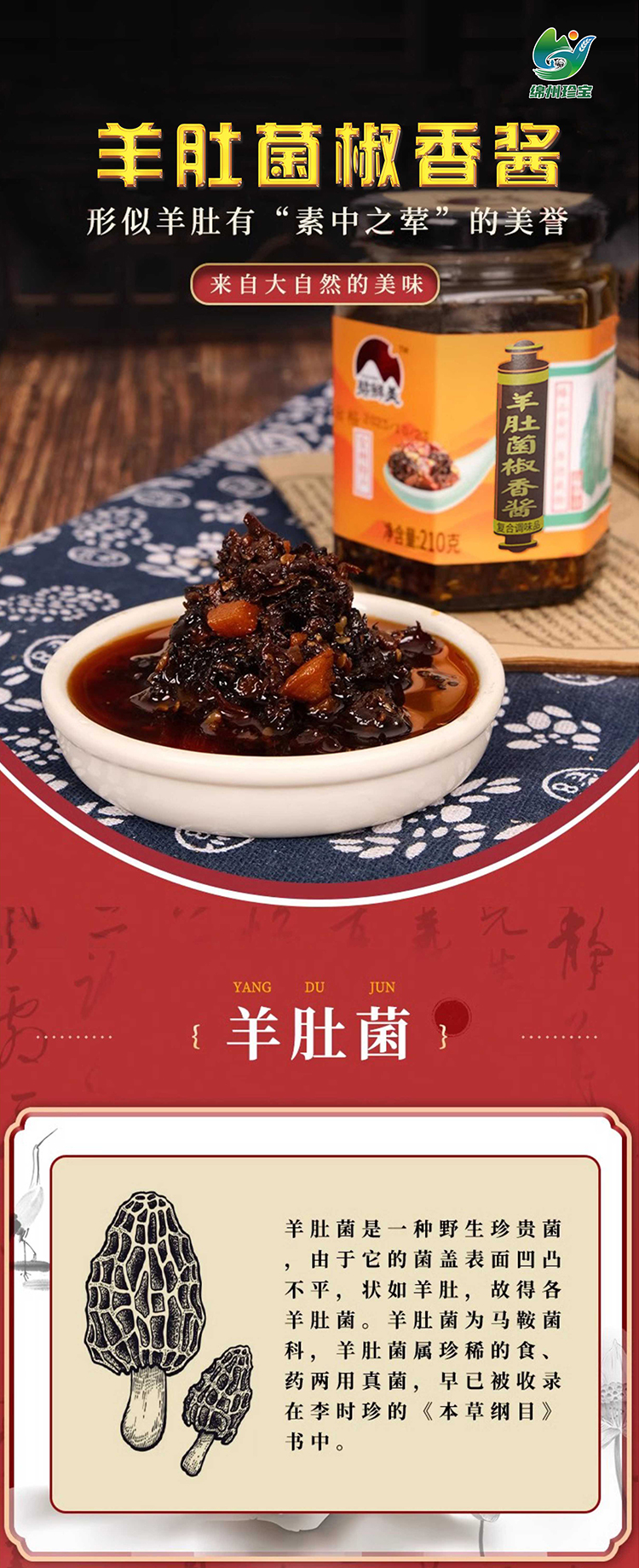 【碧鲜美】四川特产 羊肚菌酱瓶装 绵阳特色下饭拌面调味品香菇香辣酱