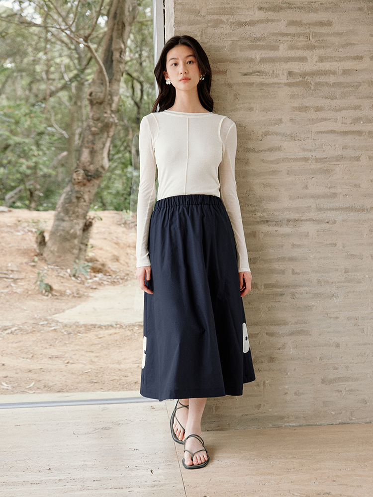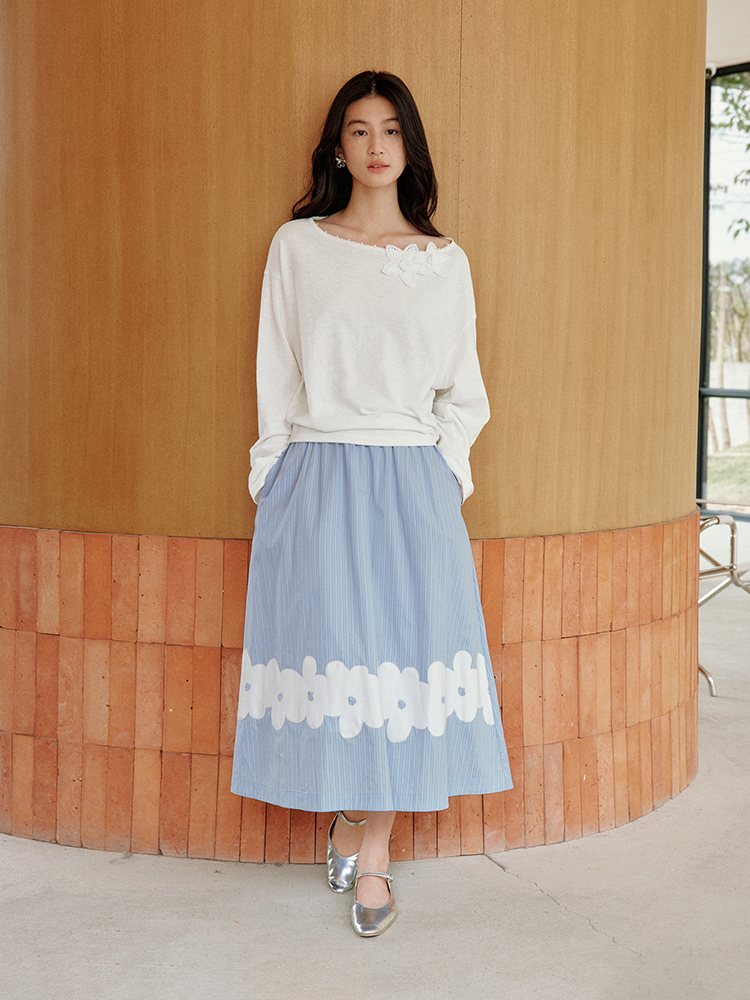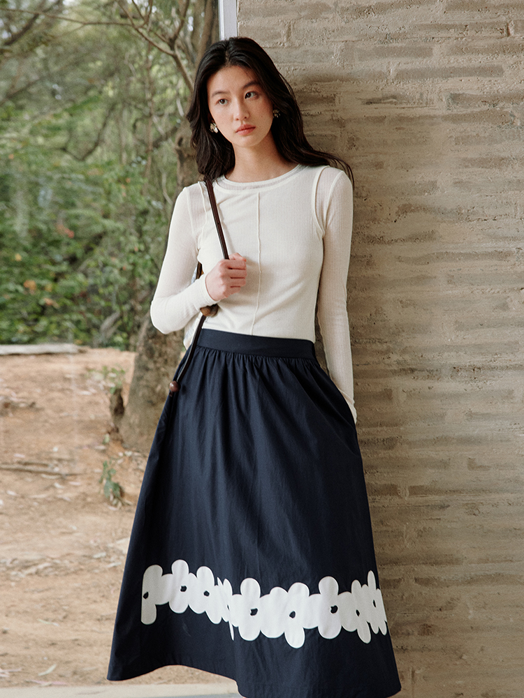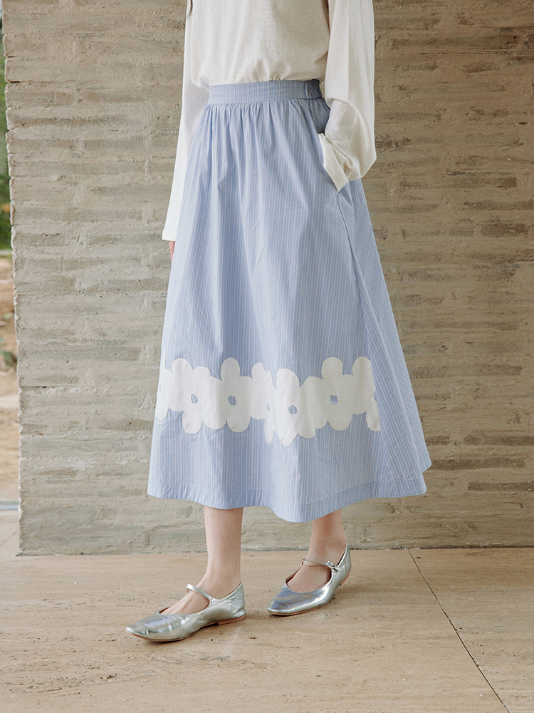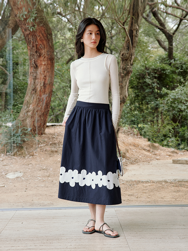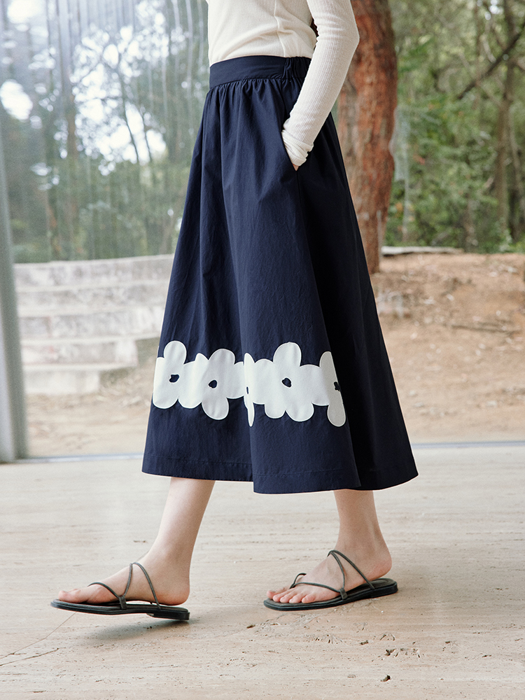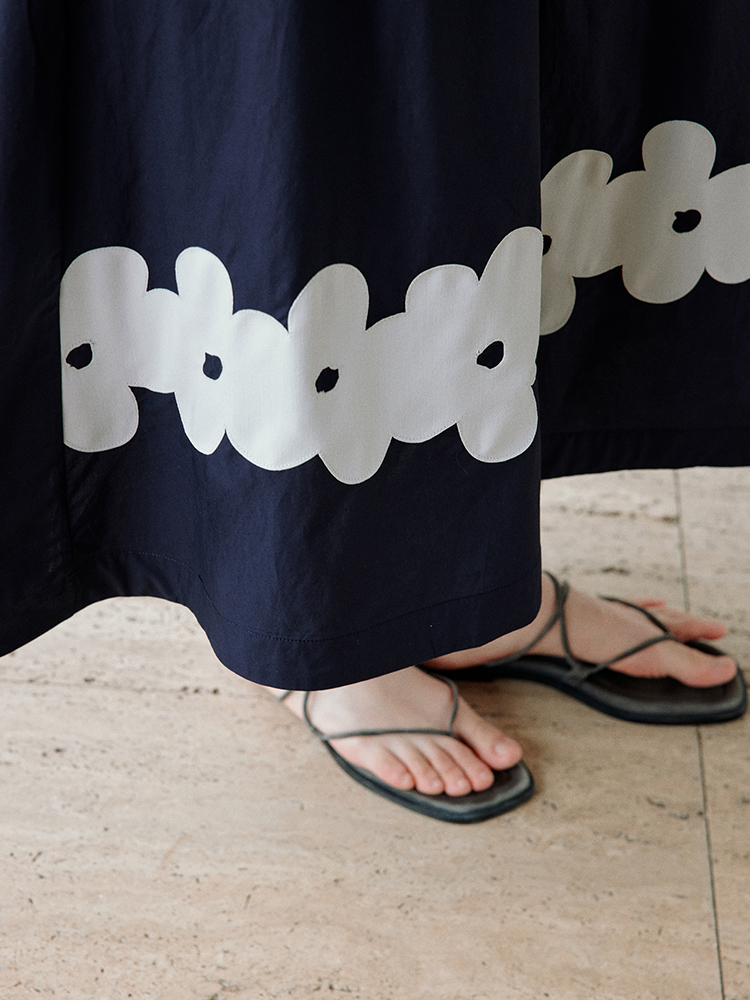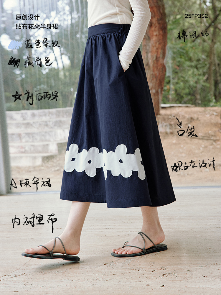 ForPoem 现货 25/SS原创设计前后两穿贴布花朵棉质A摆半身裙