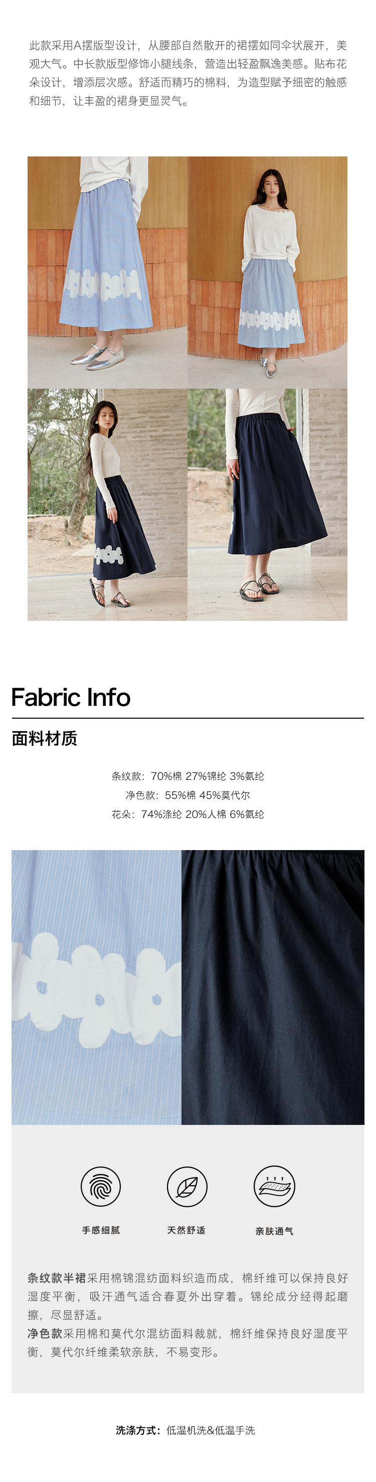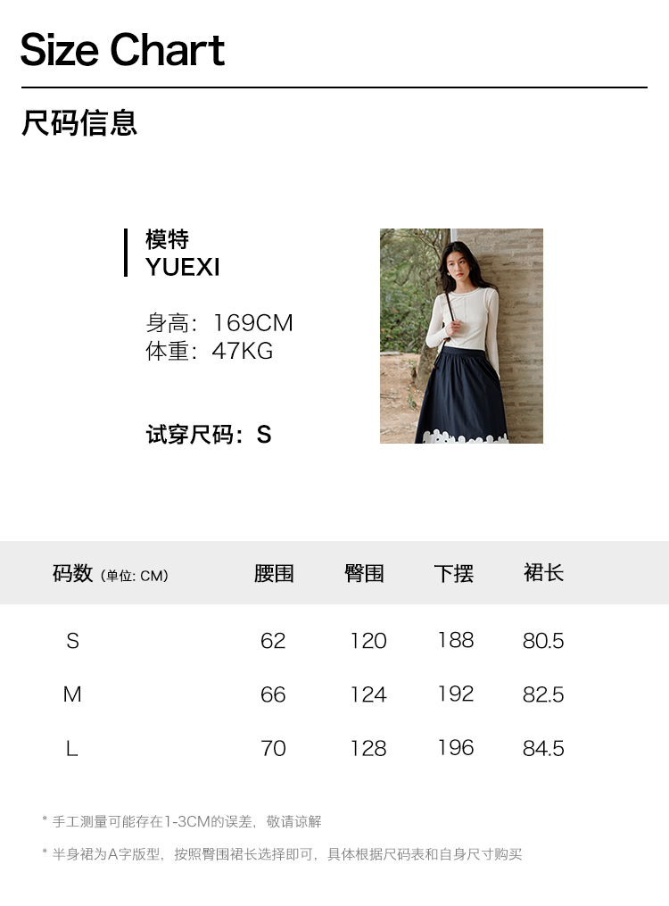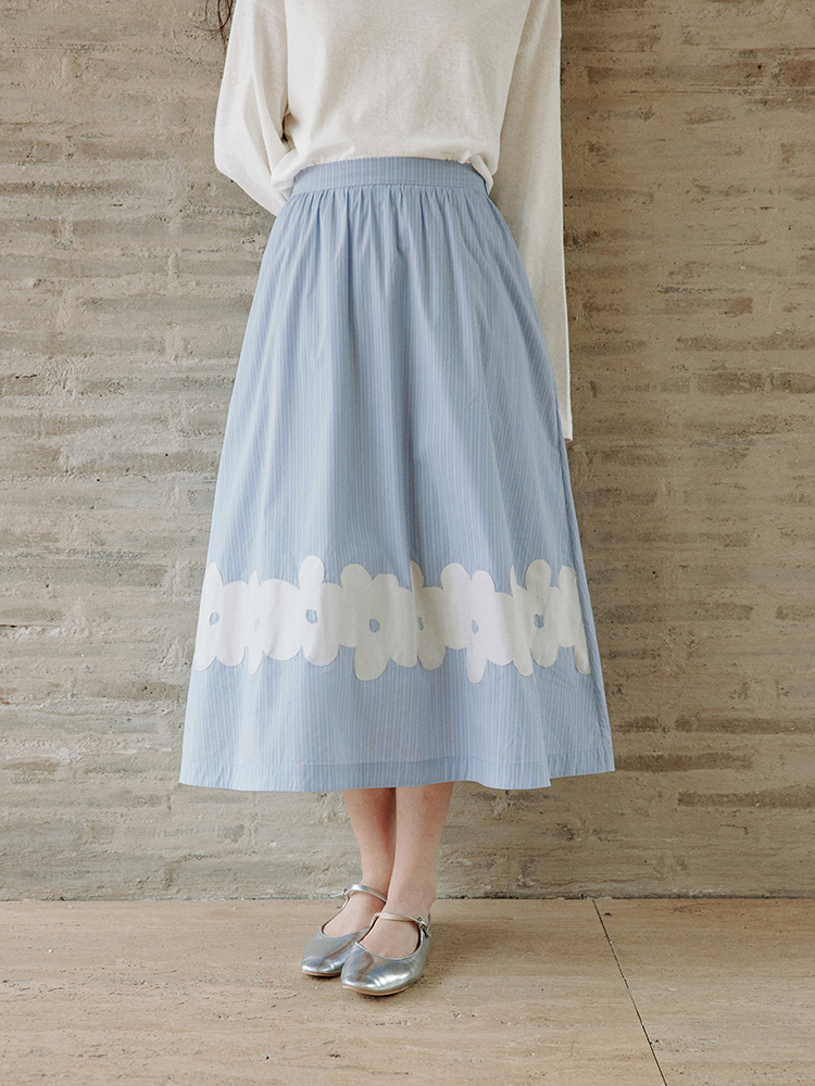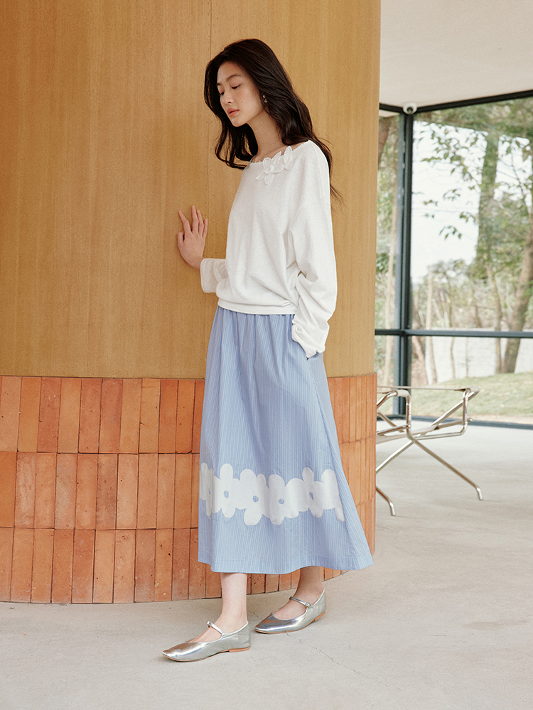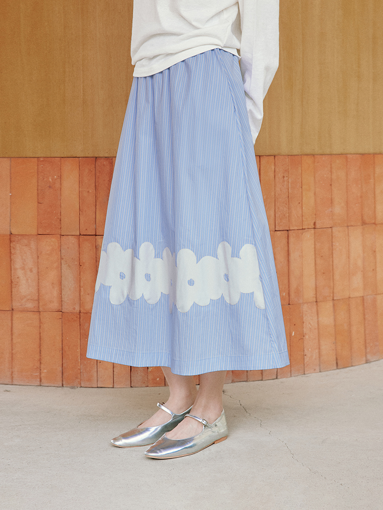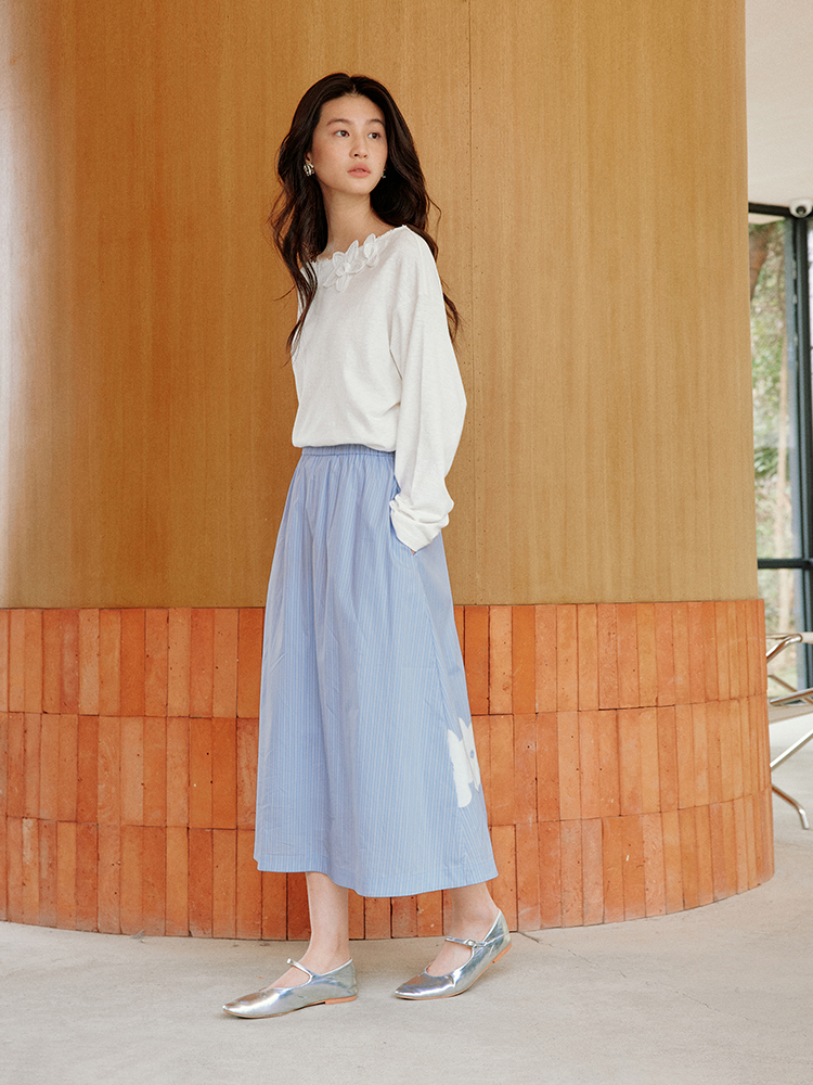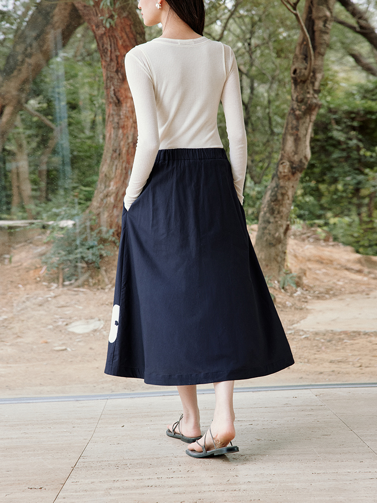 ForPoem 现货 25/SS原创设计前后两穿贴布花朵棉质A摆半身裙