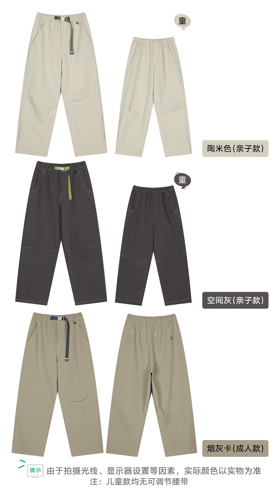 【品牌特惠】ACMEITEM爱棵米 户外亲子防泼水明线直筒长裤加绒宽松裤子男女GAG3020528G/GAG3020561G