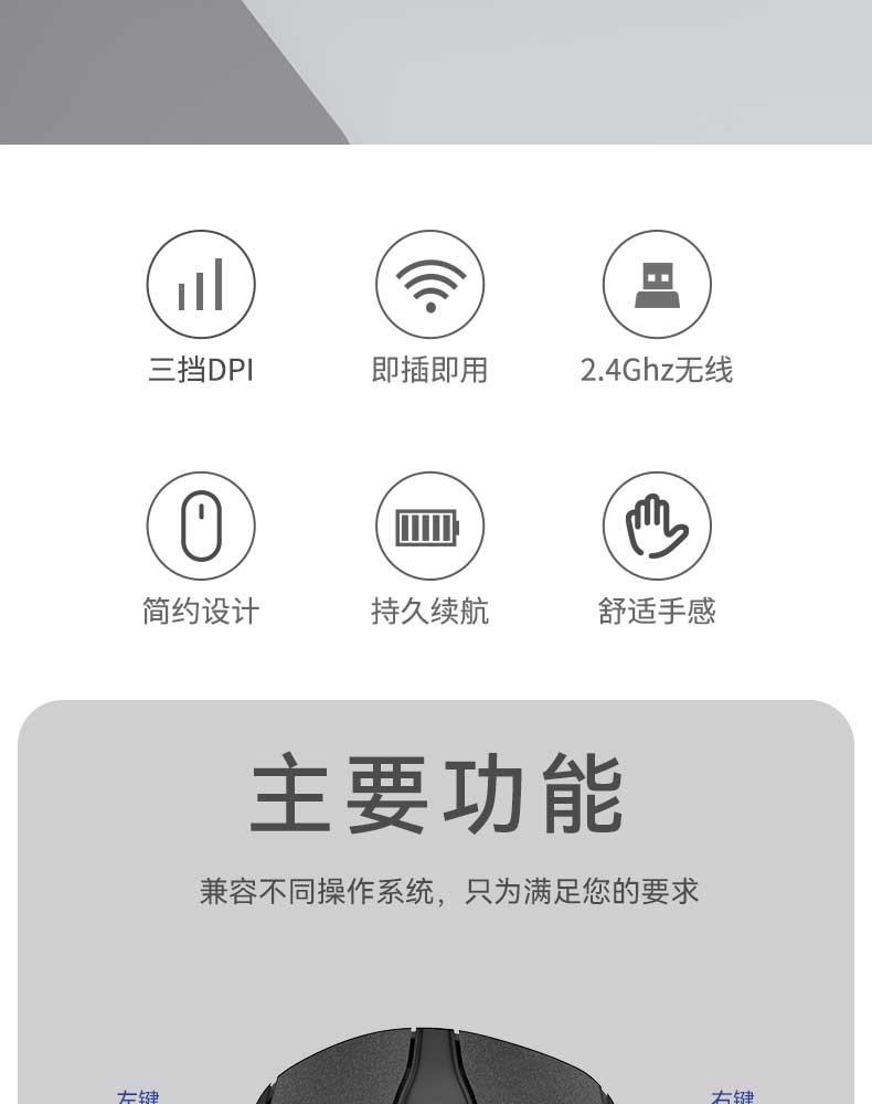 攀升MP-P03 USB办公无线鼠标 便携舒适可爱迷你