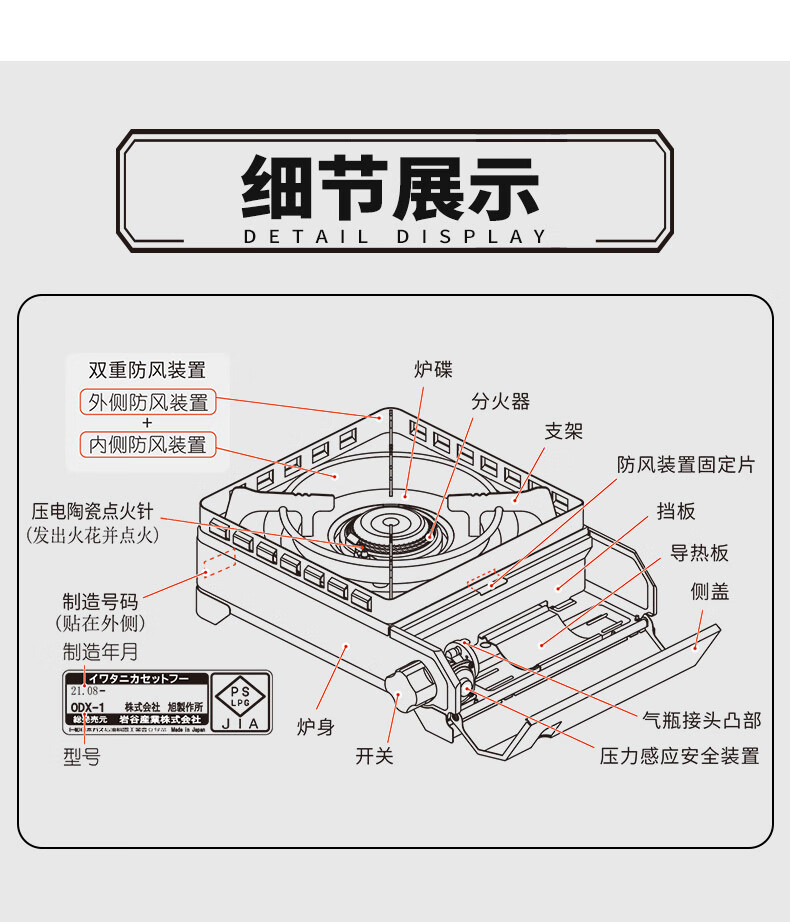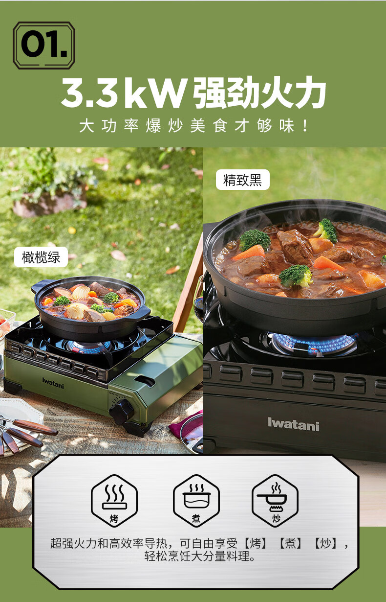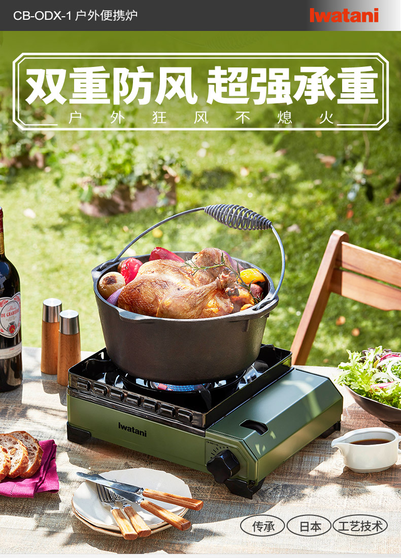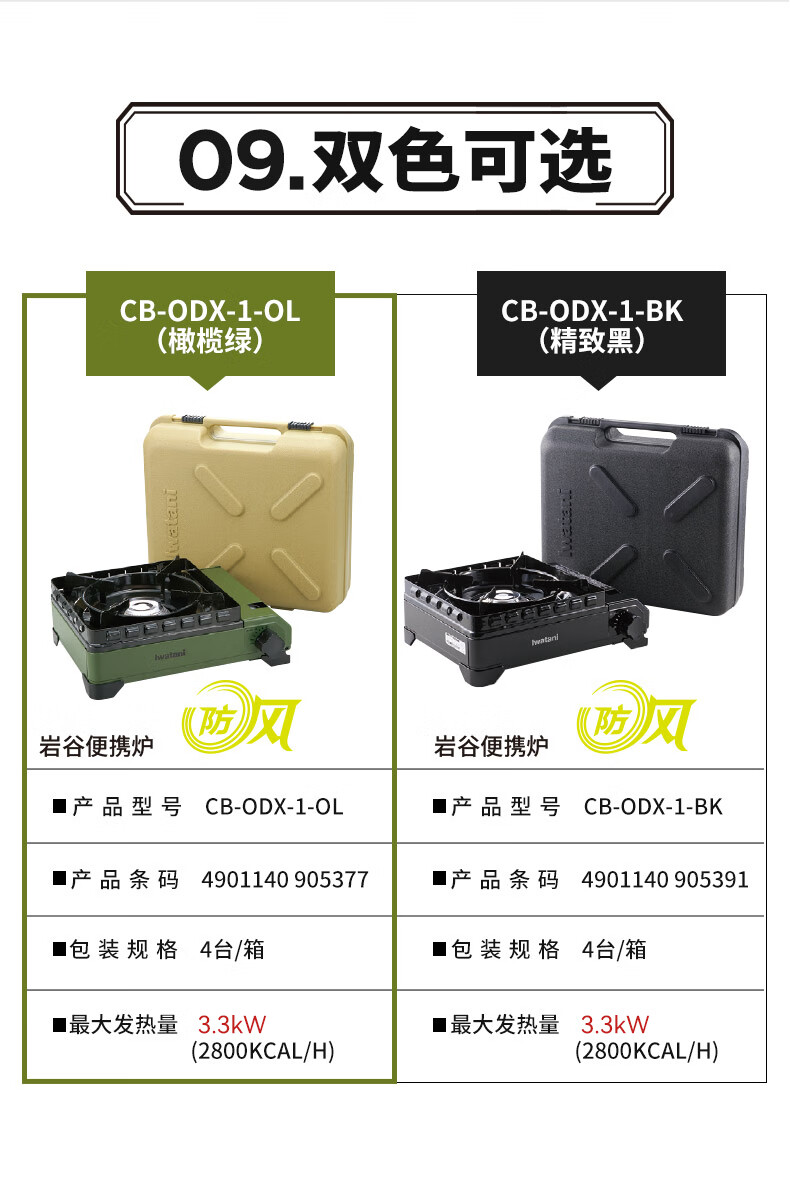 岩谷(Iwatani)进口户外双重防风炉便携卡式炉3.3kw露营炉具黑武士CB-ODX-1-OL(橄榄绿)