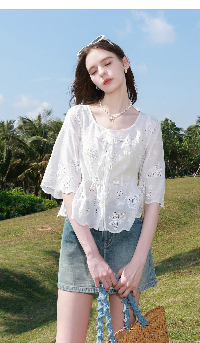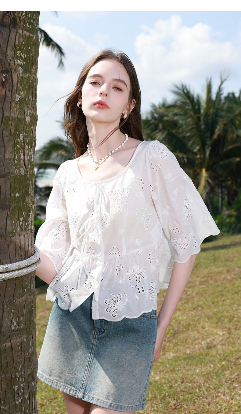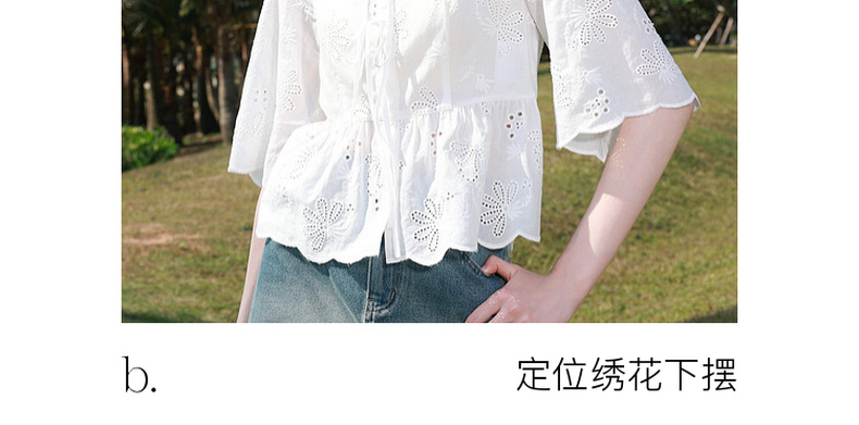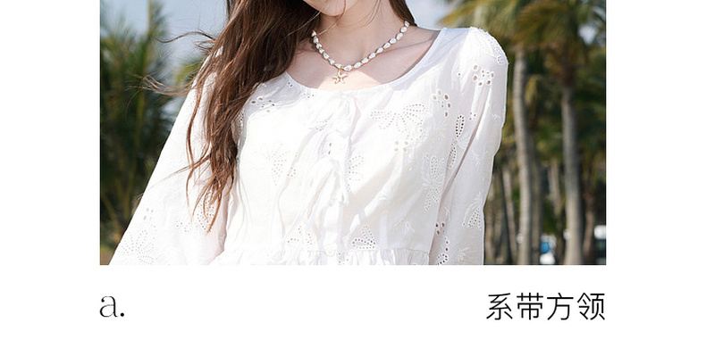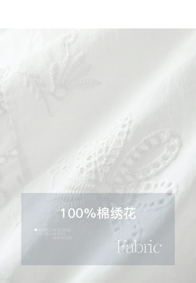 【100棉】三彩2026夏季新款方领绣花A字娃娃衫七分袖衬衫上衣M