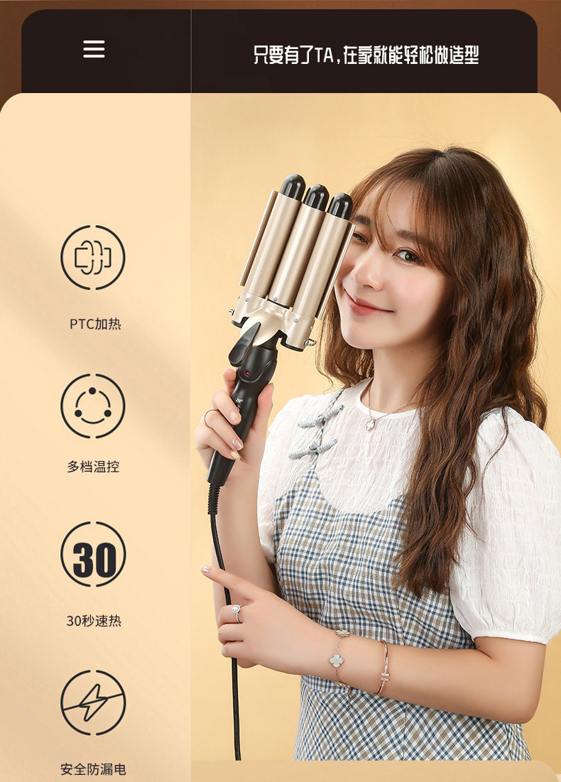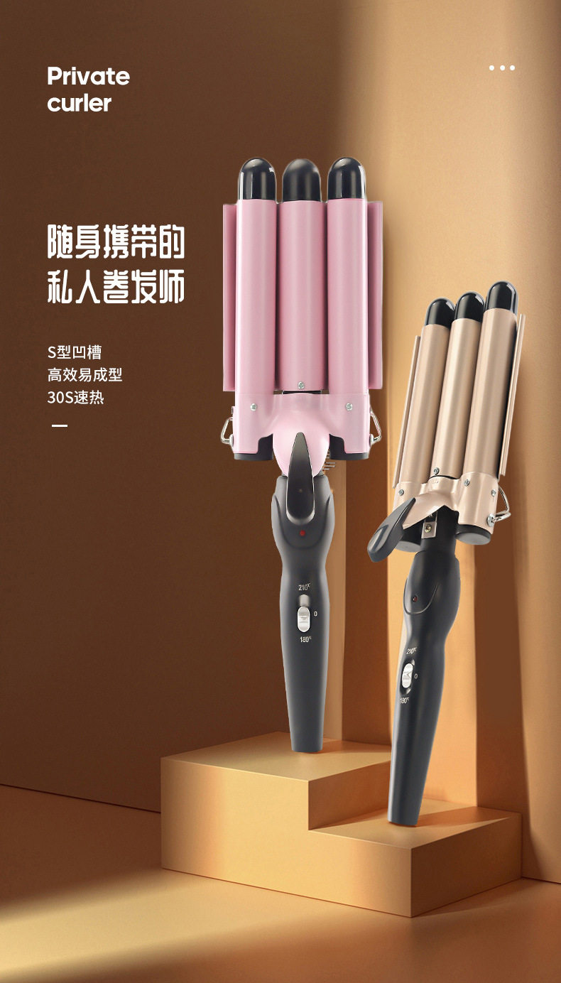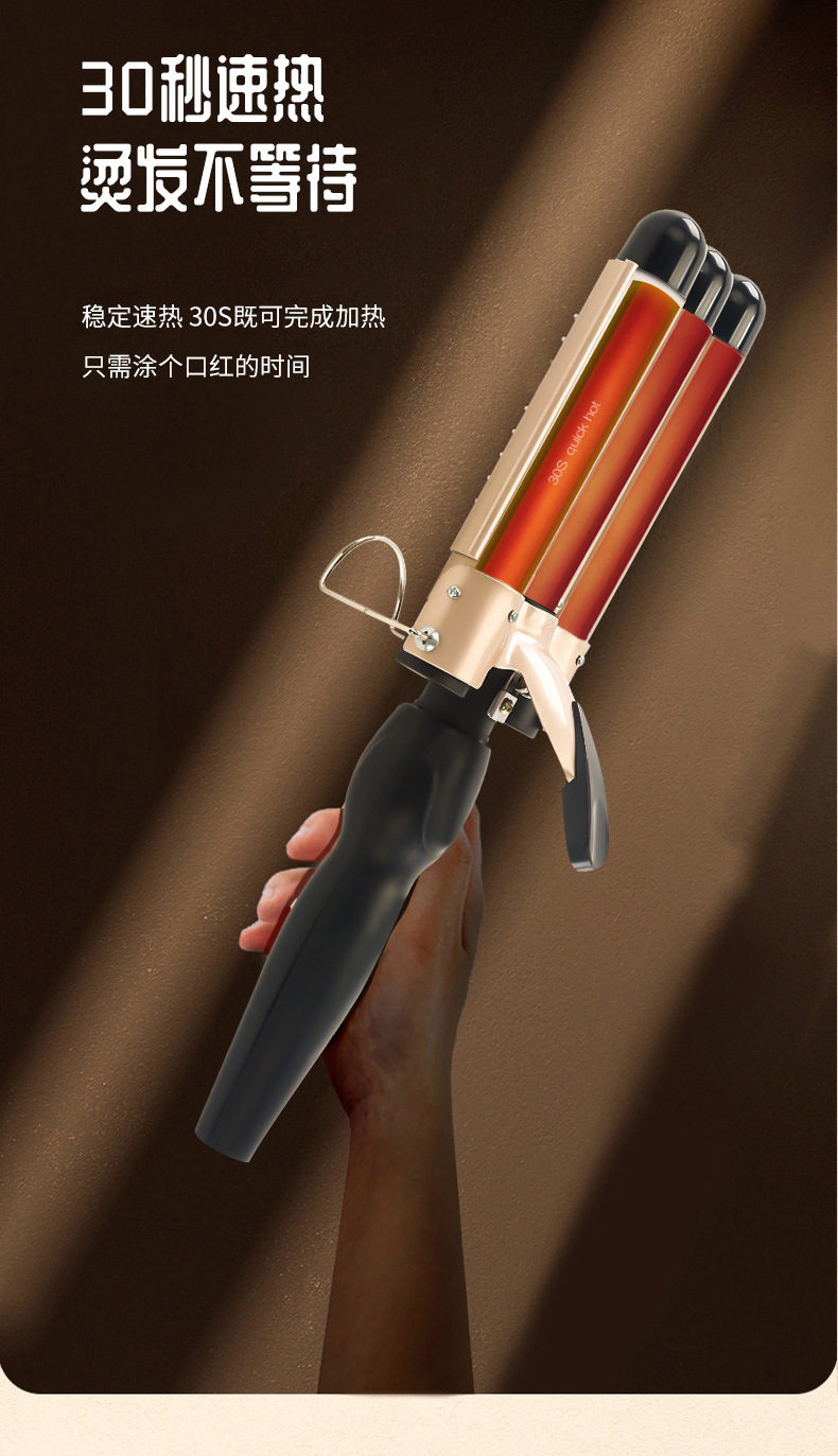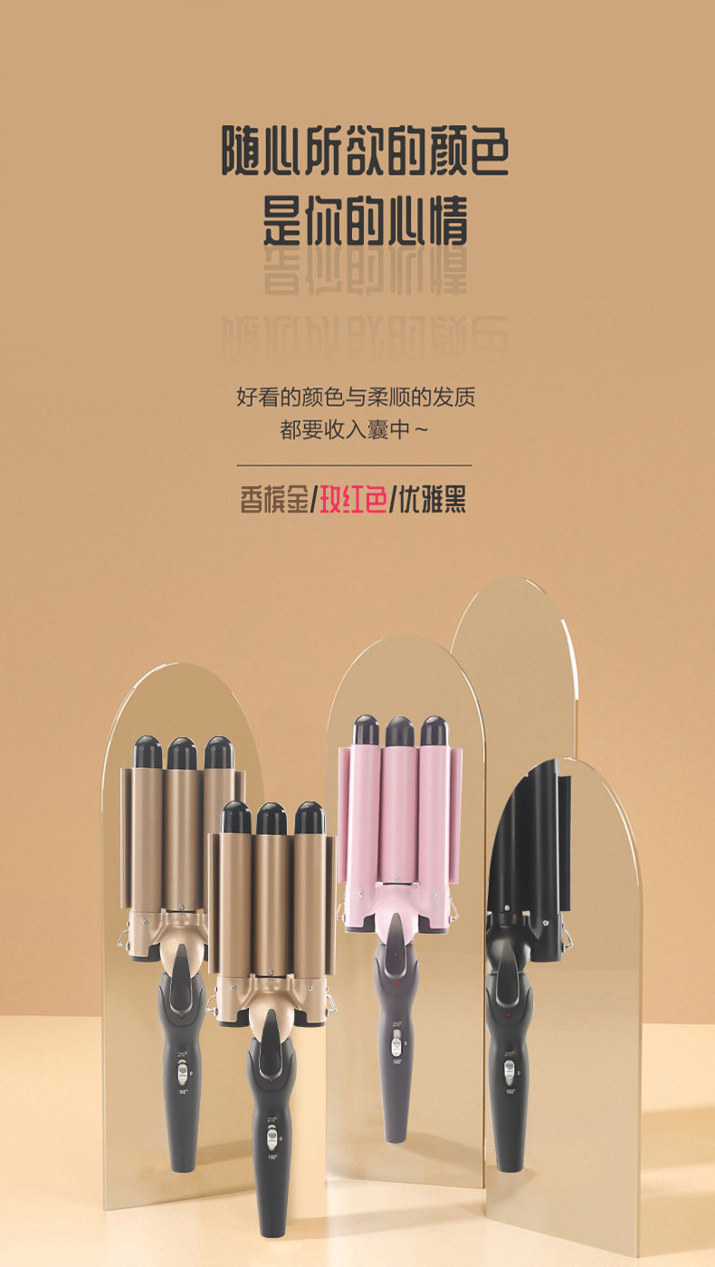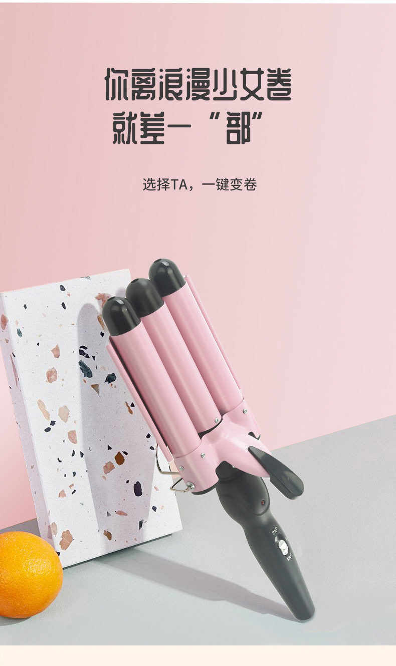 韩国 卷发棒 蛋卷棒 泡面头韩式烫发夹板25mm中卷三管卷发器 (配转换头)