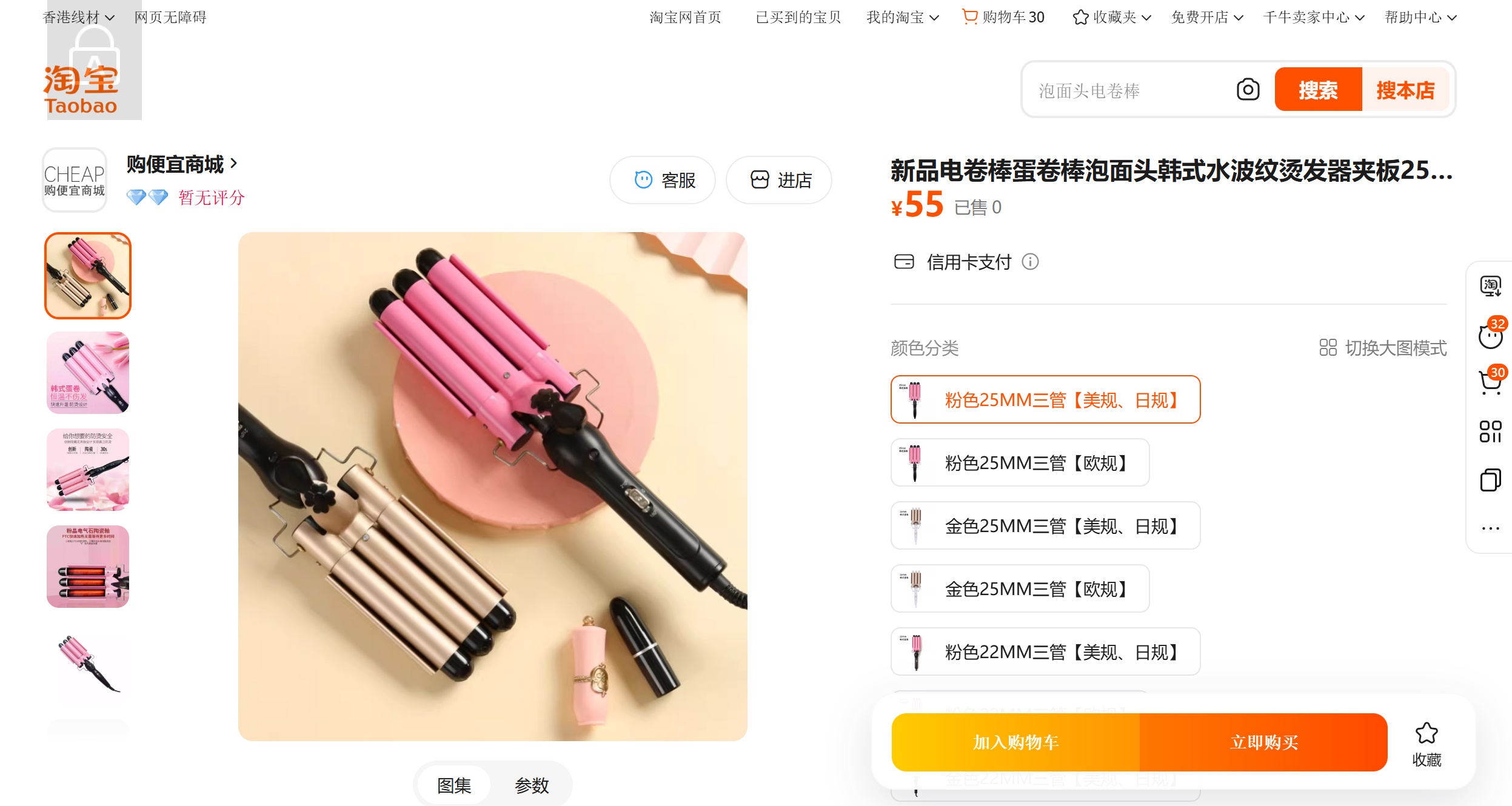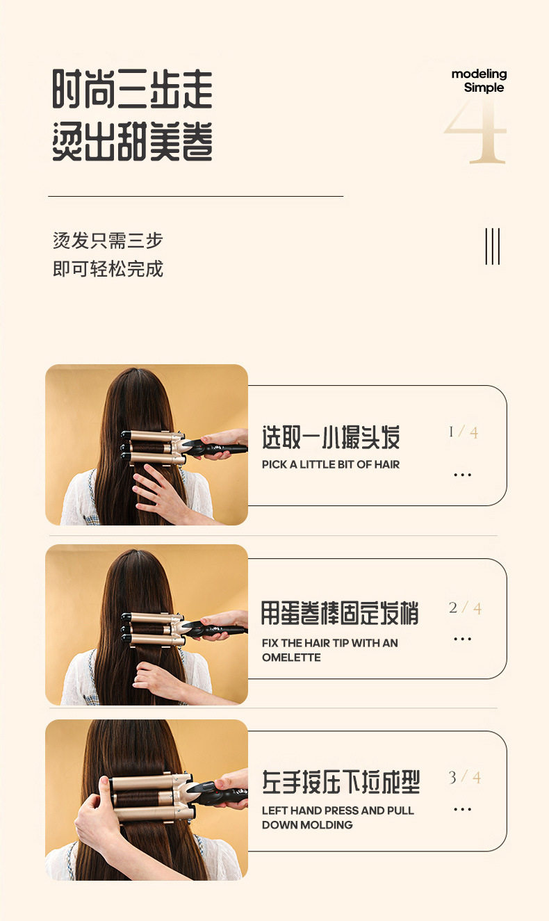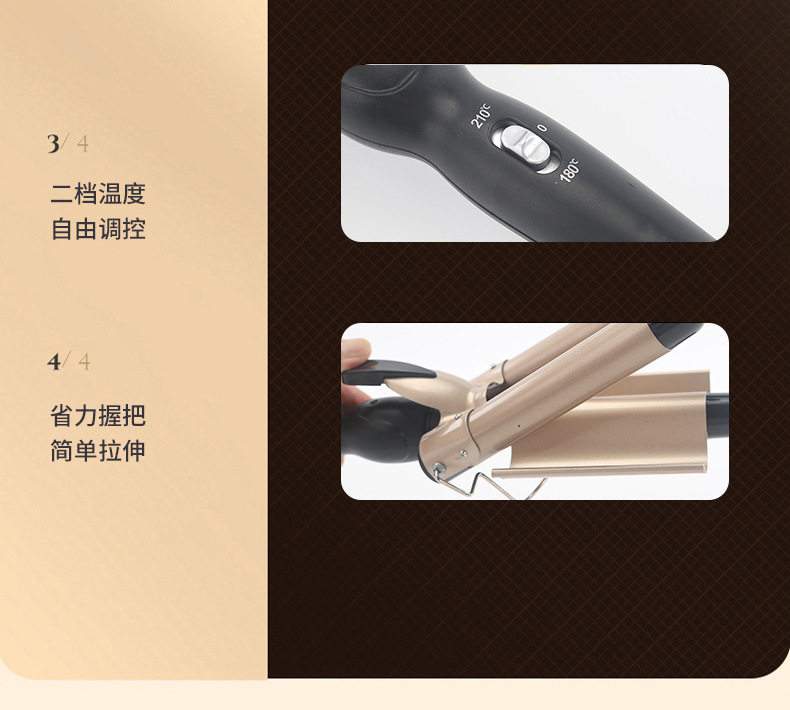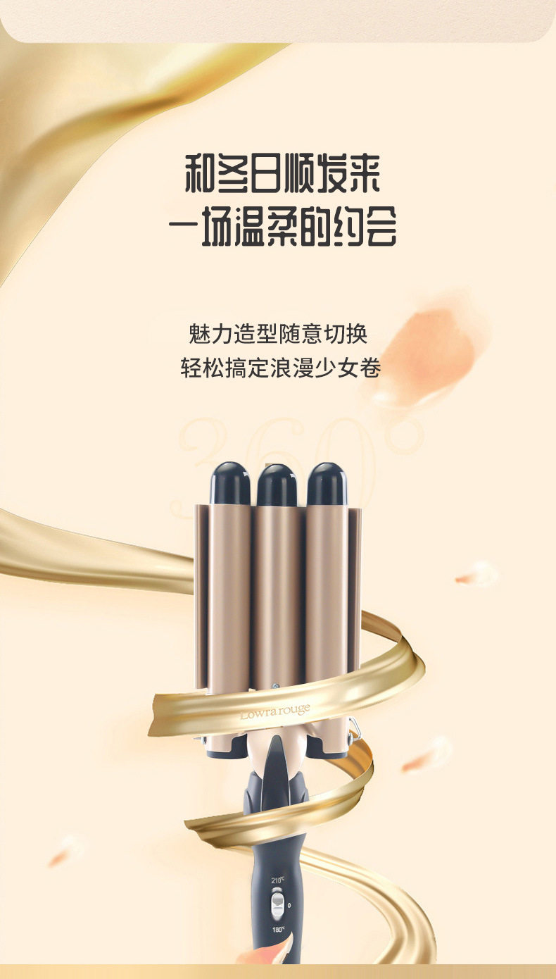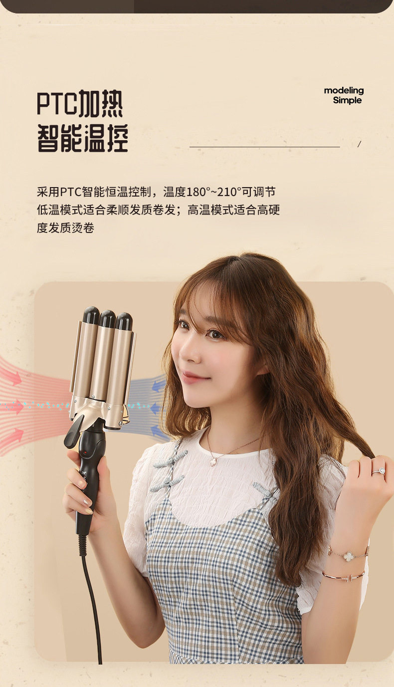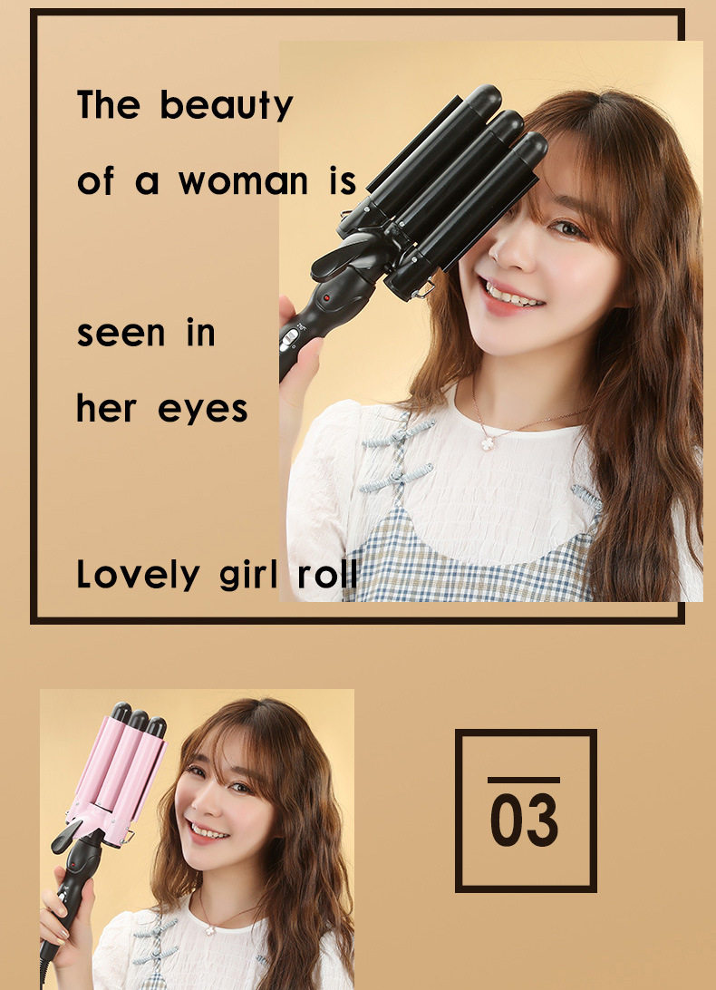 韩国 卷发棒 蛋卷棒 泡面头韩式烫发夹板25mm中卷三管卷发器 (配转换头)