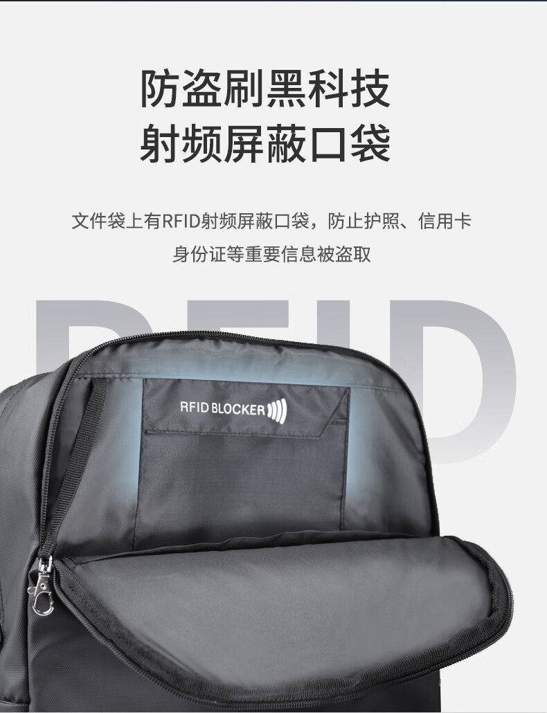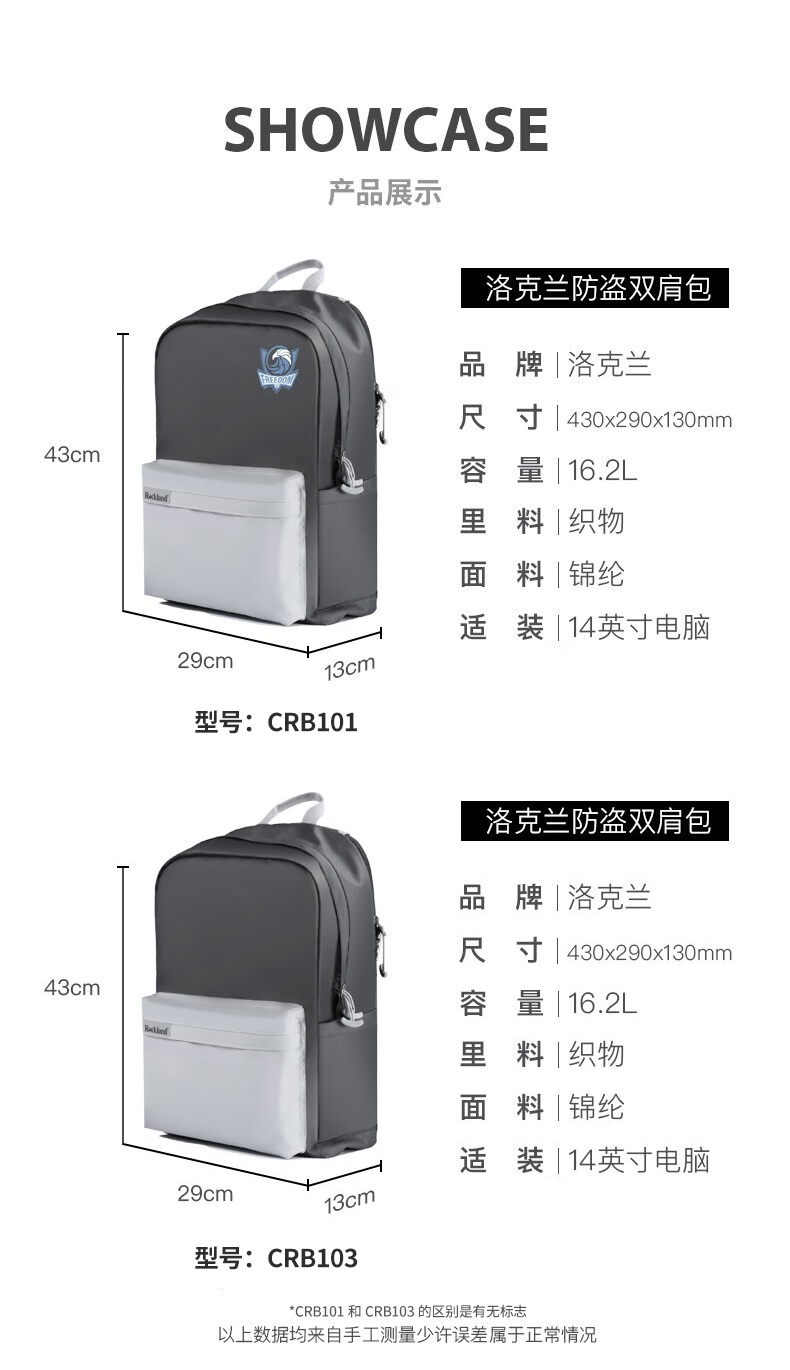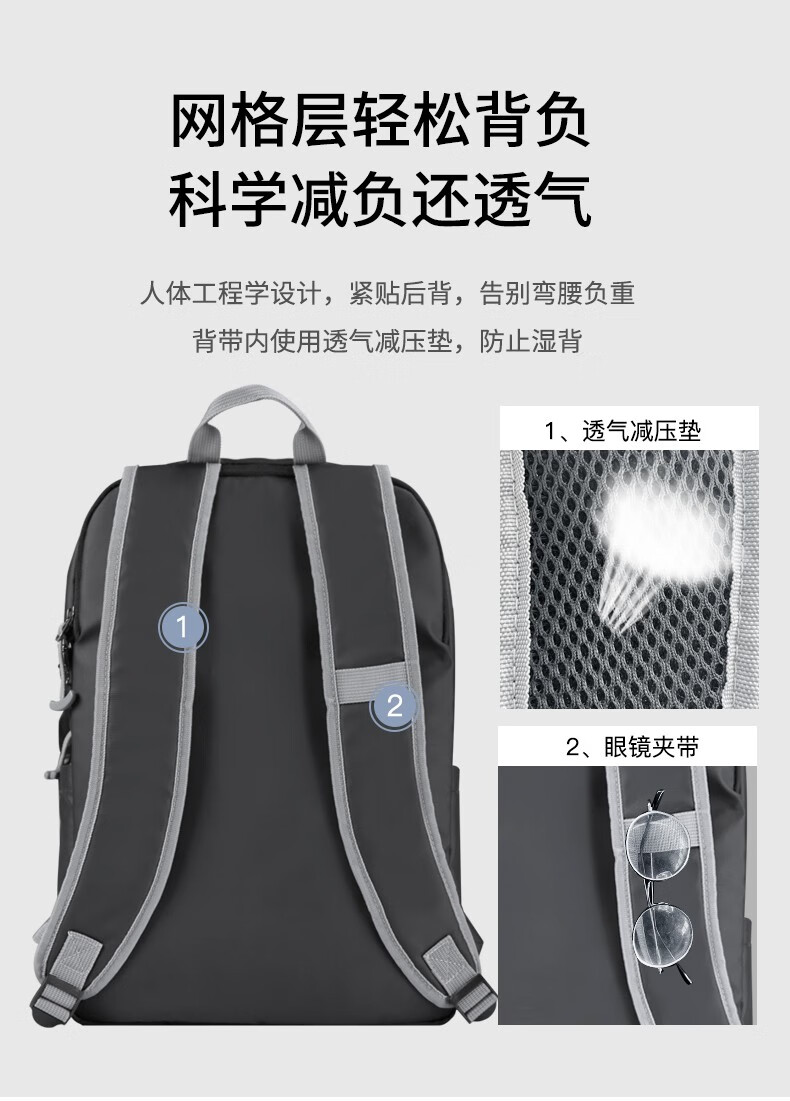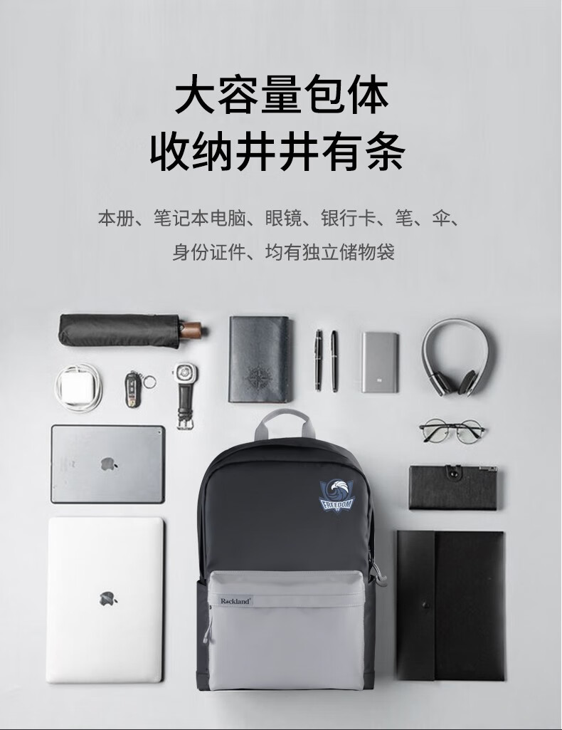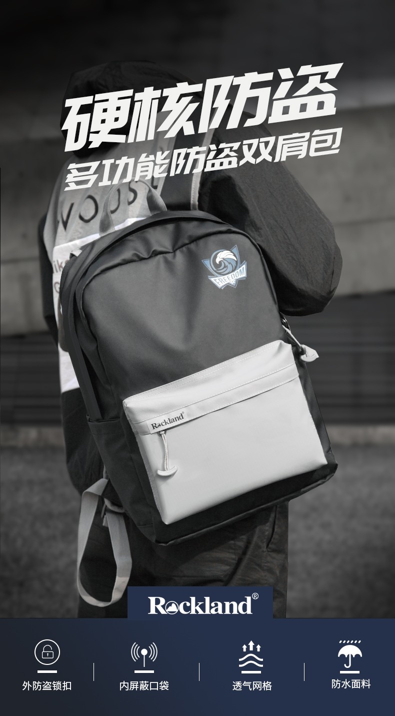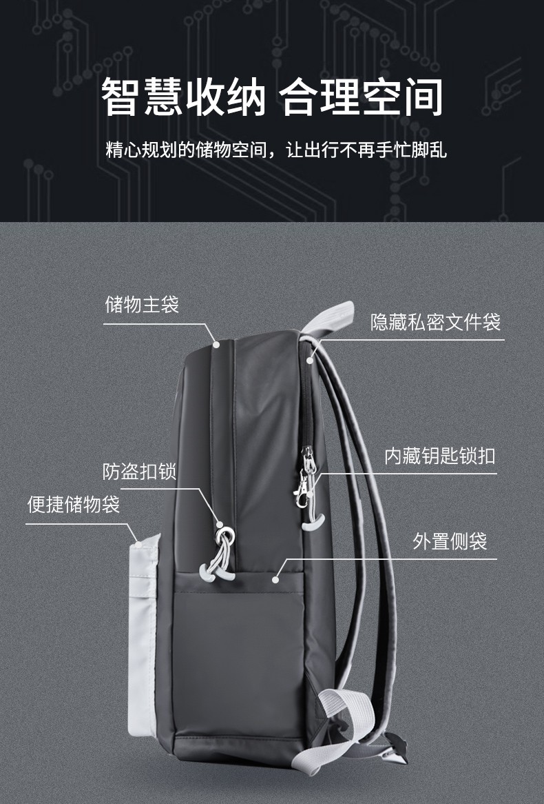 洛克兰自由系列牛津防盗双肩包 黑灰色—rxs
